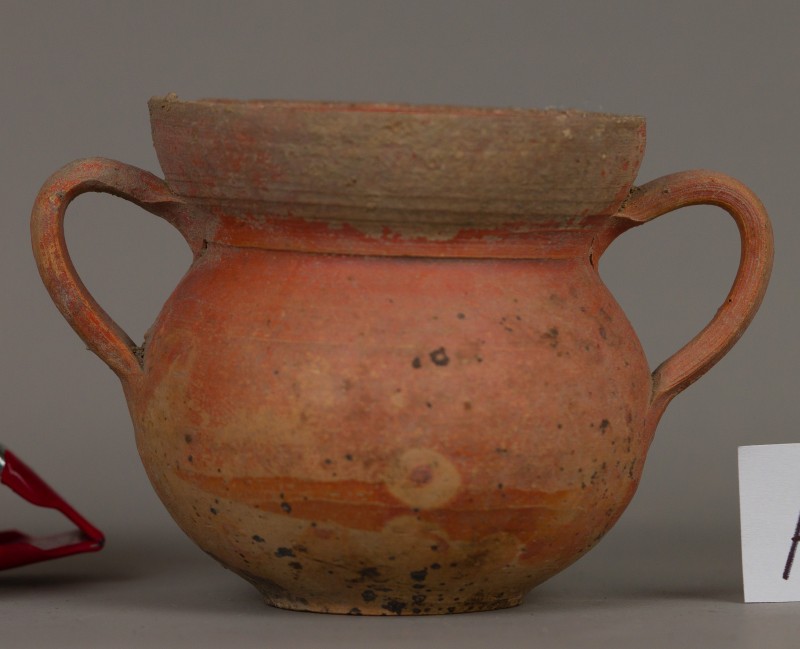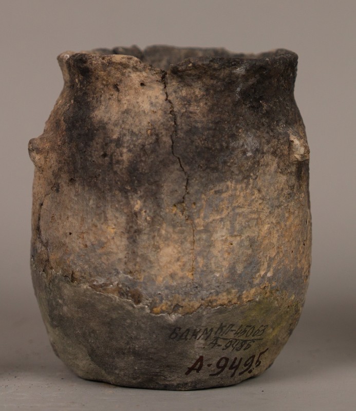 Канфар гончарний, чорнолаковий з двома ручками. Античний період.
