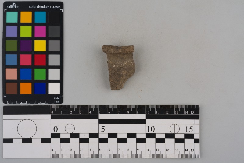 Вінчик, фрагмент, темно-сірого кольору, поверхня шороховата на дотик. Товщина - 0,9 см.