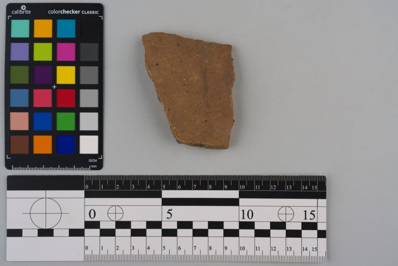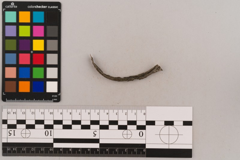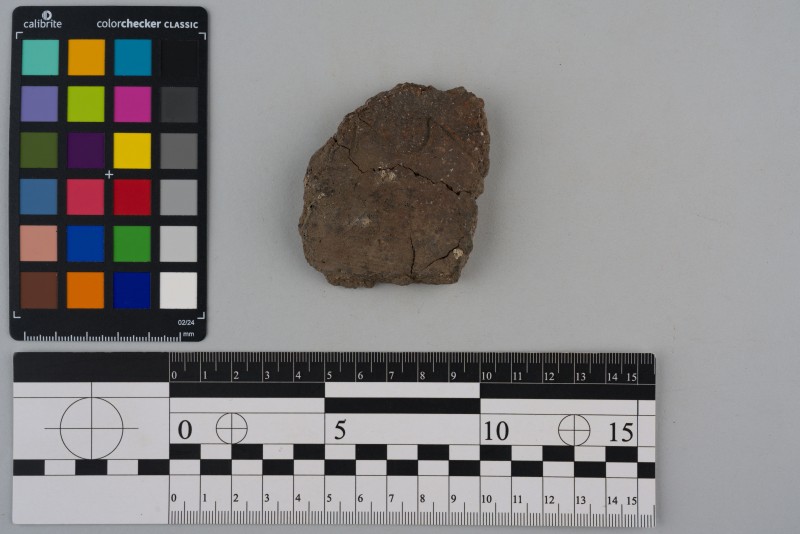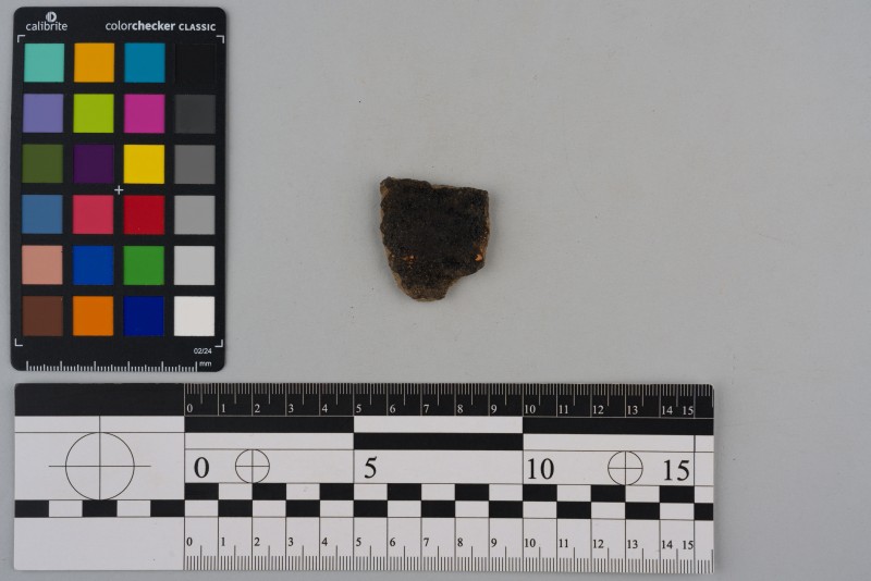 Вінчик, фрагмент, темно-сірого кольору, поверхня шороховата на дотик. Товщина - 0,9 см.