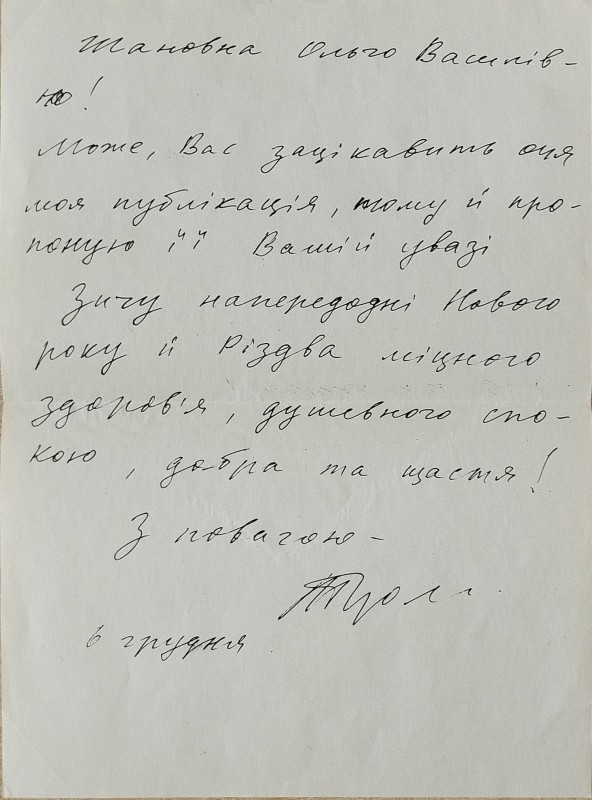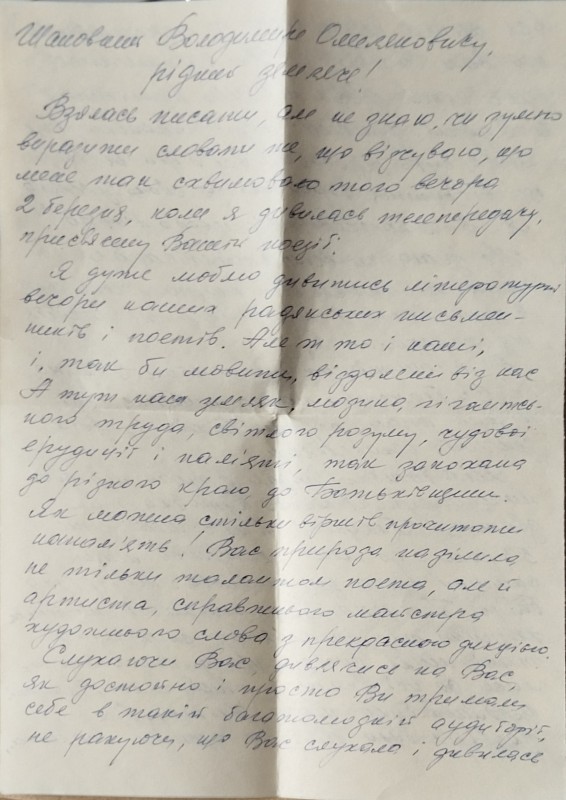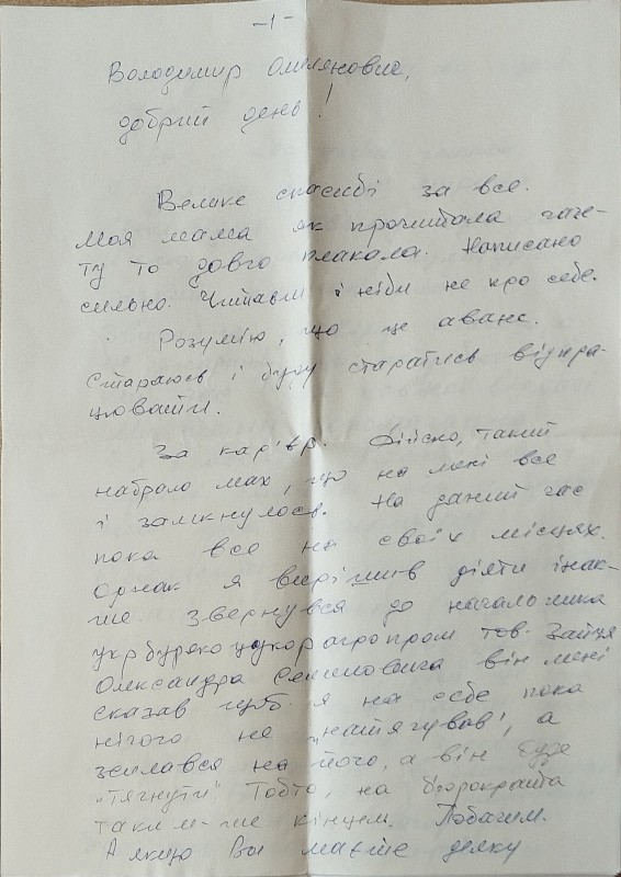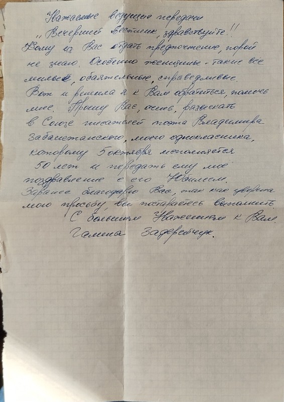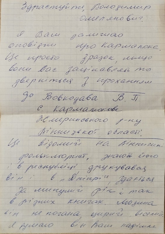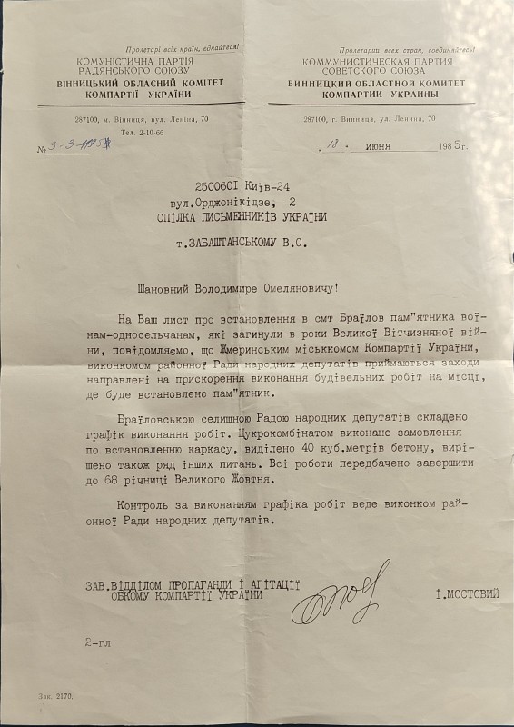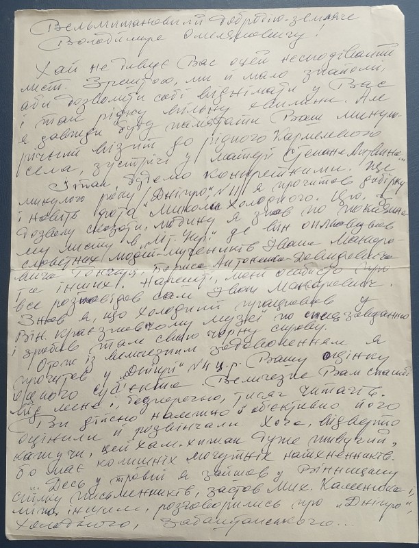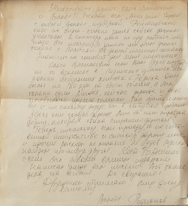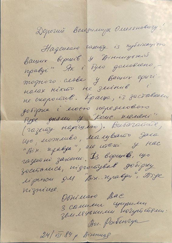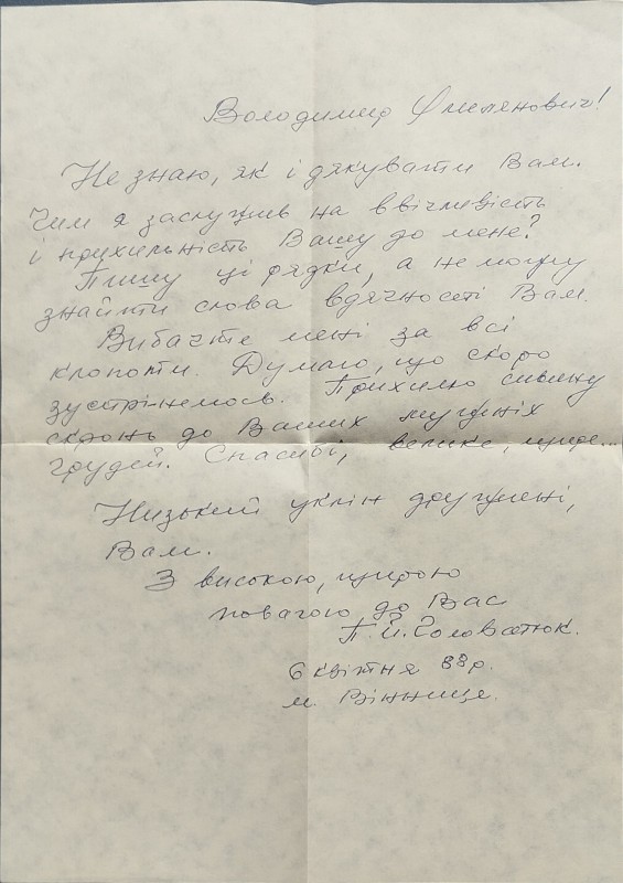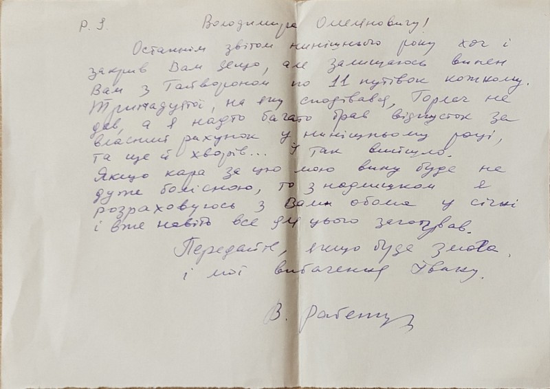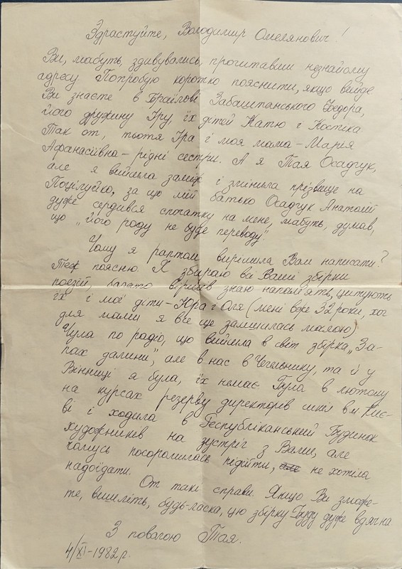 Листівка від М.П. Оганесян до В,О. Забаштанського