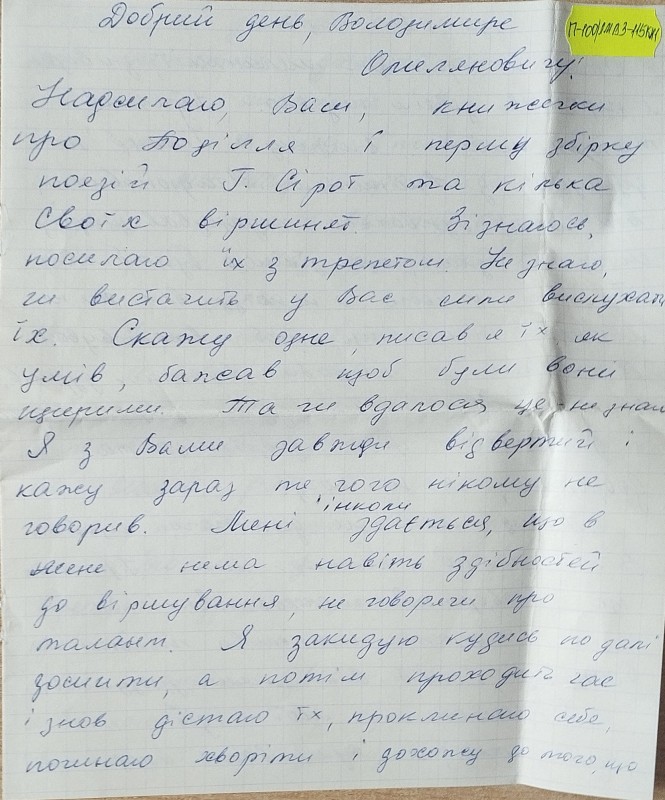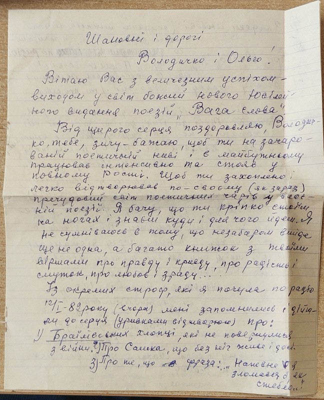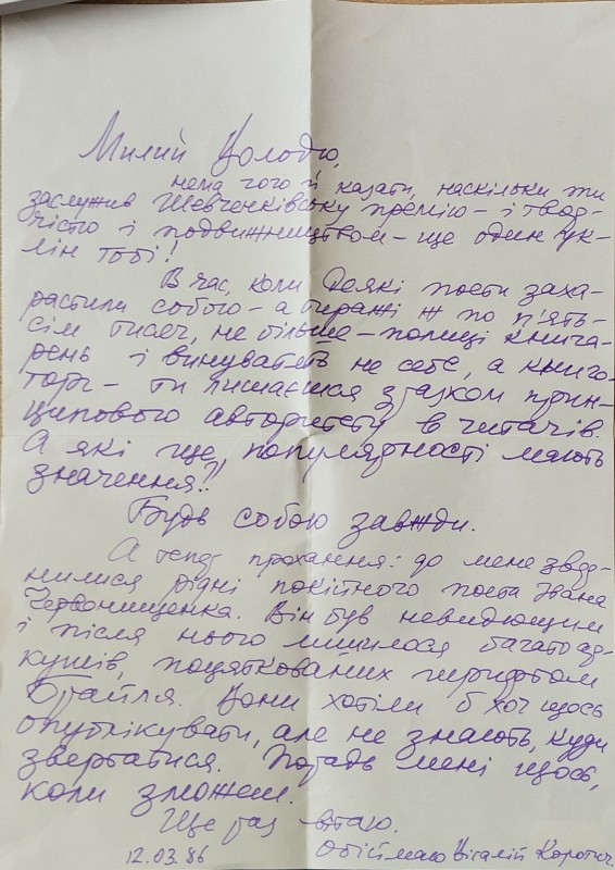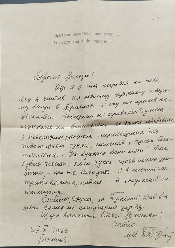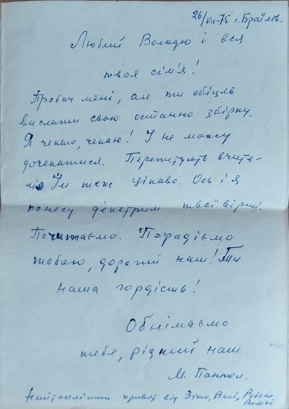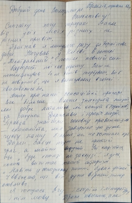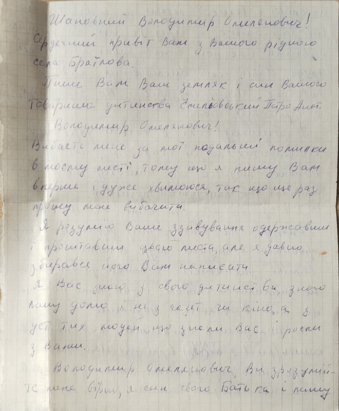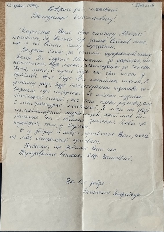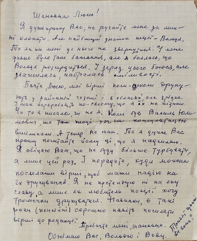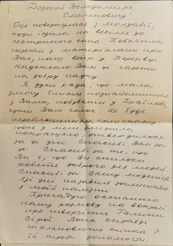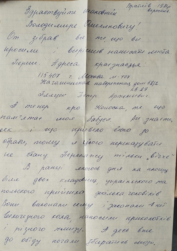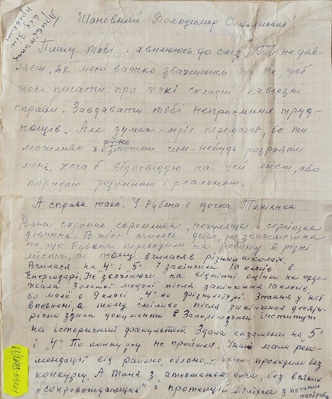 Листівка від М.П. Оганесян до В,О. Забаштанського