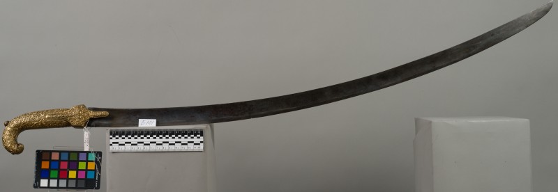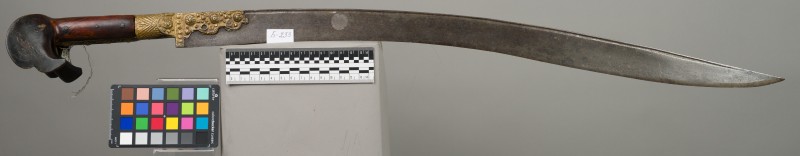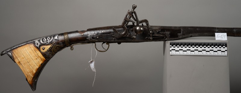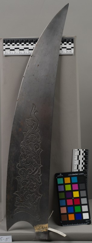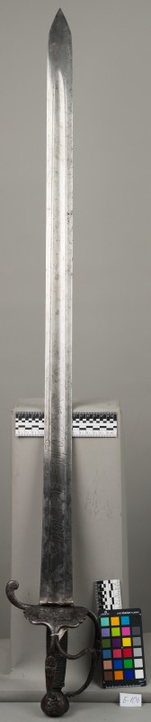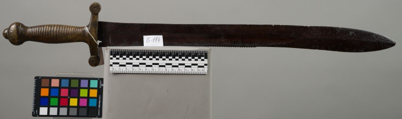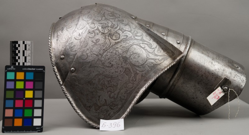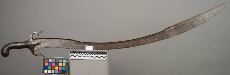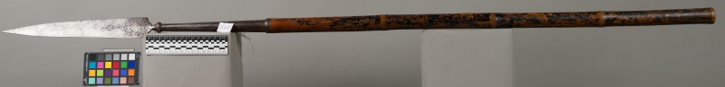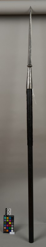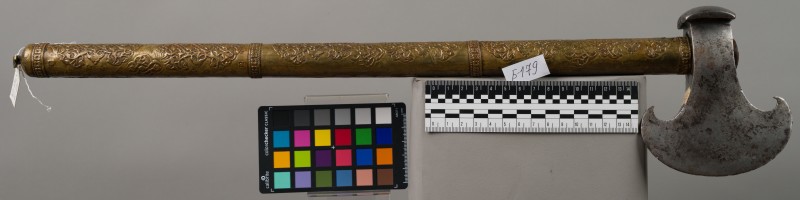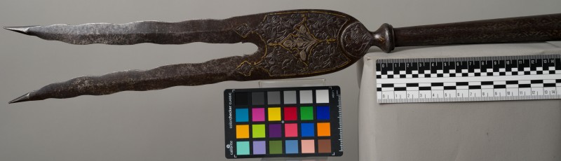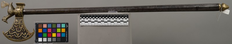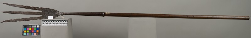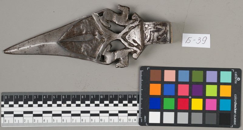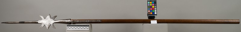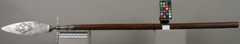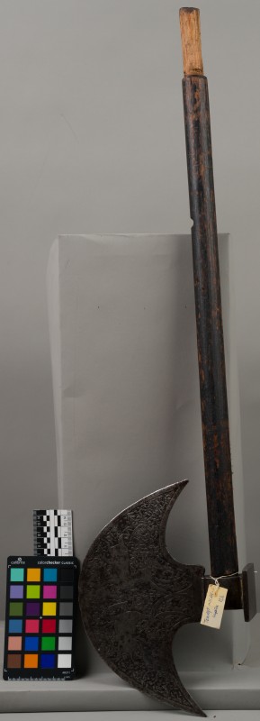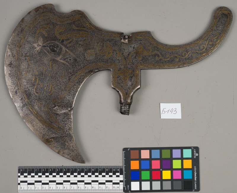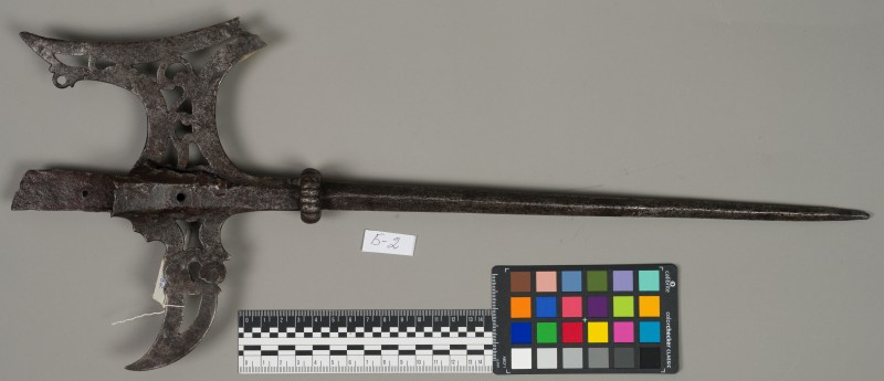 Алебарда итальянская XVIII в. без древка; копье четырехгранное, сужается к острию, топорик и его тыльная сторона имеют фигурный обрез