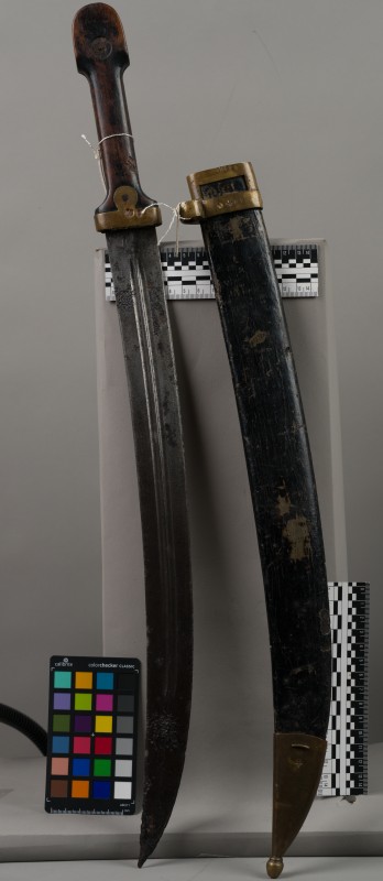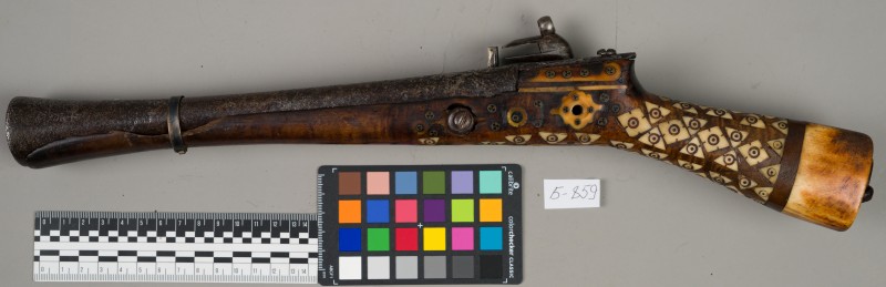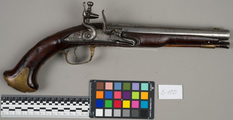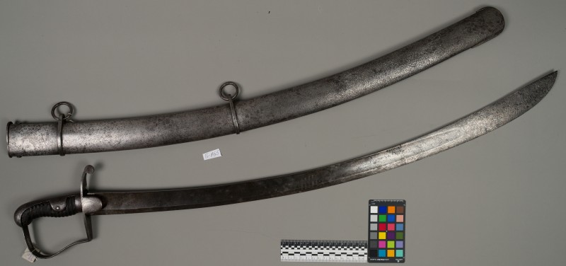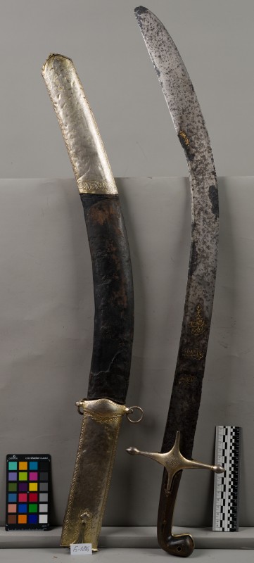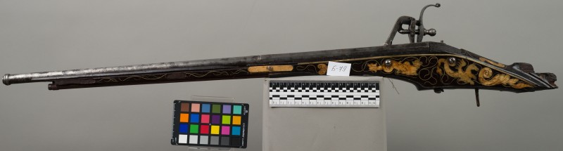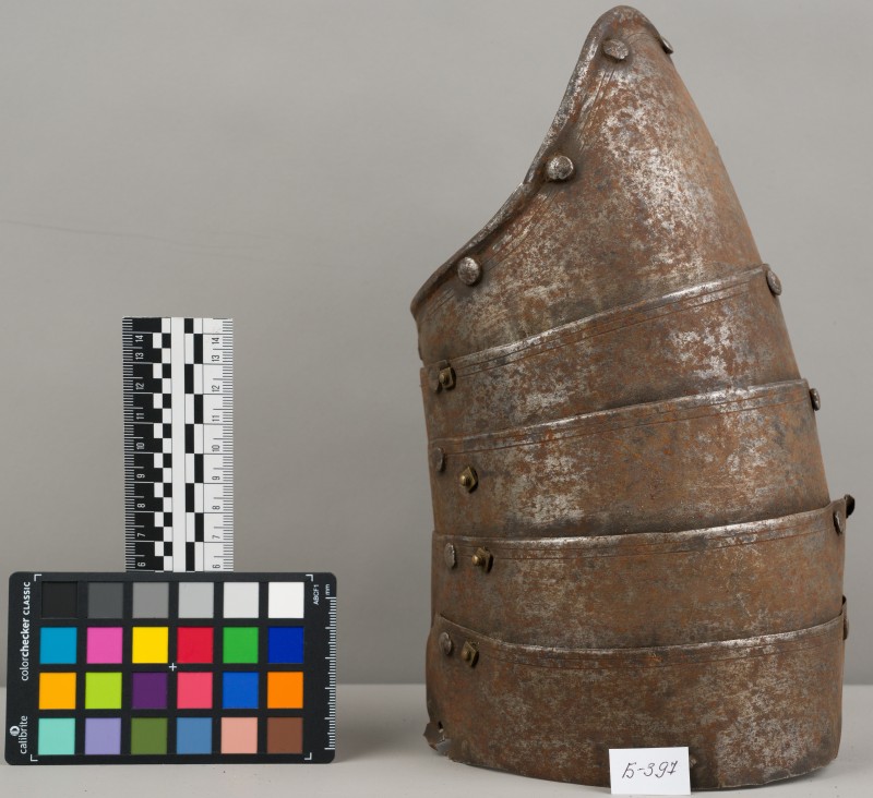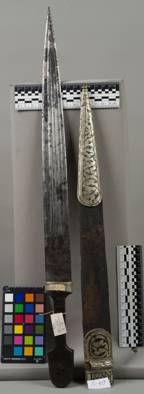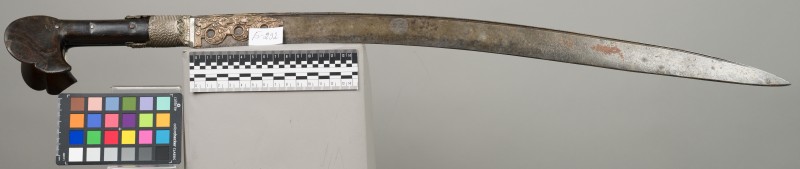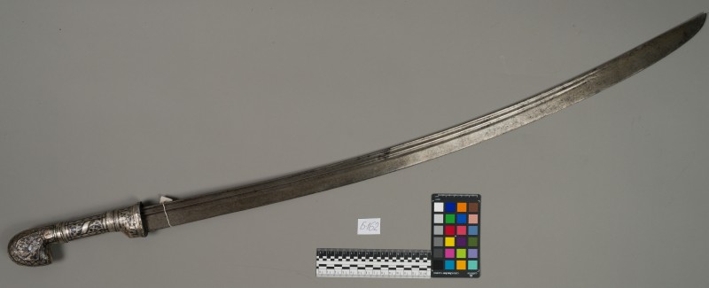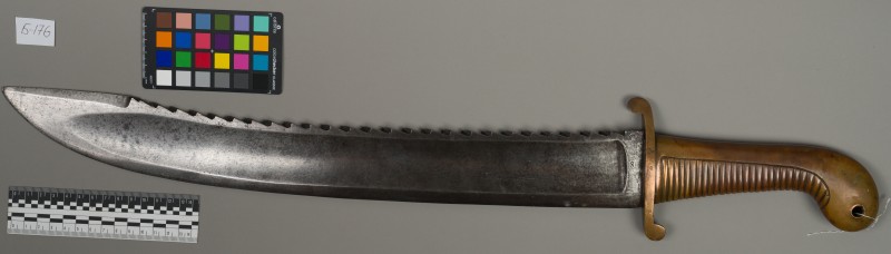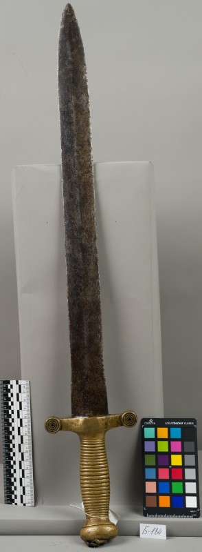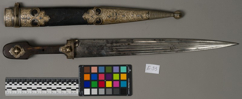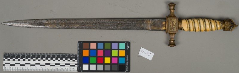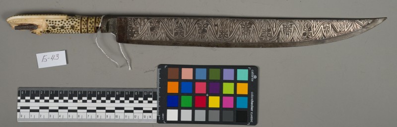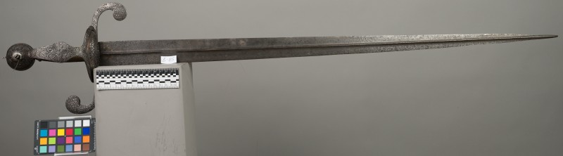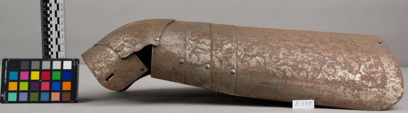 Алебарда итальянская XVIII в. без древка; копье четырехгранное, сужается к острию, топорик и его тыльная сторона имеют фигурный обрез
