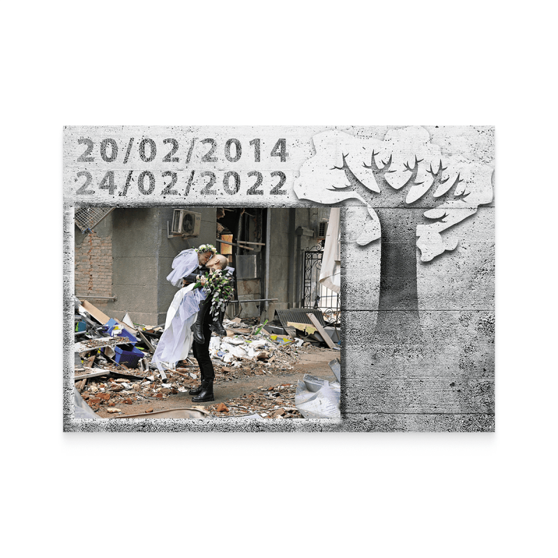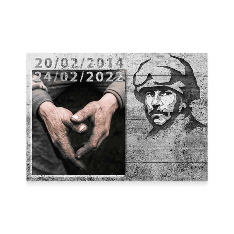 Надрукована на білому папері прямокутної форми, типографським способом українською мовою, кольорова. На лицьовому боці, на білому фоні, у центрі зображено українського захисника, а також жінок, одна з яких знаходиться у зруйнованому окупантами будинку; розбомблений Маріупольський театр з написом «діти», а також закривавлена іграшка з вокзалу Крамоторська, дитяча коляска та валізи. Всі шість ілюстрацій показують події, які пережили українці за пів року повномасштабного вторгнення Росії в Україну. У верхній частині марки напис у три рядки чорним та синім шрифтом: «ВІЛЬНІ. НЕЗЛАМНІ. НЕПЕРЕМОЖНІ.»