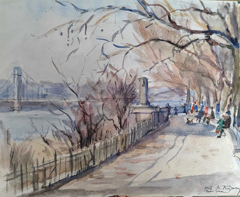 Зліва розлоге дерево, справа сходи, що піднімаються вгору. Подалі дерева.