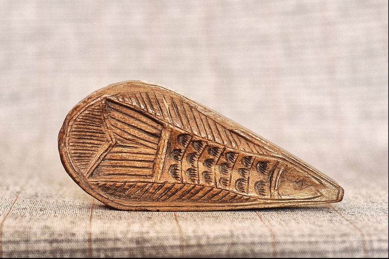 Дощечка прямокутної форми, краї згладжені. Одна із сторін дощечки декорована стилізованим зображенням птаха - орла в обрамленні з стебел. По краю дощечки заглиблена повздовжня смуга. Різьблення - поглиблене.