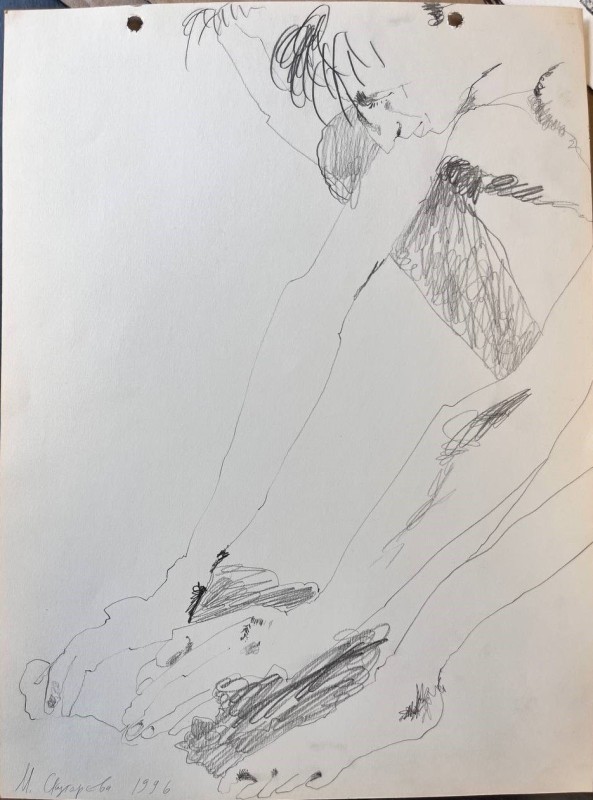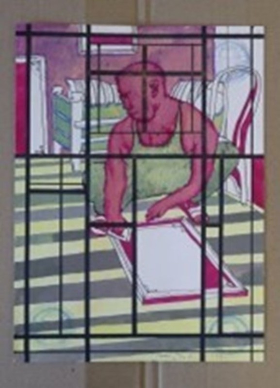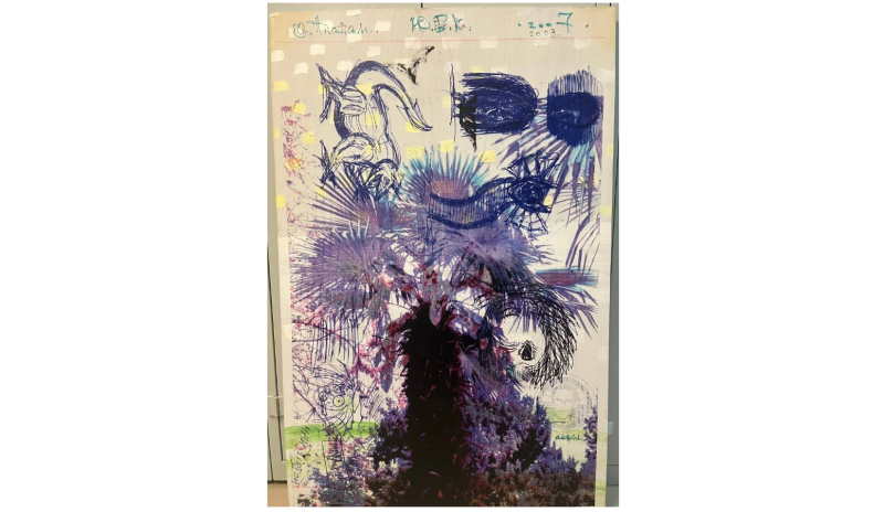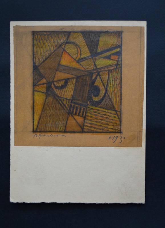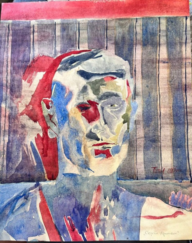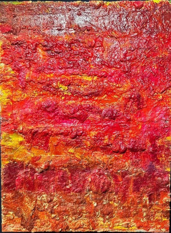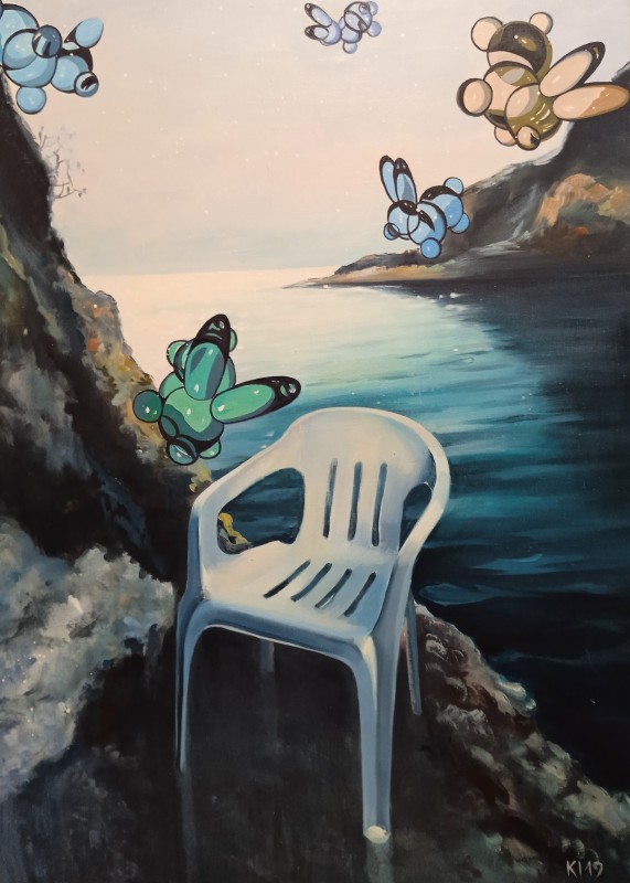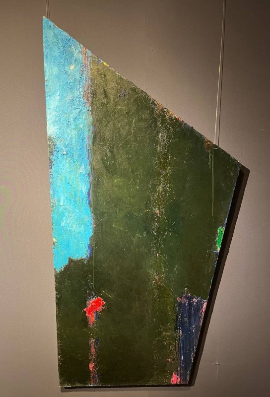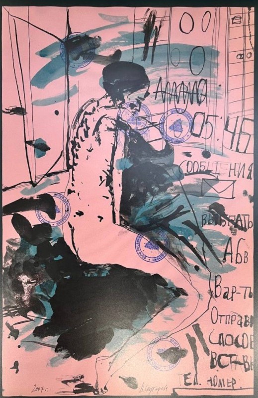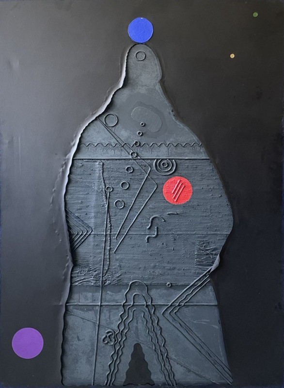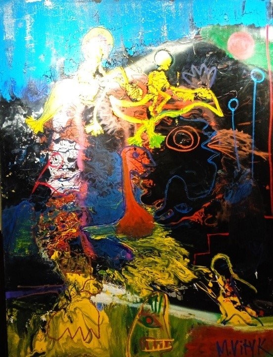 Абстрактна картина із геометричною, умовно-фігуративною композицією. Змістовим центром є фігура, розташована по діагоналі полотна (дещо праворуч від центру), яку художник назвав «істотою». Її верхня частина кольору індиго має хвилеподібний обрис, прикрашений колом із червоною окантовкою. Нижня частина – пласка, блідо-рожевого кольору, означена рівними смугами червоного та чорного кольорів. «Істоту» перетинає широка зелено-червона смужка з правого боку полотна. У нижньому правому куті - зелене коло з чорним центром. У лівій частині намальований зелено-червоний трикутник (верхівкою донизу).