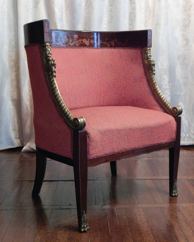 Фібула «воїнського типу» (за О. В. Петраускасом Гр. І, Тип 3) із трапецієподібною ніжкою. Корпус брусковий, фасетований. Колір зелений із жовтими та червоними проявами. Вигин спинки асиметричний та колінчастий. Ніжка гладка, лопата. Має масивний функціональний та декоративний пружинний апарат застібки на усю вісь. Остання на кінцях має кільця. Приймач голки закритий та підв'язний із масивним корпусом. Має сліди консервації
