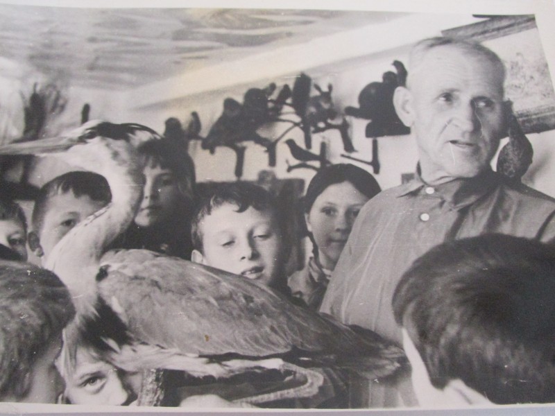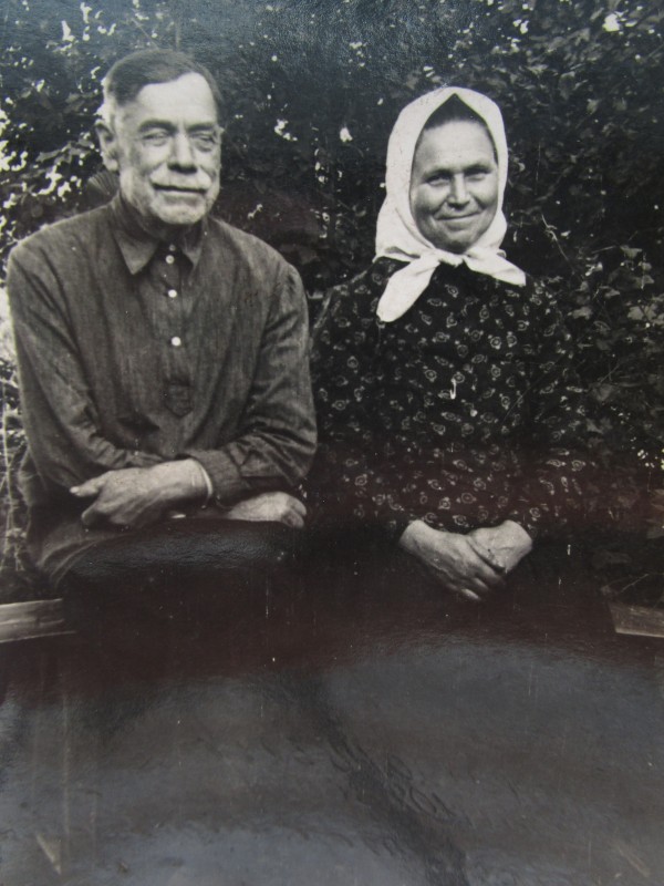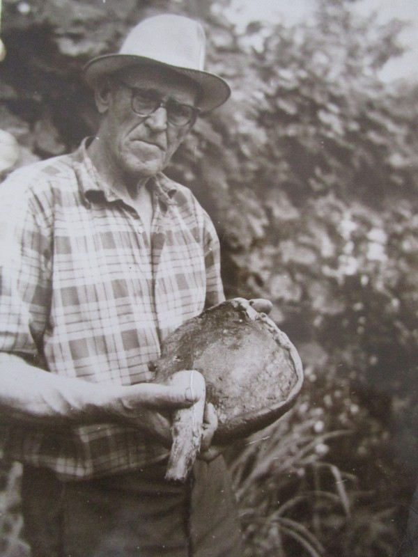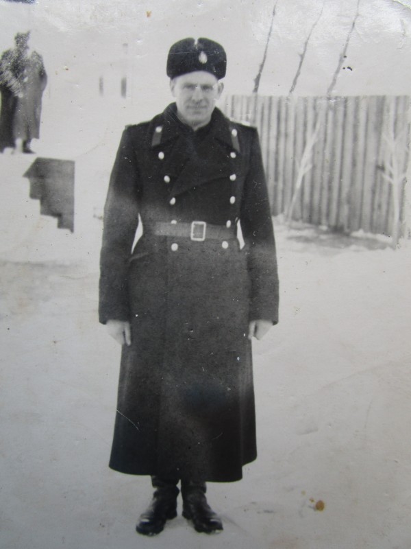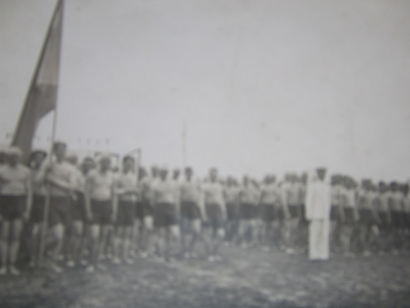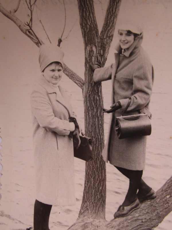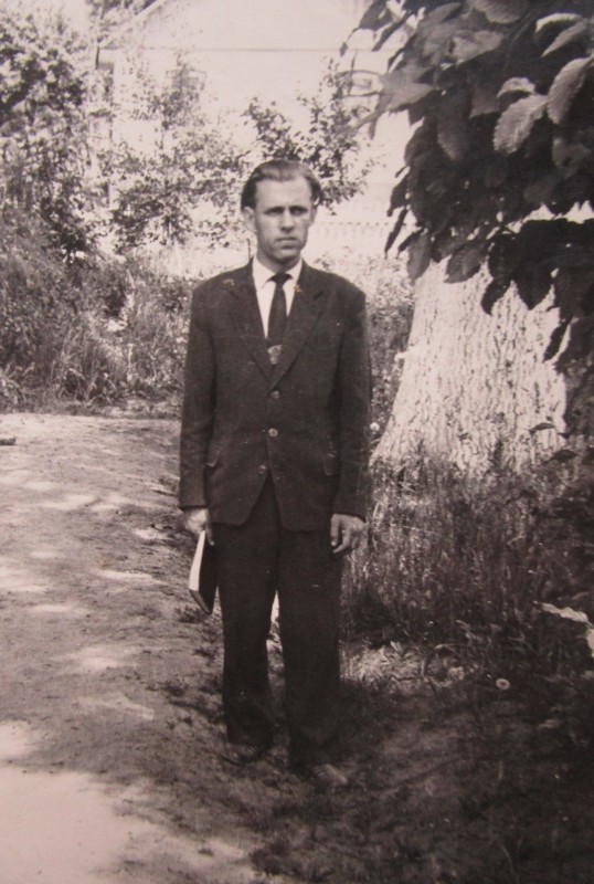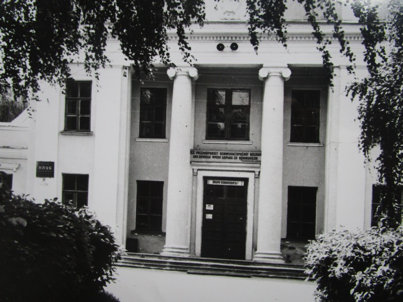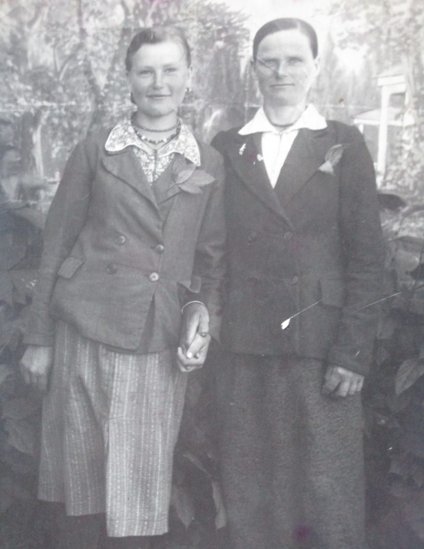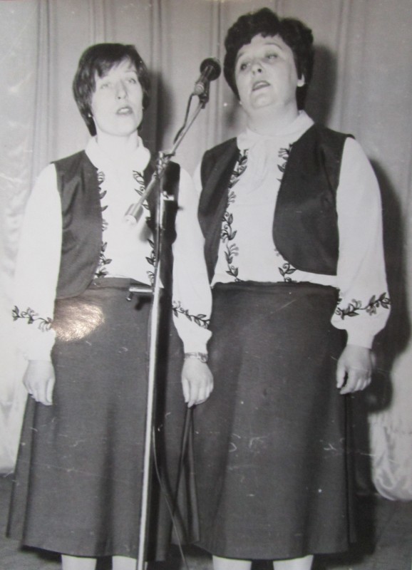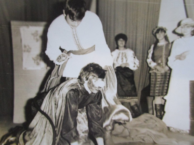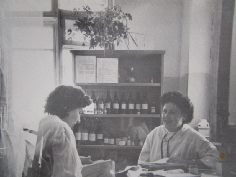 Біля церкви. На фото група людей: церковний хор і прихожани Свято-Преображенської церкви після хресного ходу навколо церкви. По центру протоієрей Чаленко Іван Григорович та протодиякон Прокопенко Іван Федорович одягнені у церковний одяг. На задньому плані дерев'яна церква. м. Бахмач, 50-ті рр. ХХ ст.