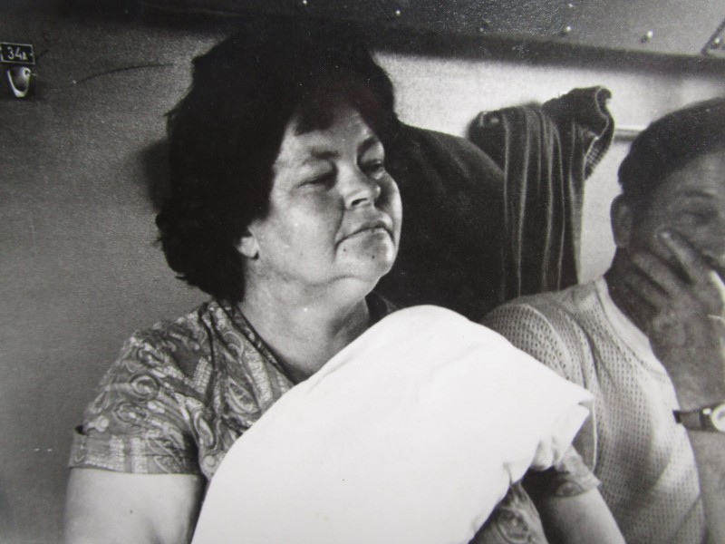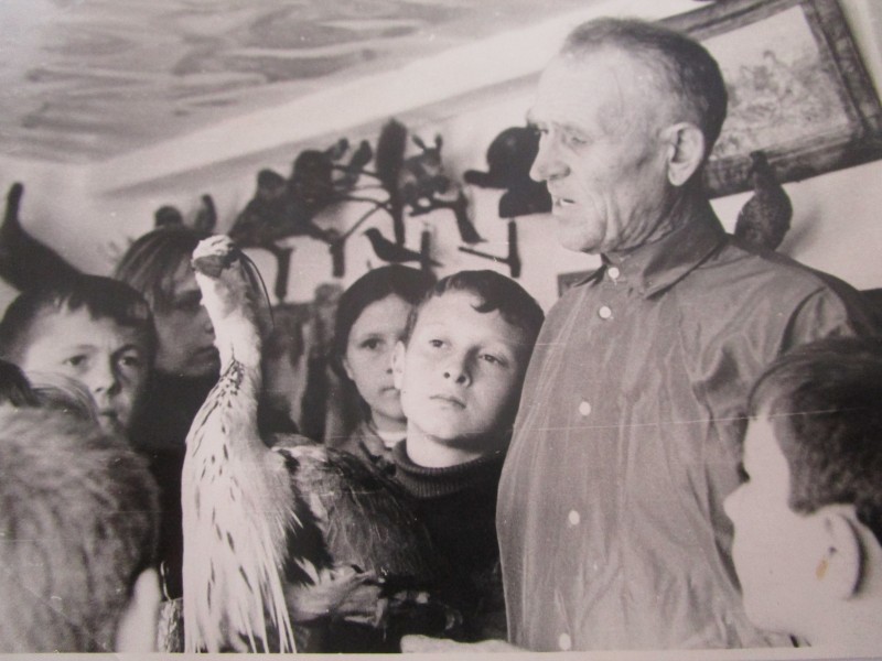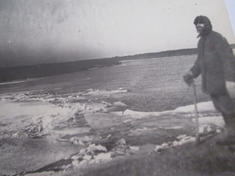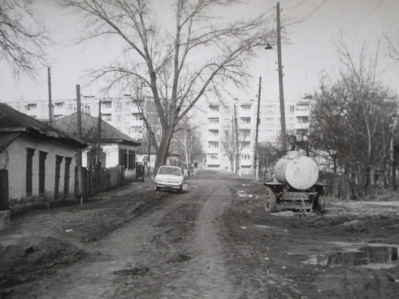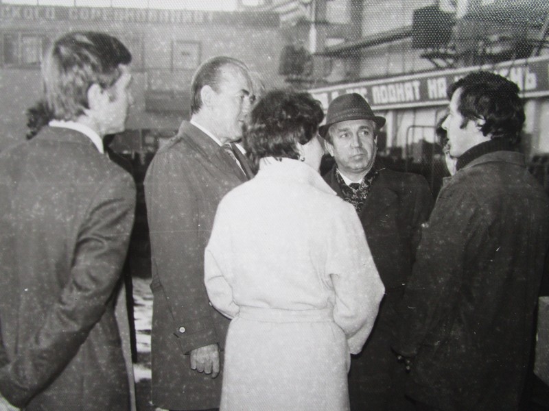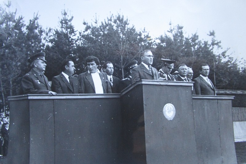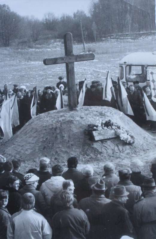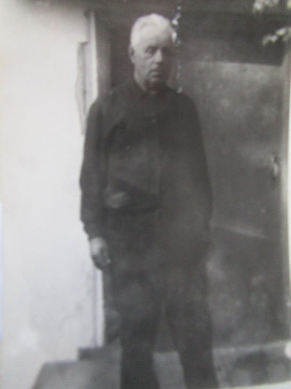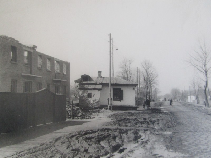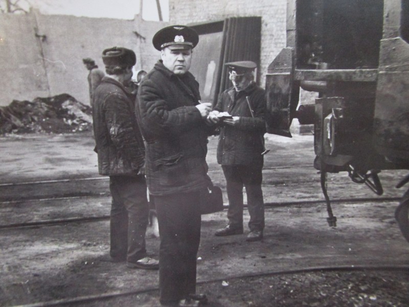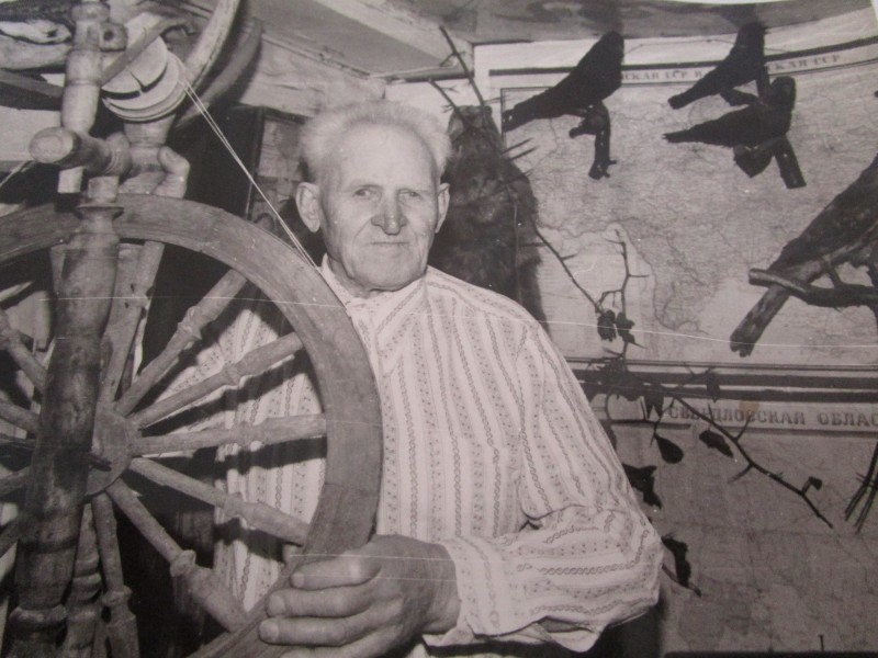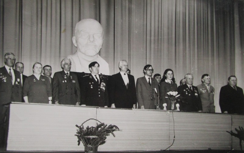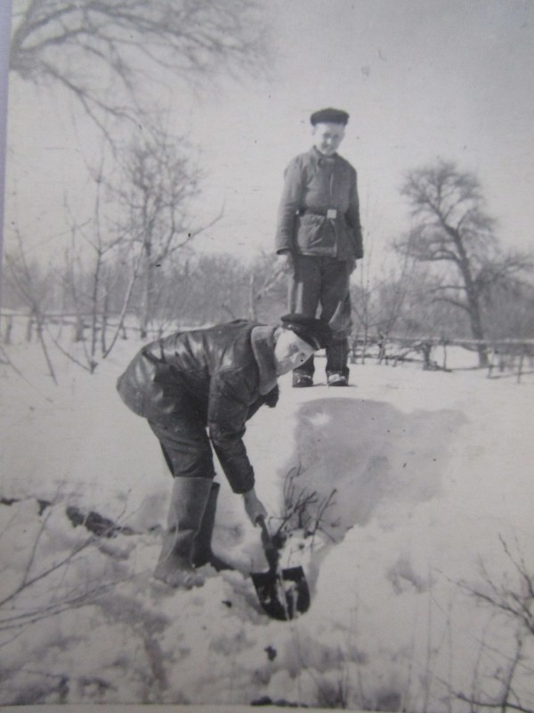 Біля церкви. На фото група людей: церковний хор і прихожани Свято-Преображенської церкви після хресного ходу навколо церкви. По центру протоієрей Чаленко Іван Григорович та протодиякон Прокопенко Іван Федорович одягнені у церковний одяг. На задньому плані дерев'яна церква. м. Бахмач, 50-ті рр. ХХ ст.