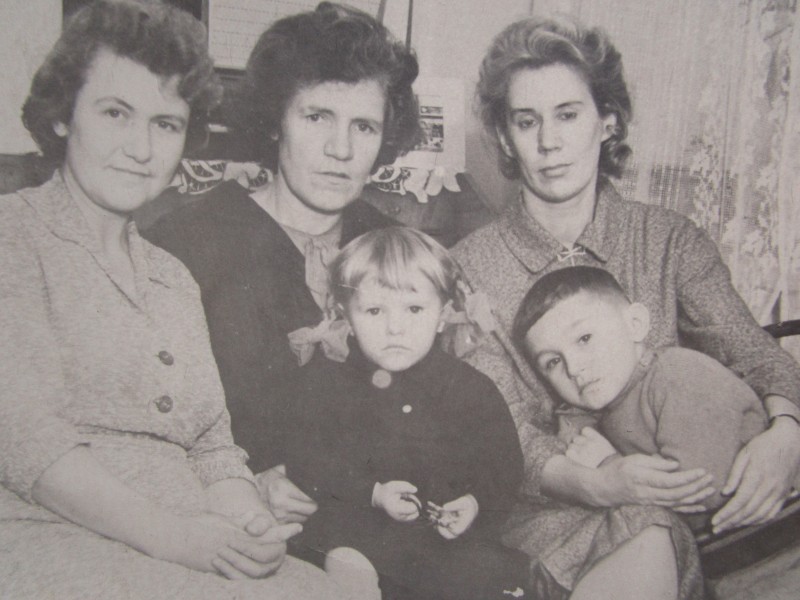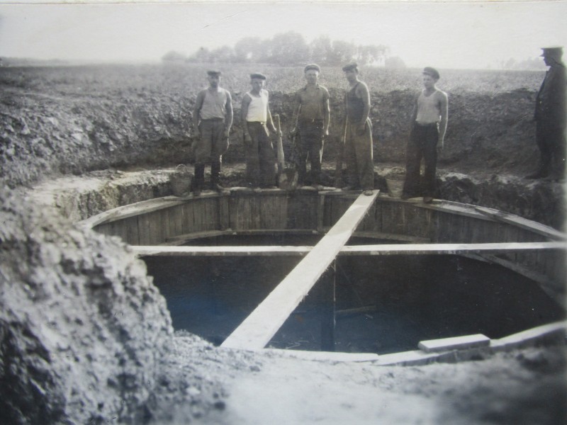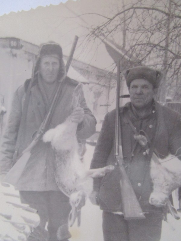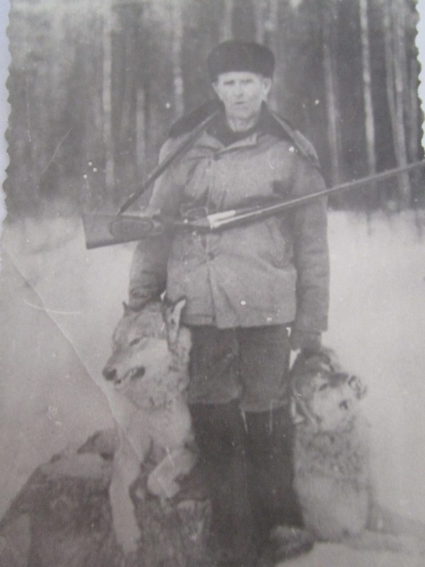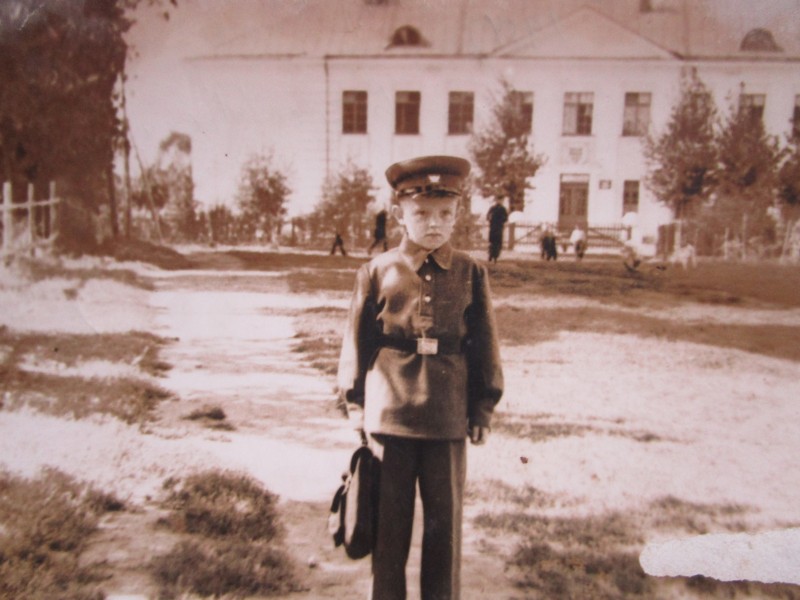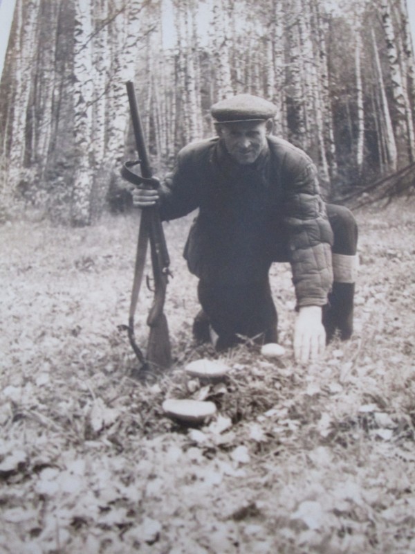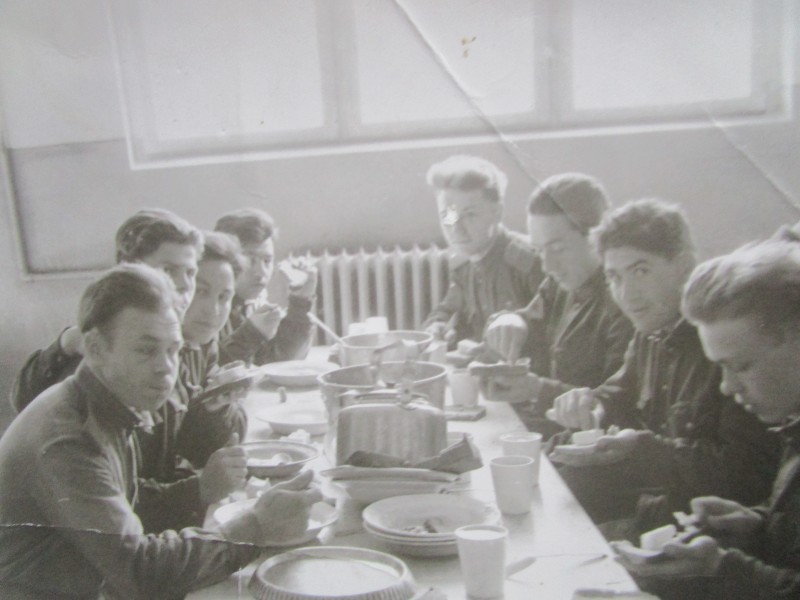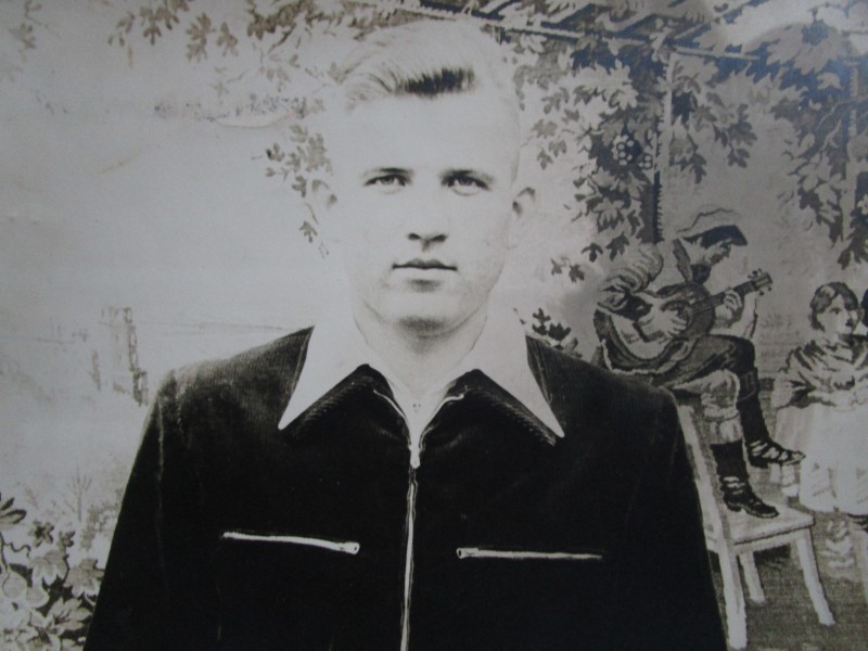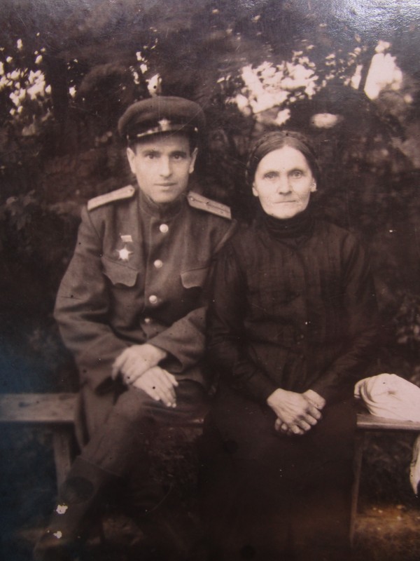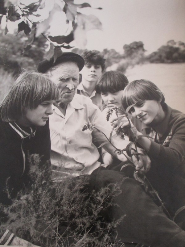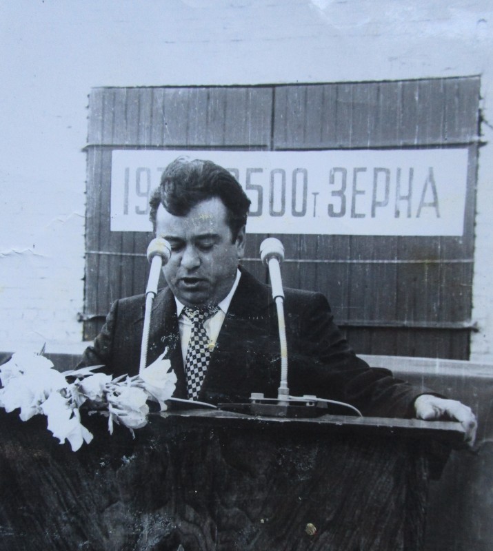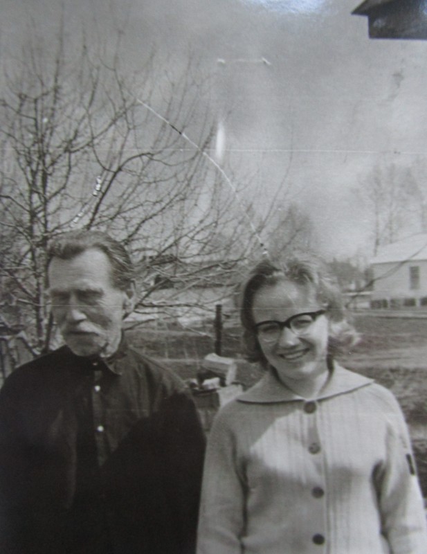 Біля церкви. На фото група людей: церковний хор і прихожани Свято-Преображенської церкви після хресного ходу навколо церкви. По центру протоієрей Чаленко Іван Григорович та протодиякон Прокопенко Іван Федорович одягнені у церковний одяг. На задньому плані дерев'яна церква. м. Бахмач, 50-ті рр. ХХ ст.