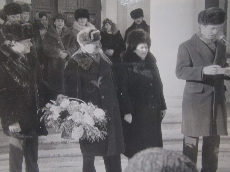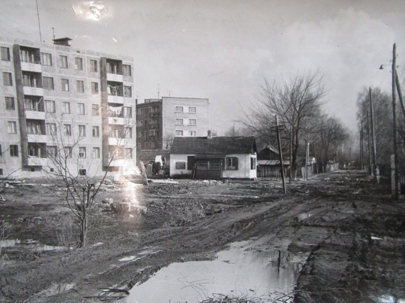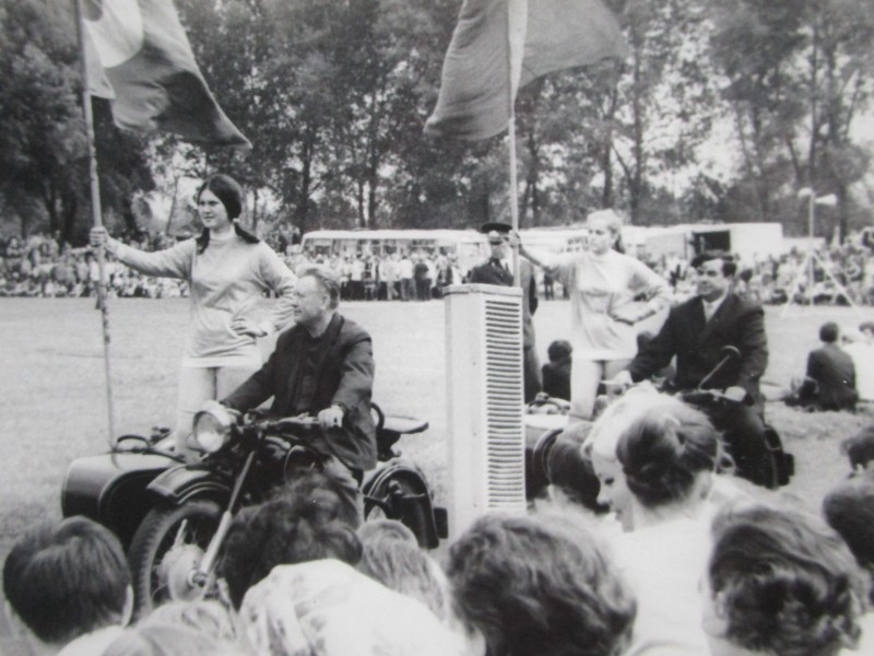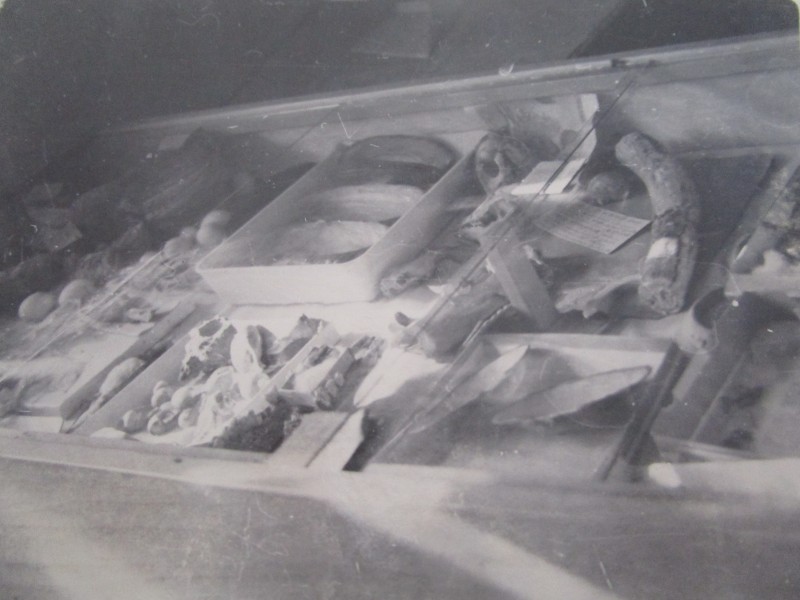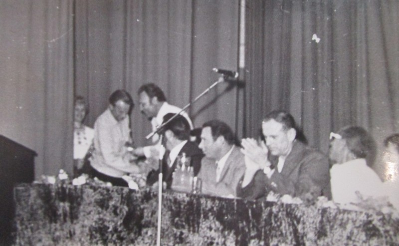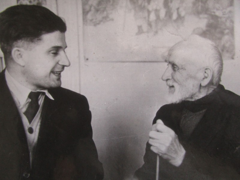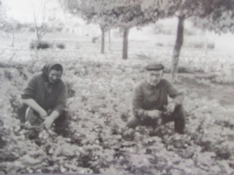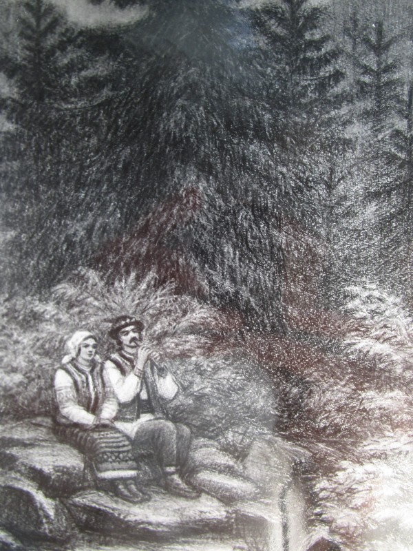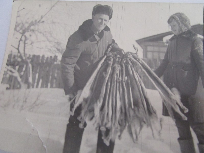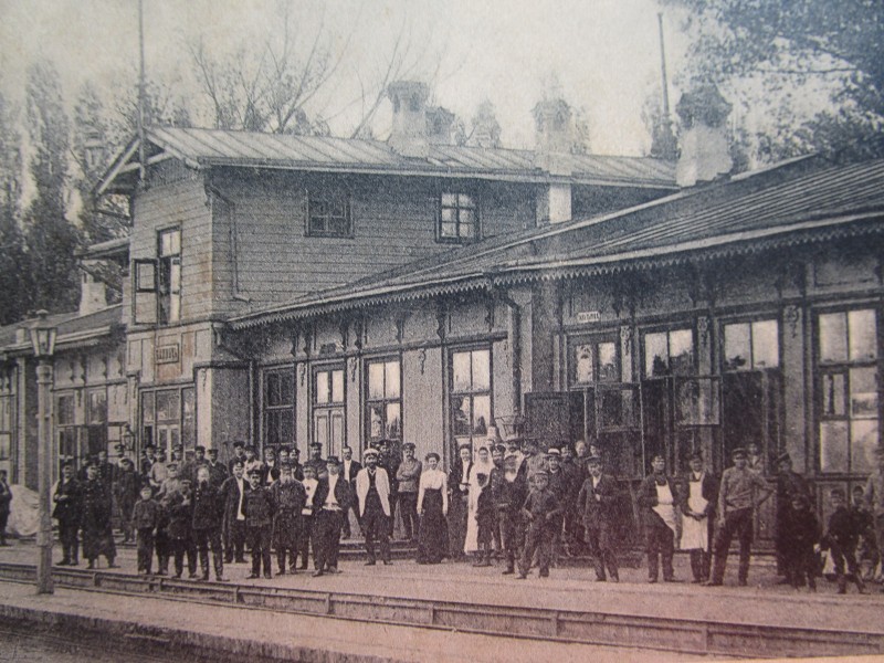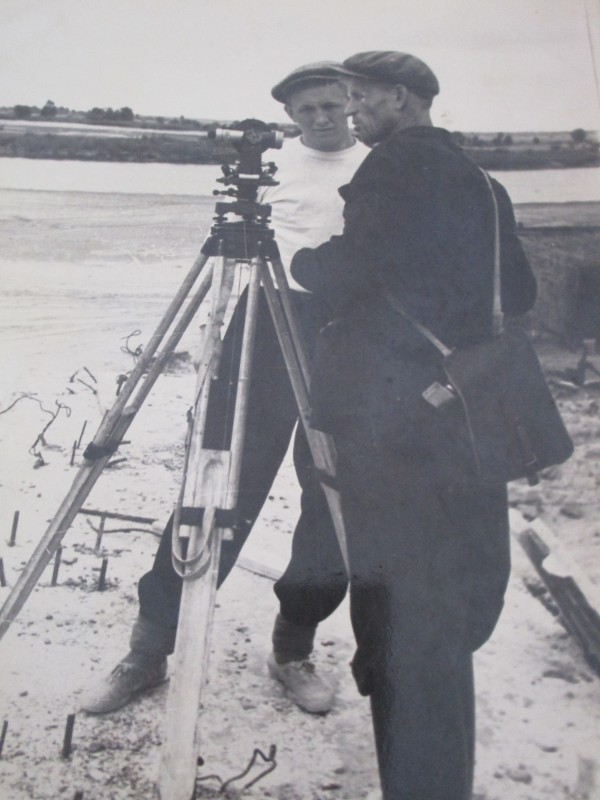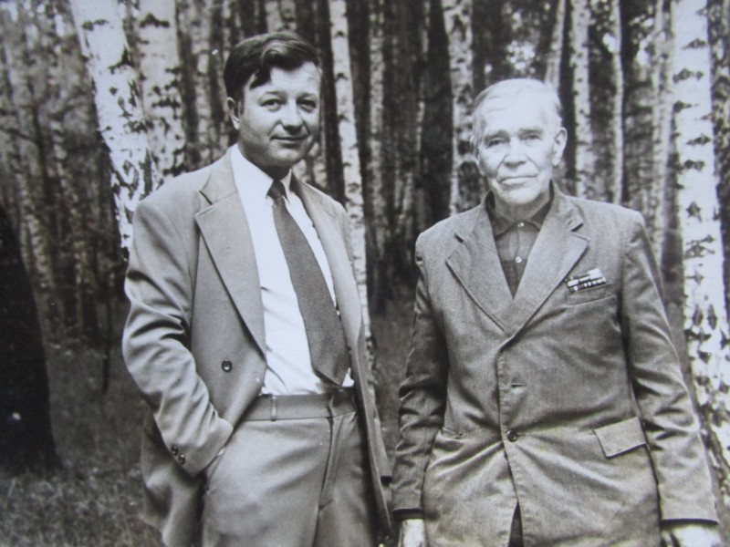 Біля церкви. На фото група людей: церковний хор і прихожани Свято-Преображенської церкви після хресного ходу навколо церкви. По центру протоієрей Чаленко Іван Григорович та протодиякон Прокопенко Іван Федорович одягнені у церковний одяг. На задньому плані дерев'яна церква. м. Бахмач, 50-ті рр. ХХ ст.