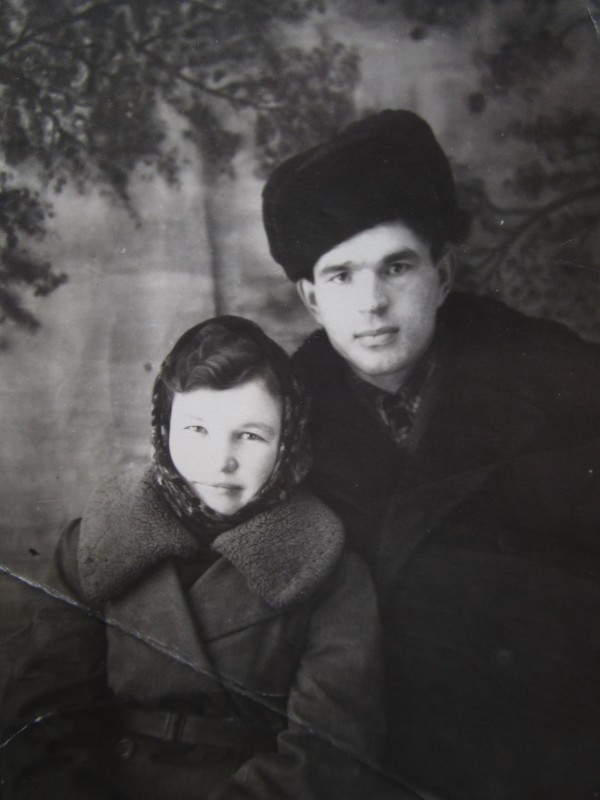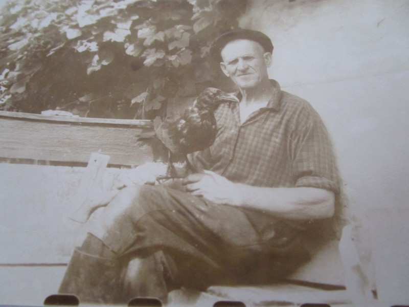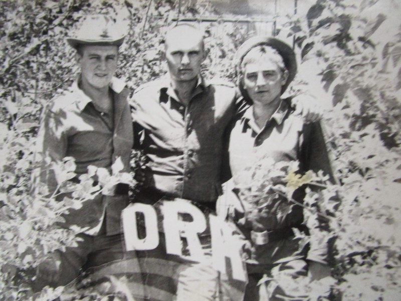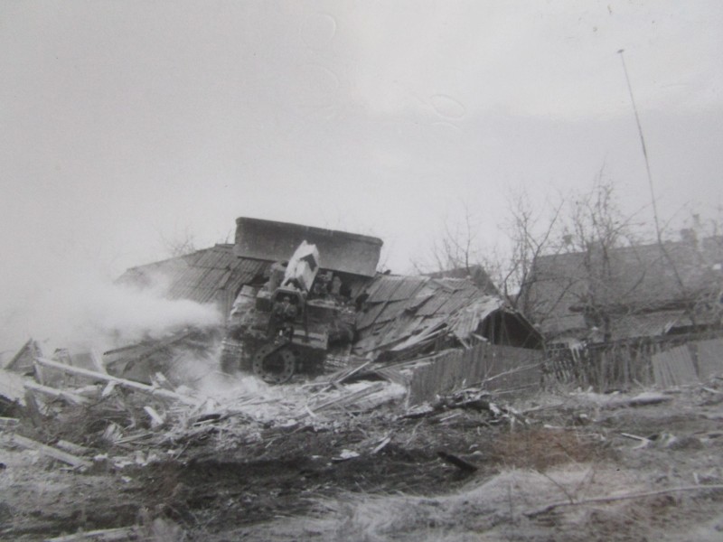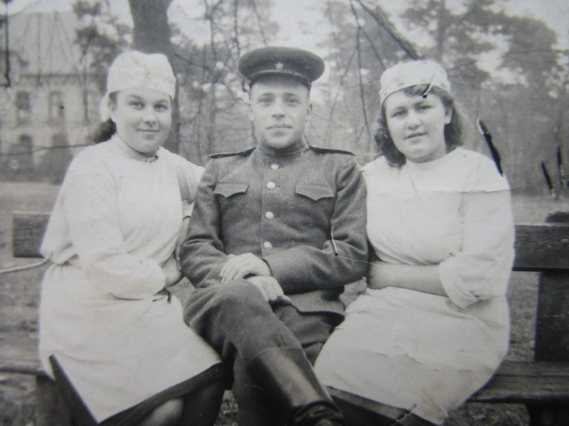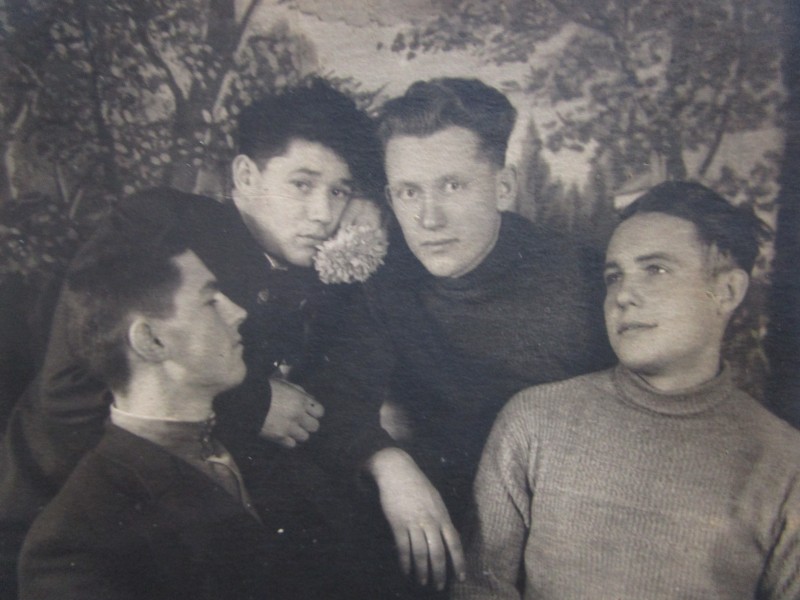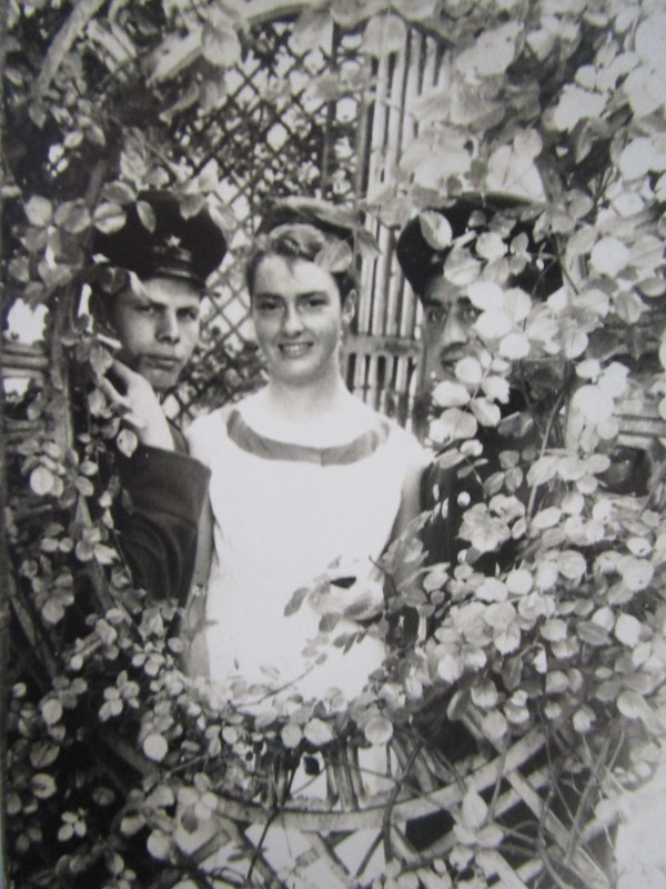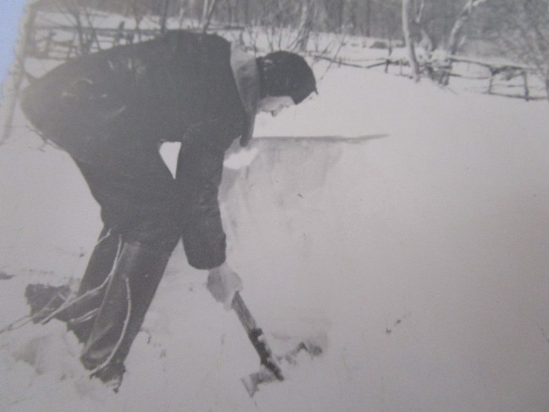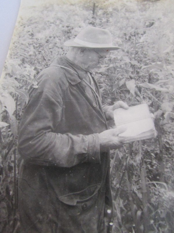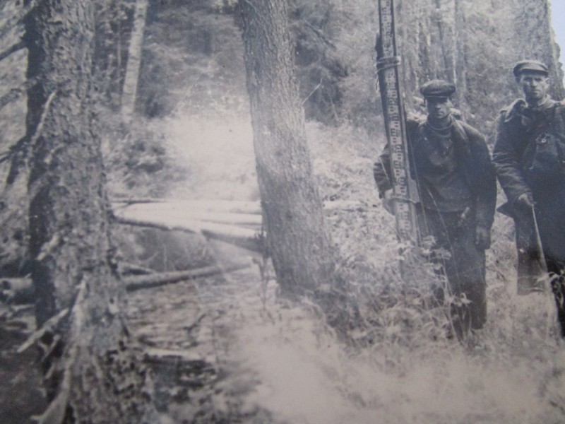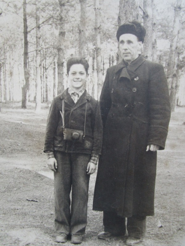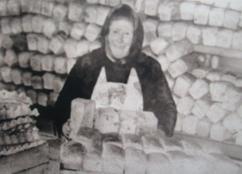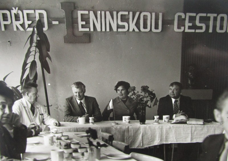 Біля церкви. На фото група людей: церковний хор і прихожани Свято-Преображенської церкви після хресного ходу навколо церкви. По центру протоієрей Чаленко Іван Григорович та протодиякон Прокопенко Іван Федорович одягнені у церковний одяг. На задньому плані дерев'яна церква. м. Бахмач, 50-ті рр. ХХ ст.