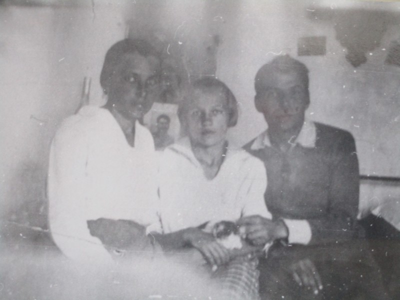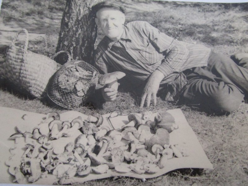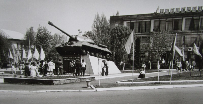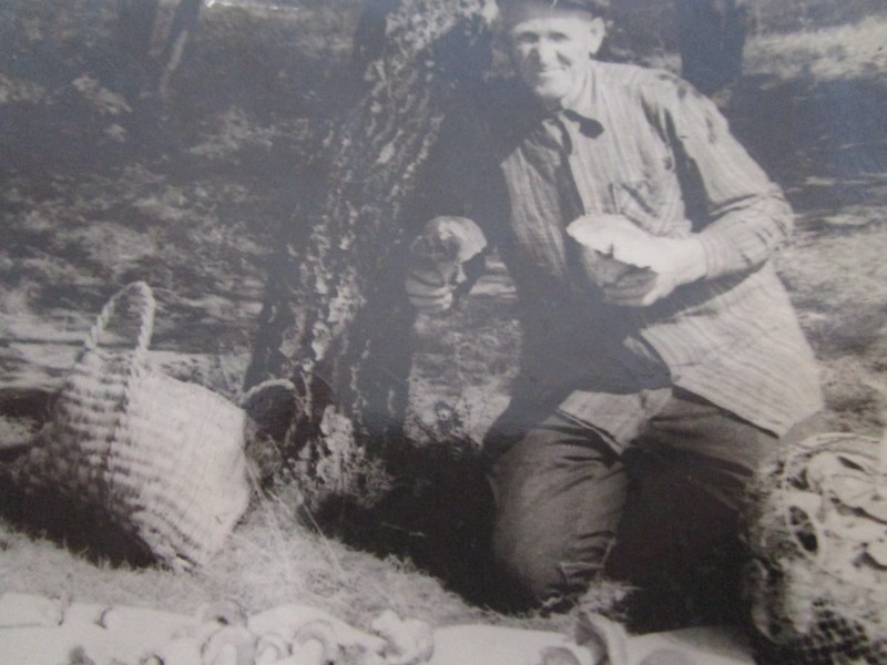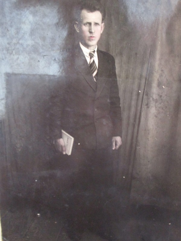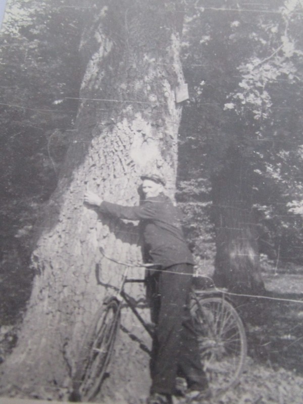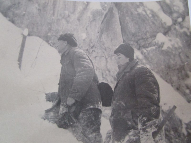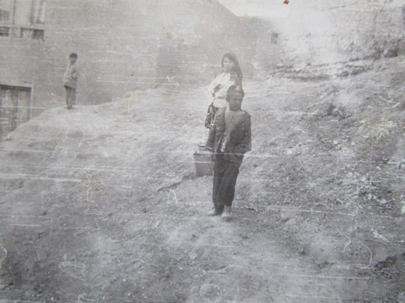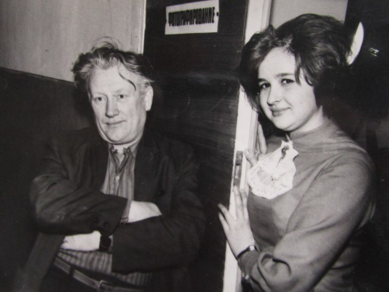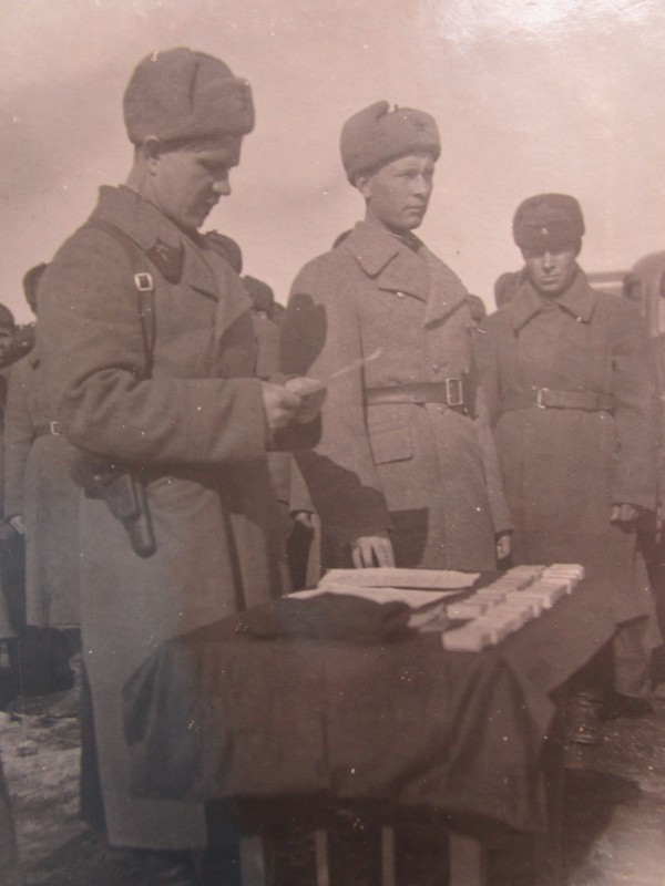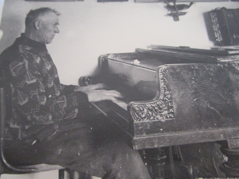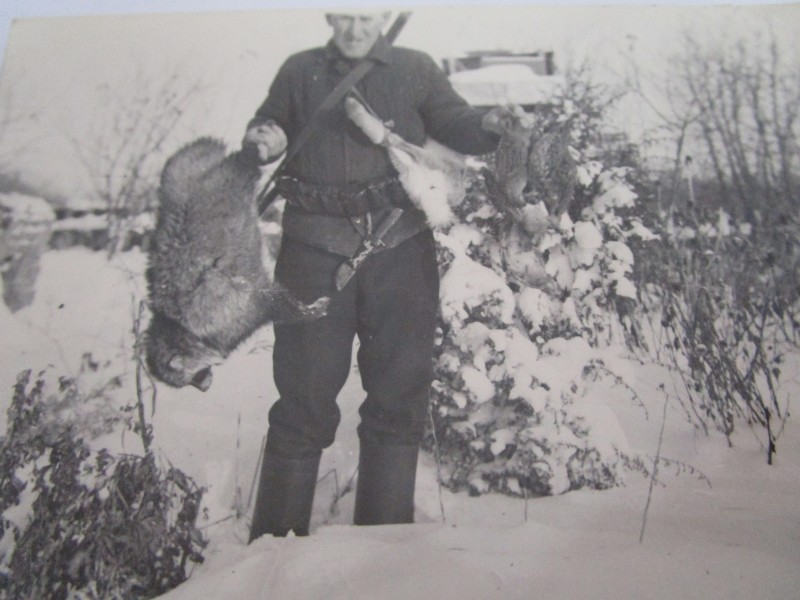 Біля церкви. На фото група людей: церковний хор і прихожани Свято-Преображенської церкви після хресного ходу навколо церкви. По центру протоієрей Чаленко Іван Григорович та протодиякон Прокопенко Іван Федорович одягнені у церковний одяг. На задньому плані дерев'яна церква. м. Бахмач, 50-ті рр. ХХ ст.