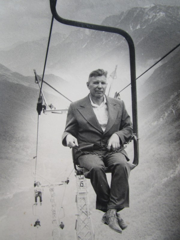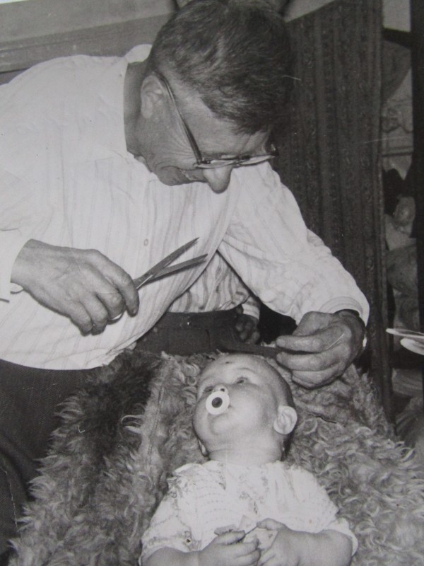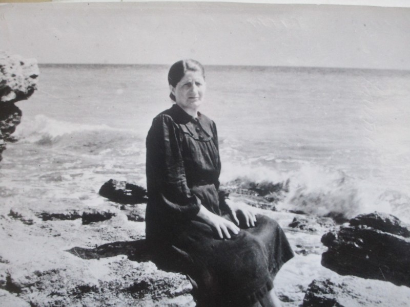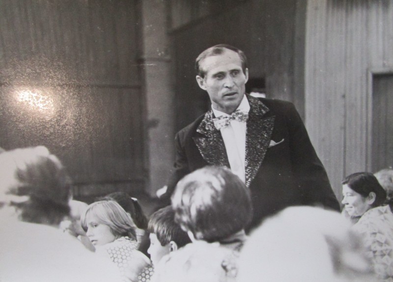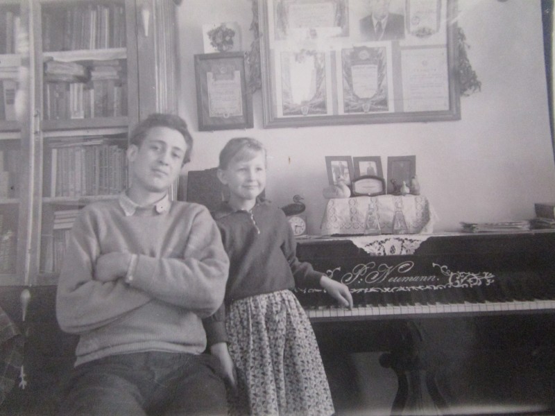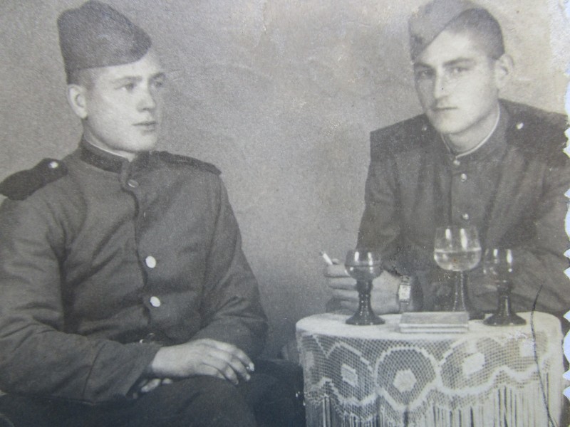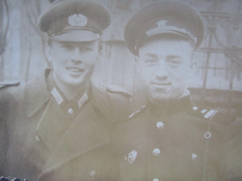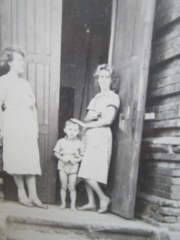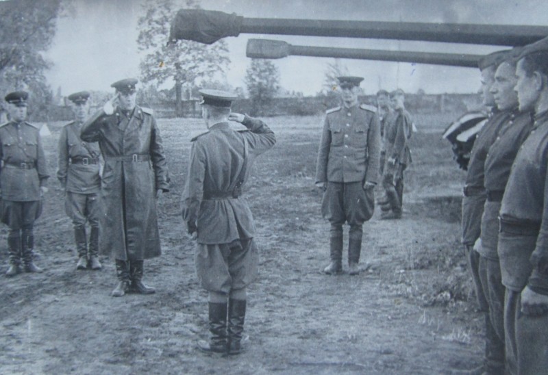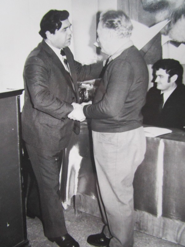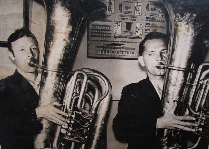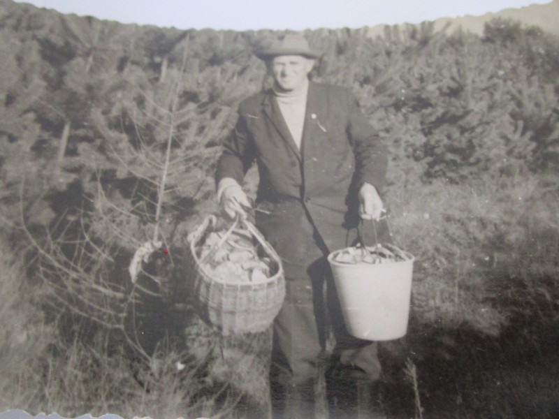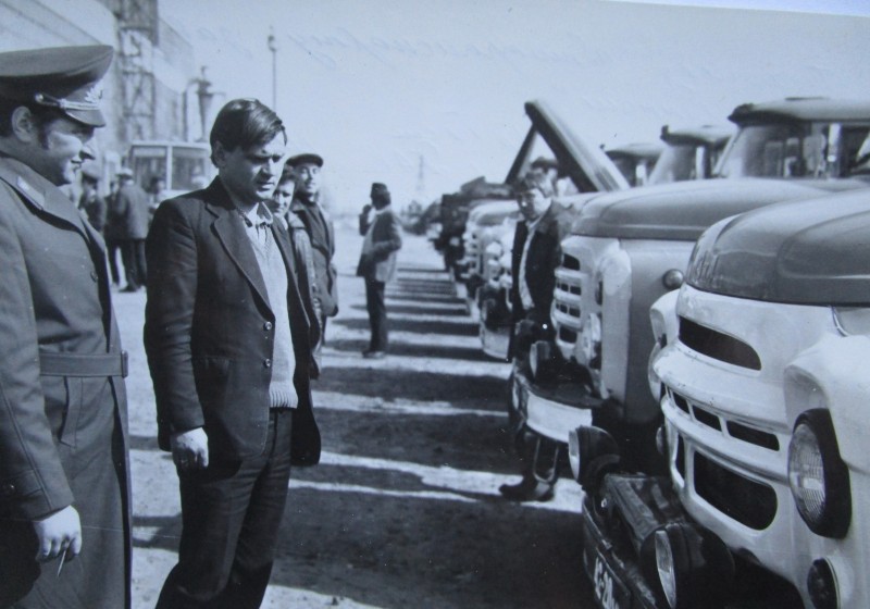 Біля церкви. На фото група людей: церковний хор і прихожани Свято-Преображенської церкви після хресного ходу навколо церкви. По центру протоієрей Чаленко Іван Григорович та протодиякон Прокопенко Іван Федорович одягнені у церковний одяг. На задньому плані дерев'яна церква. м. Бахмач, 50-ті рр. ХХ ст.