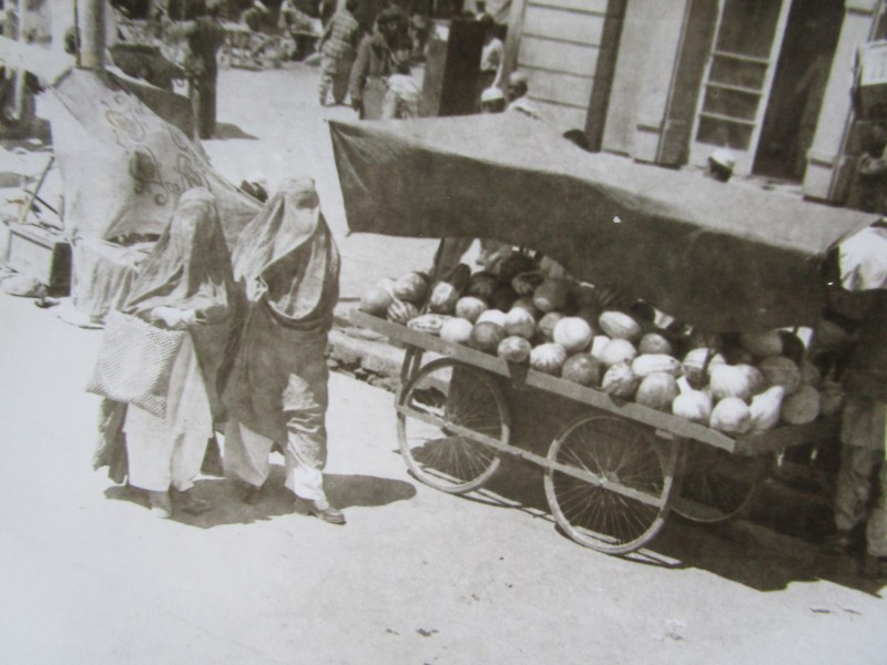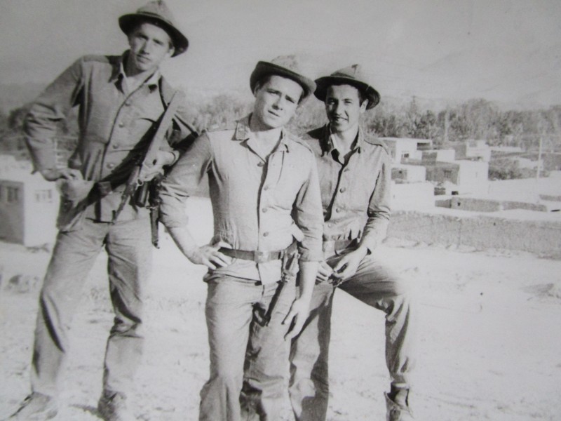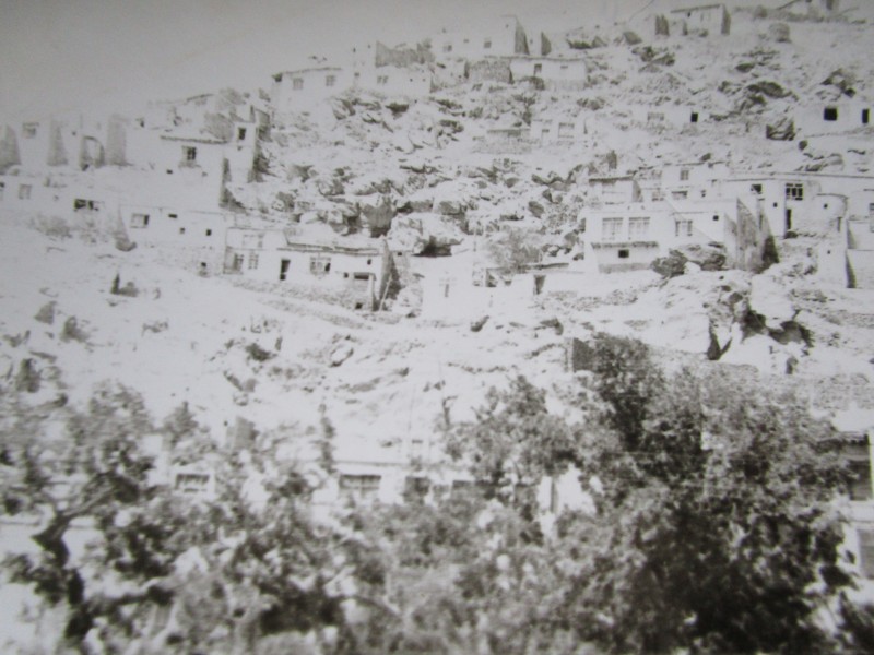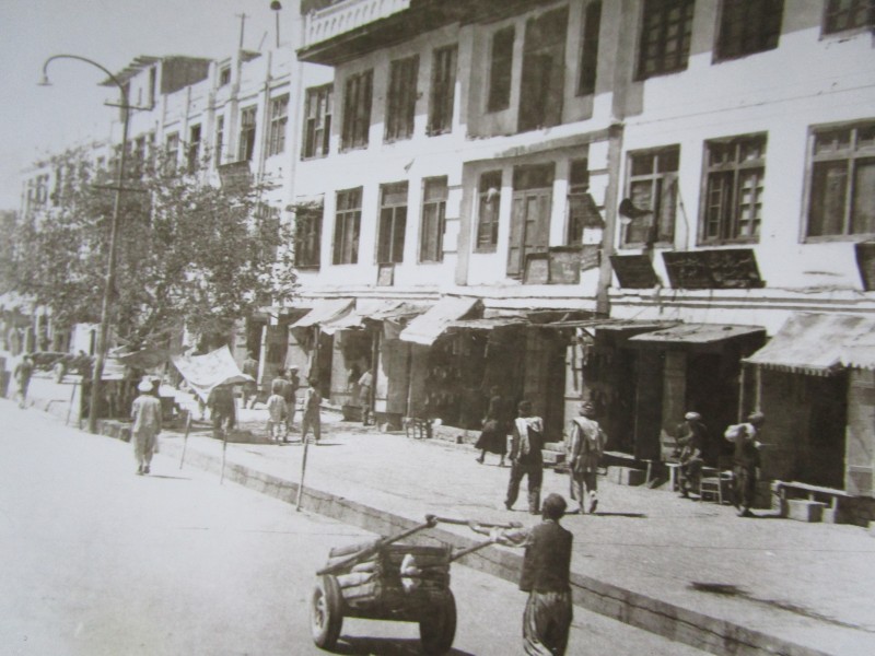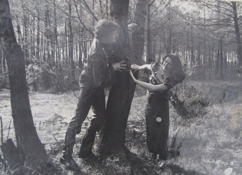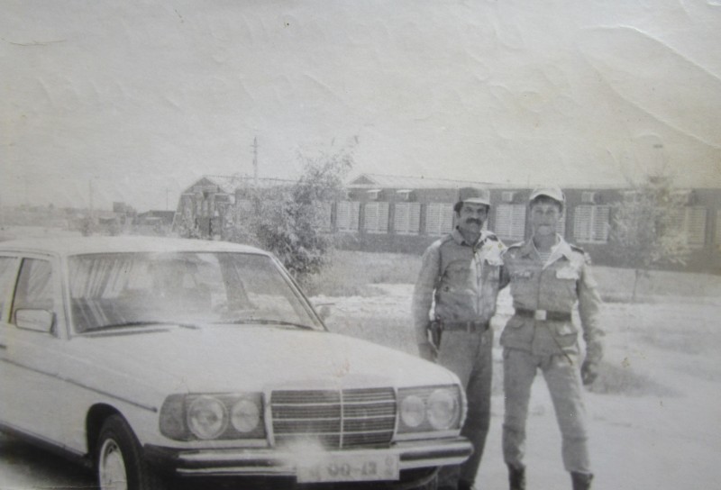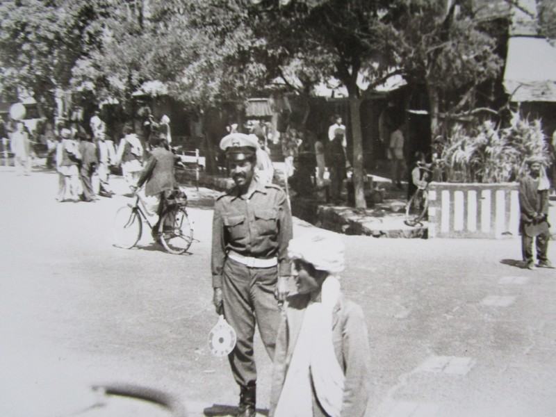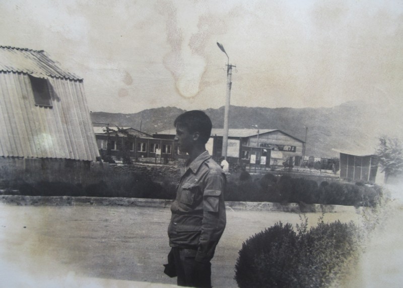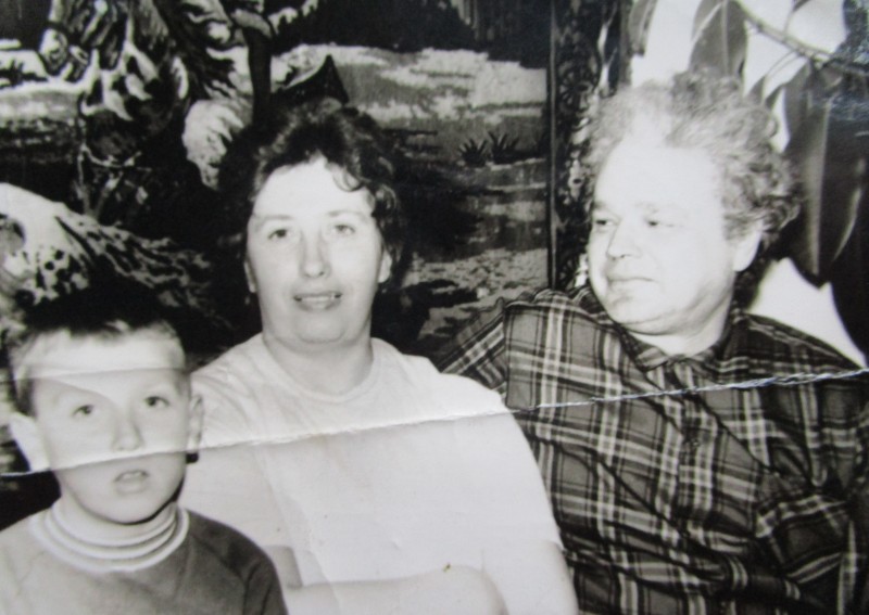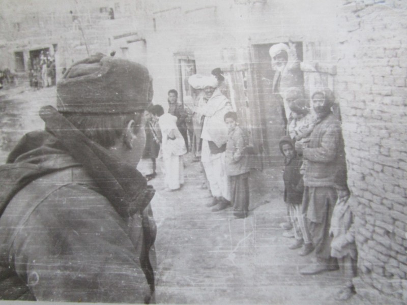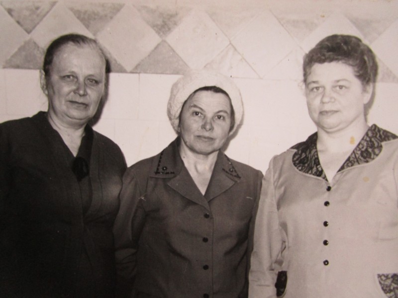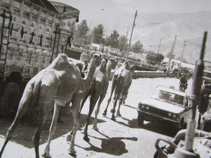 Святкування 1 травня м. Бахмач. По центру трибуна з написом "1-ше", на трибуні стоять люди. Виступає Арендар Петро Іванович - голова райвиконкому. Більшість людей одягнені у костюми. На задньому плані дерева без листочків. м. Бахмач, 1978 рік.