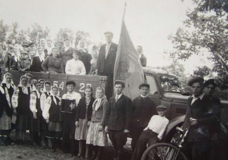 Фото. Кодаков О.К. після полювання з єнотом та зайцем, птахами в руках.
