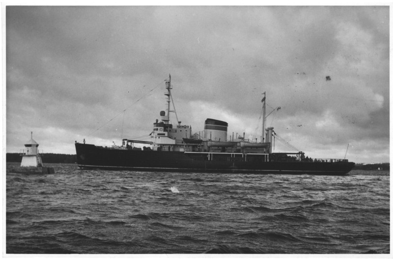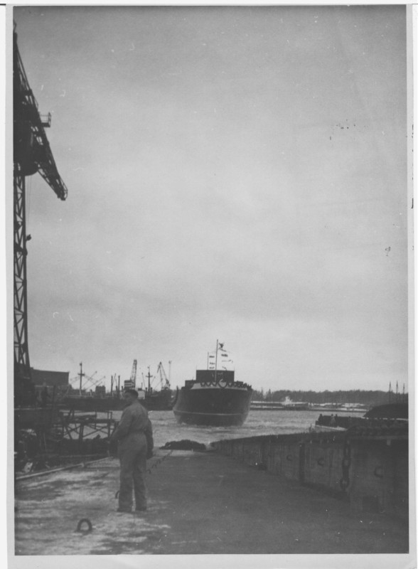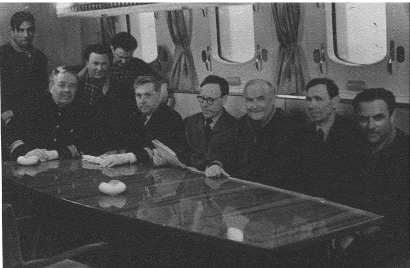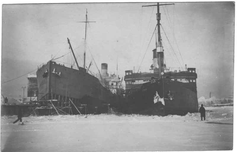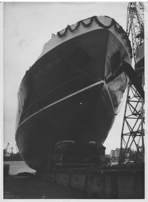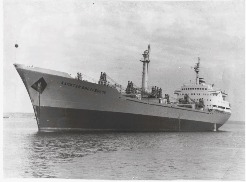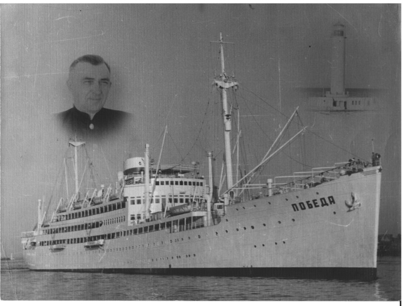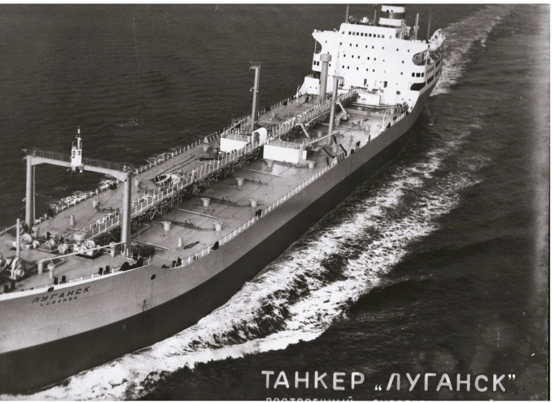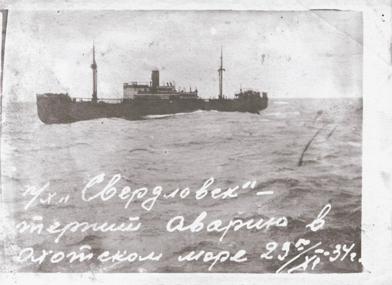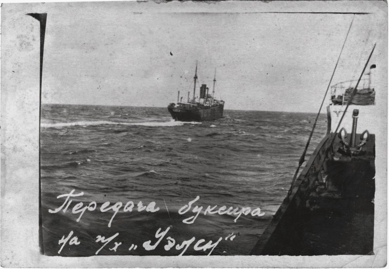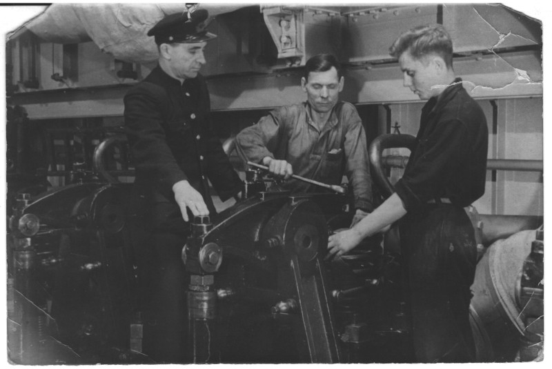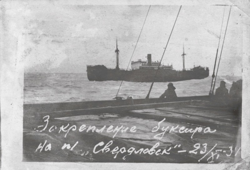 Фото. П/п «Севан» БМП. 1958 р. Занурення пароплава у воду. П/п "Севан" побудований в Турку, Фінляндія у 1945 р. 30.08.1958 р. судно було розчавлено кригою у Карському морі і загинуло.