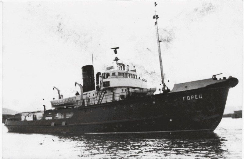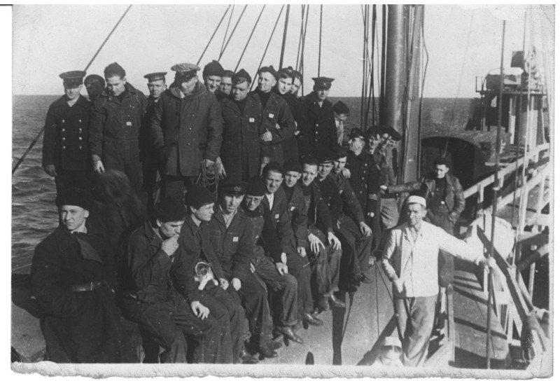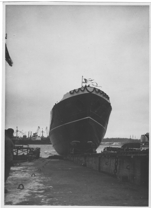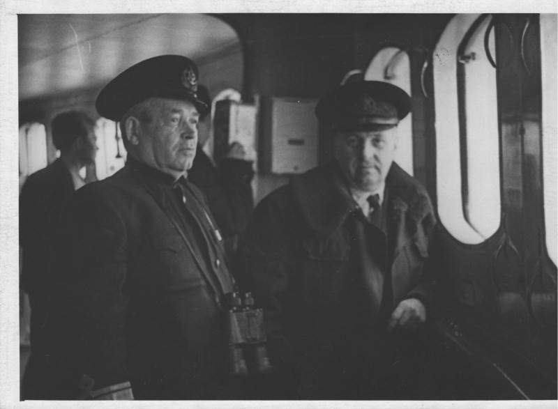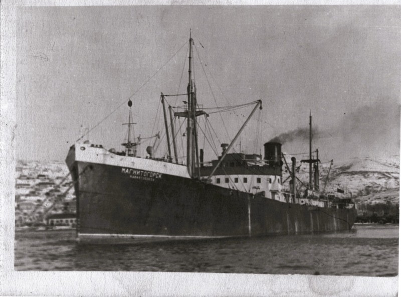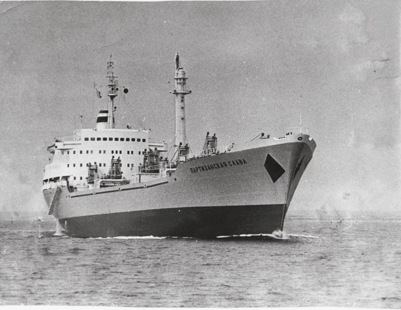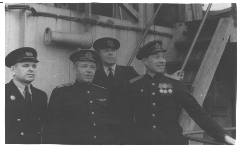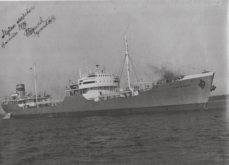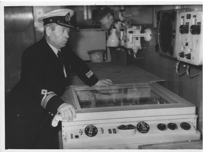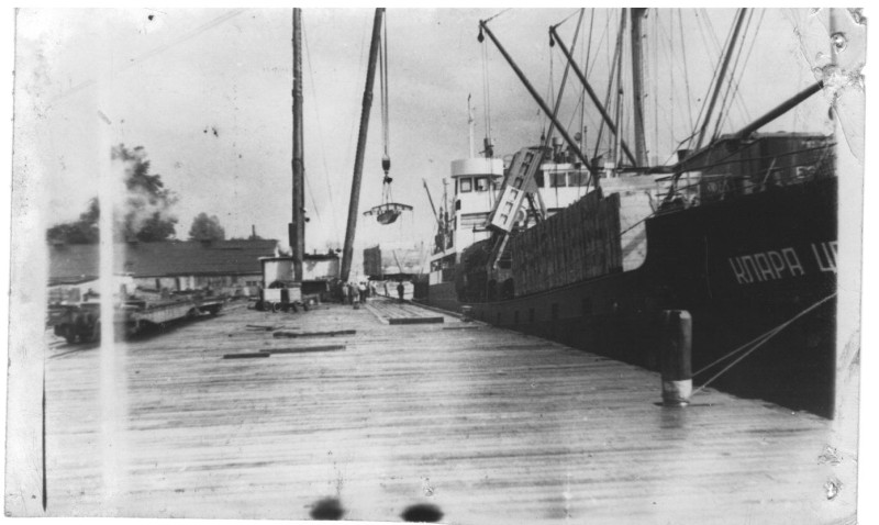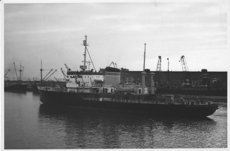 Фото. П/п «Севан» БМП. 1958 р. Занурення пароплава у воду. П/п "Севан" побудований в Турку, Фінляндія у 1945 р. 30.08.1958 р. судно було розчавлено кригою у Карському морі і загинуло.