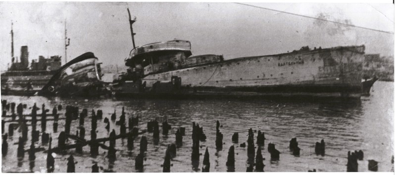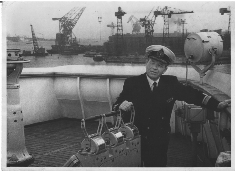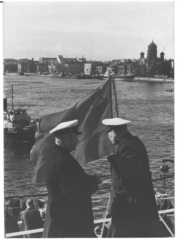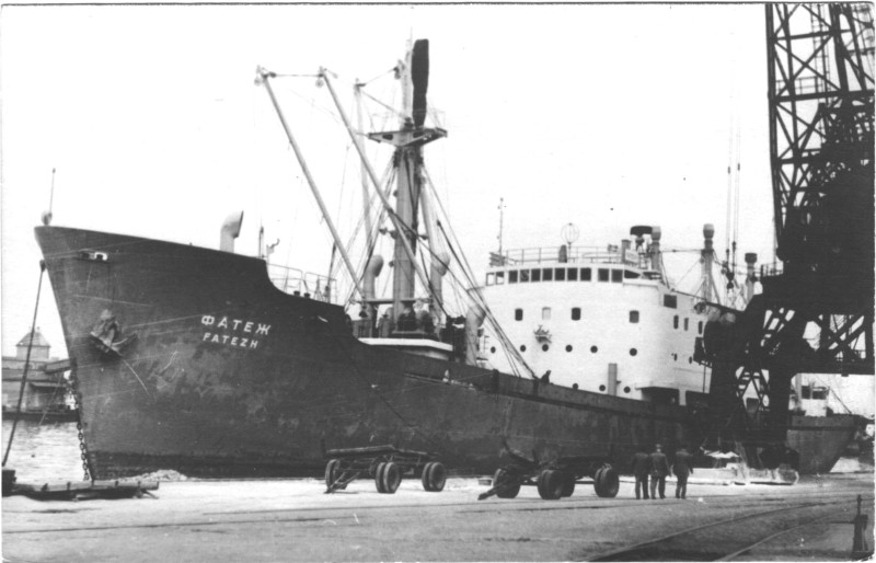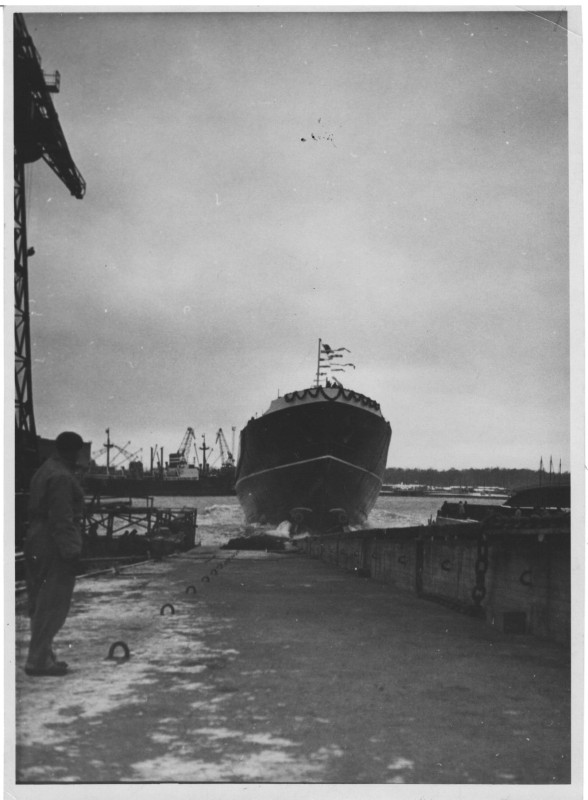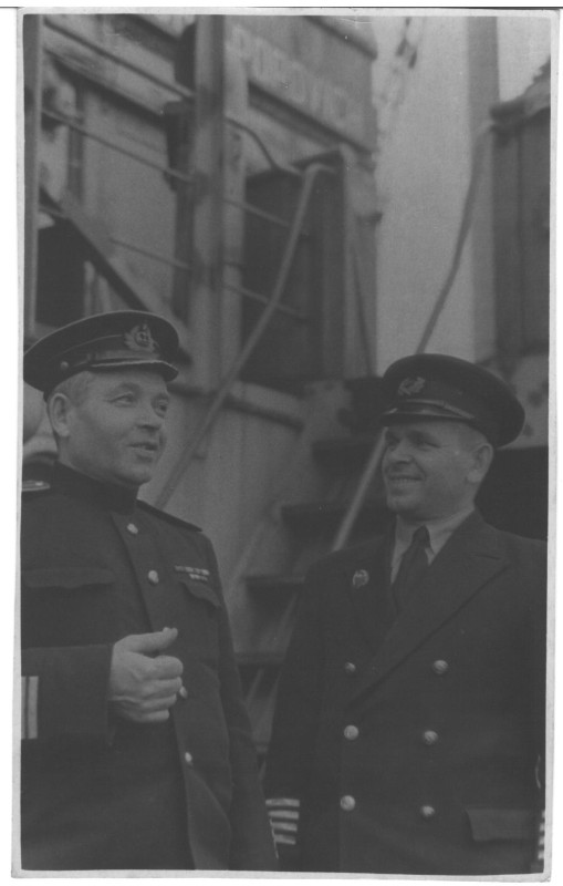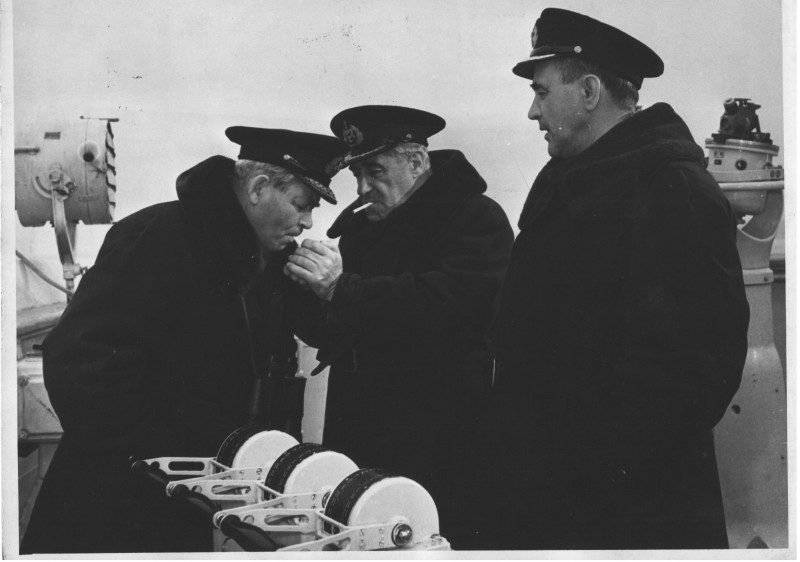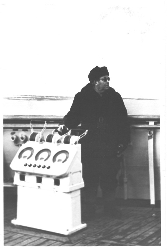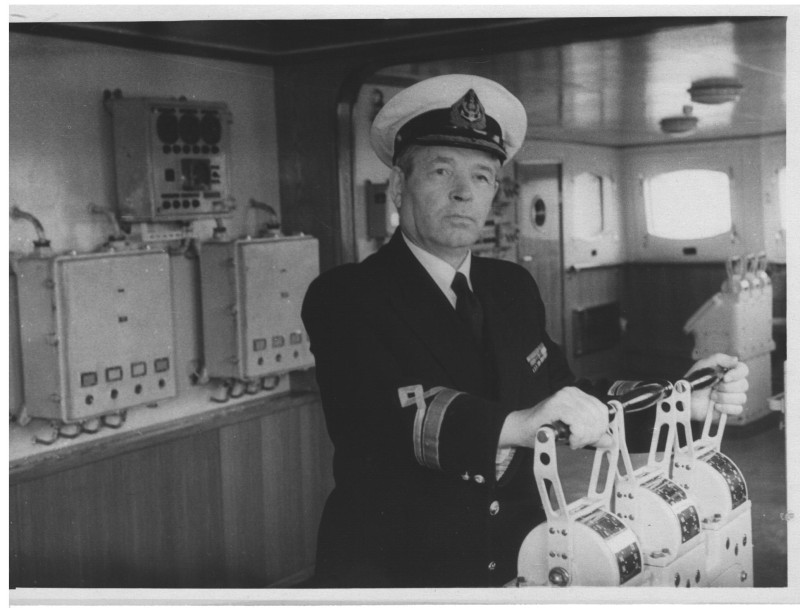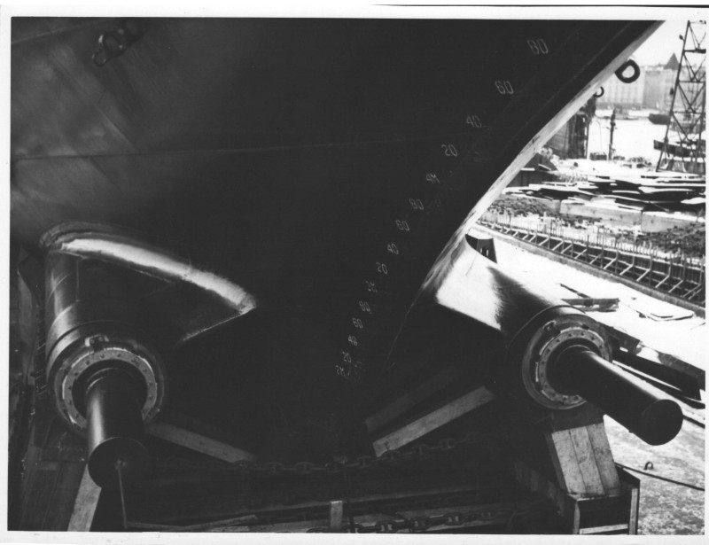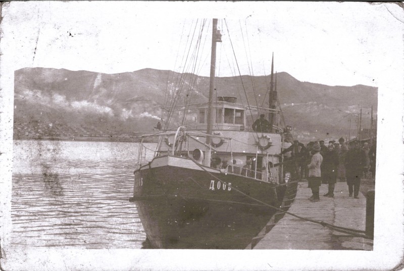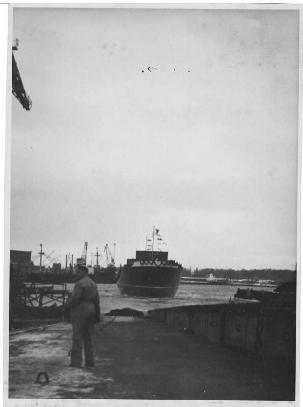 Фото. П/п «Севан» БМП. 1958 р. Занурення пароплава у воду. П/п "Севан" побудований в Турку, Фінляндія у 1945 р. 30.08.1958 р. судно було розчавлено кригою у Карському морі і загинуло.