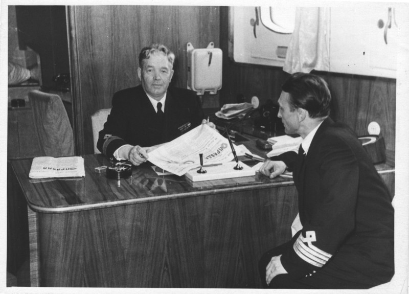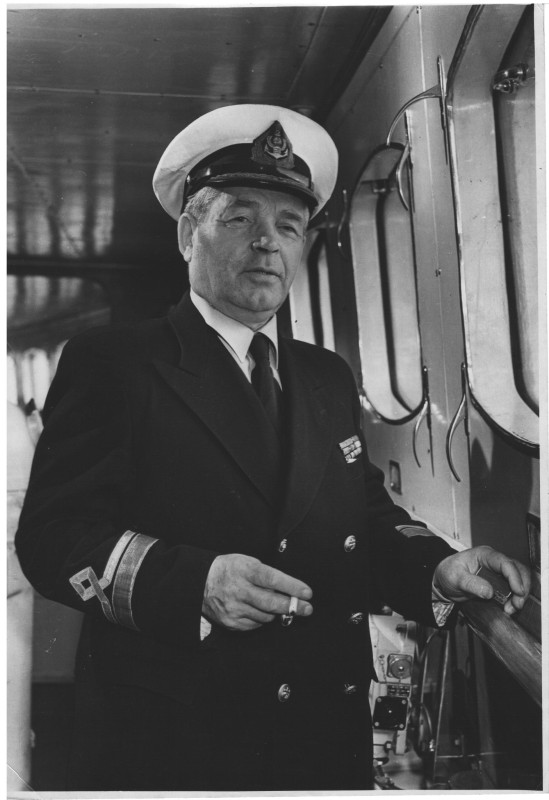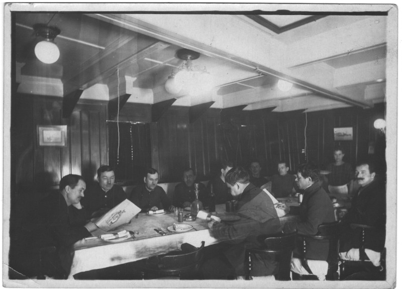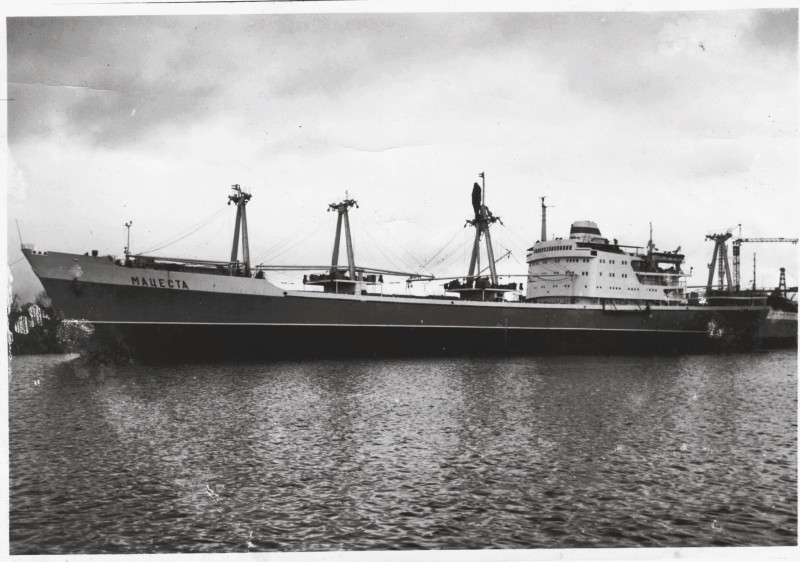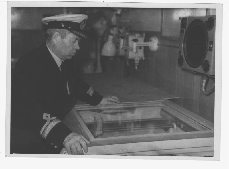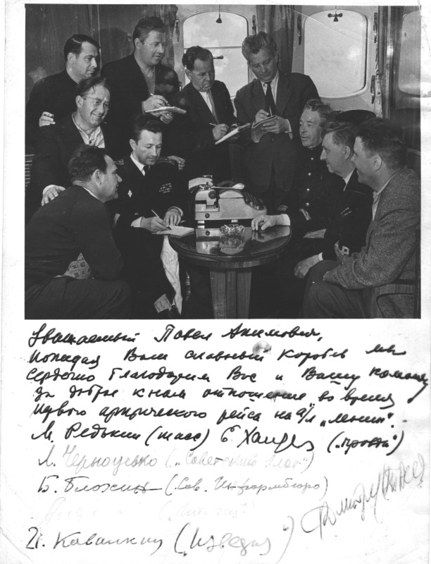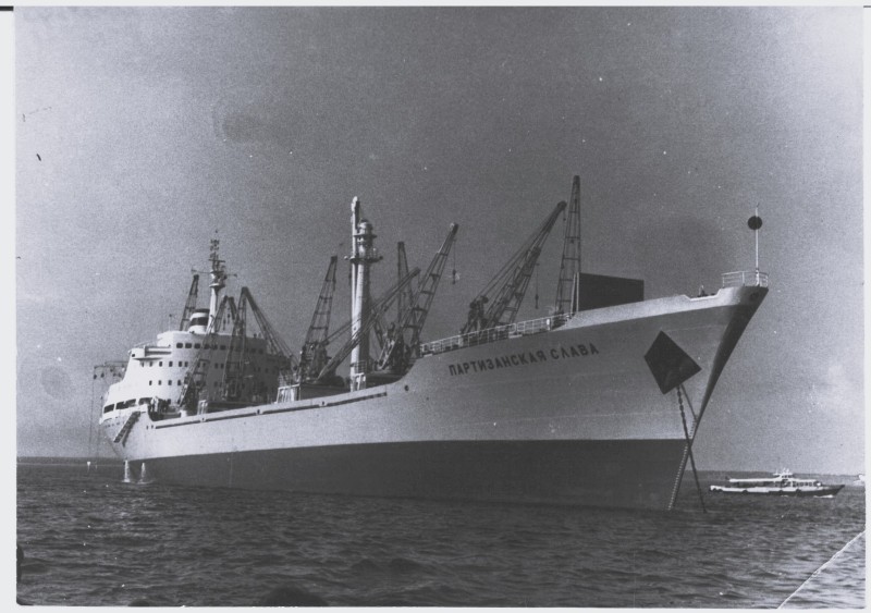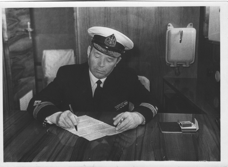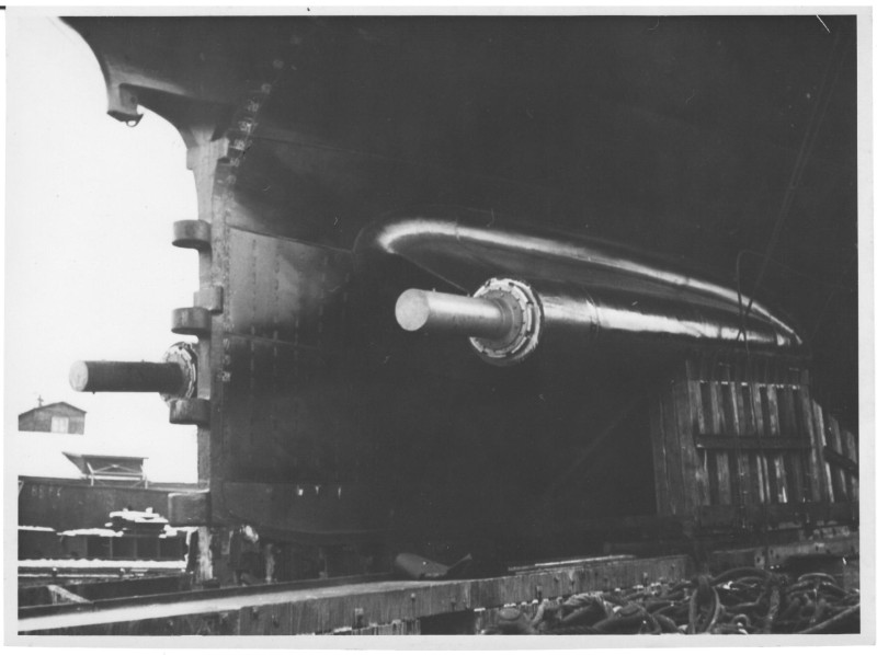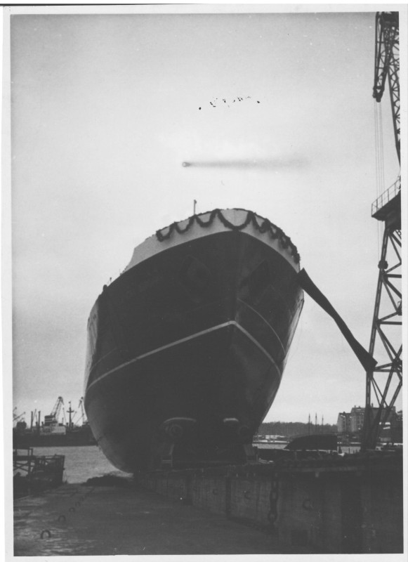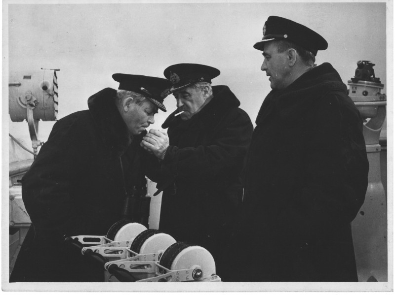 Фото. П/п «Севан» БМП. 1958 р. Занурення пароплава у воду. П/п "Севан" побудований в Турку, Фінляндія у 1945 р. 30.08.1958 р. судно було розчавлено кригою у Карському морі і загинуло.