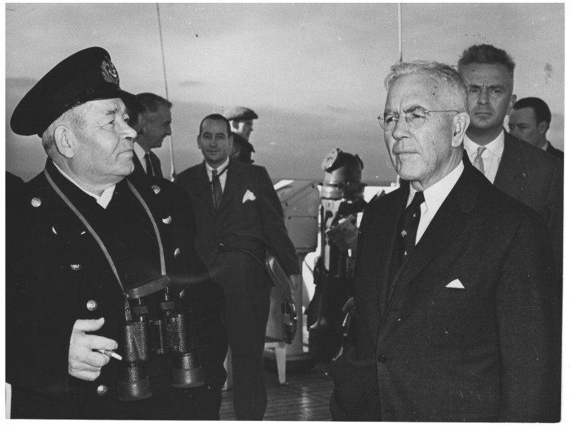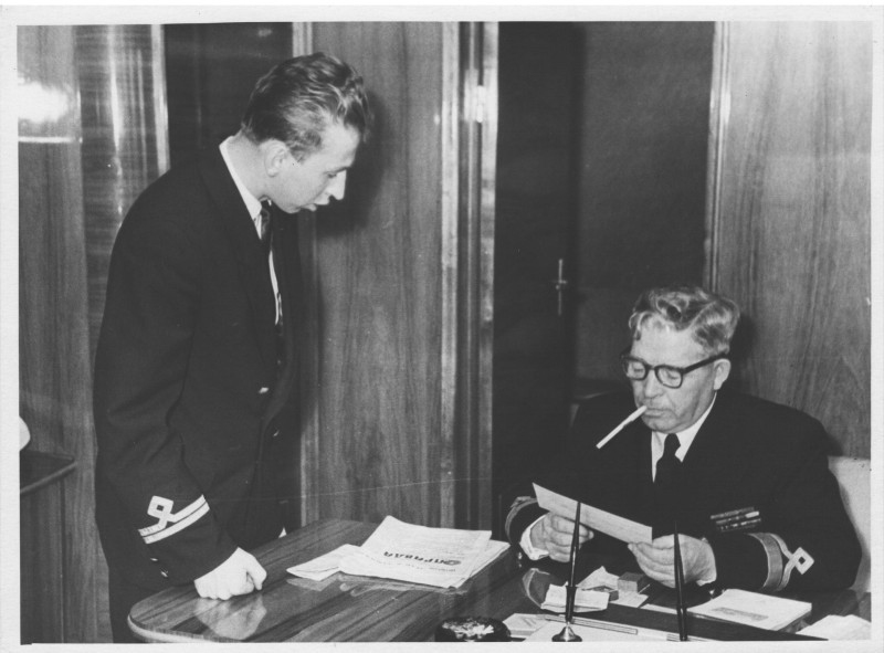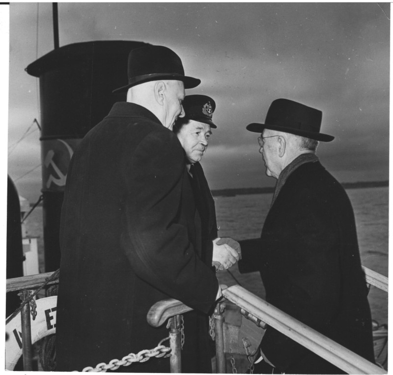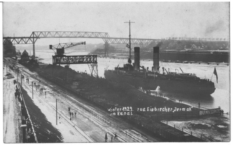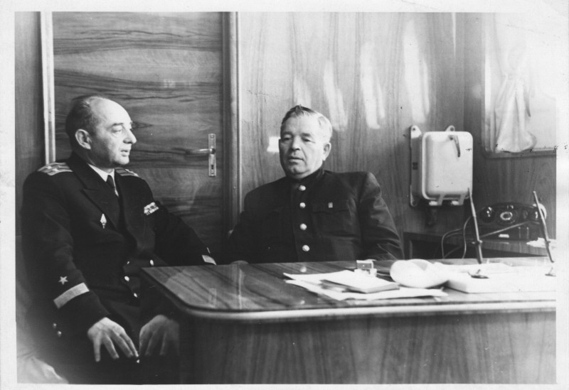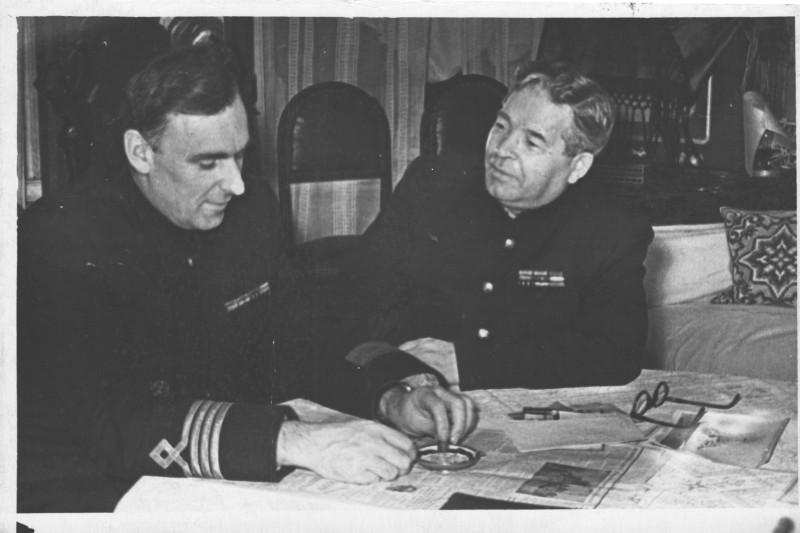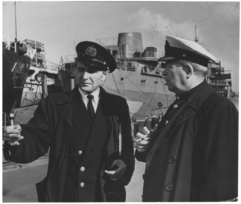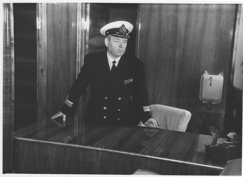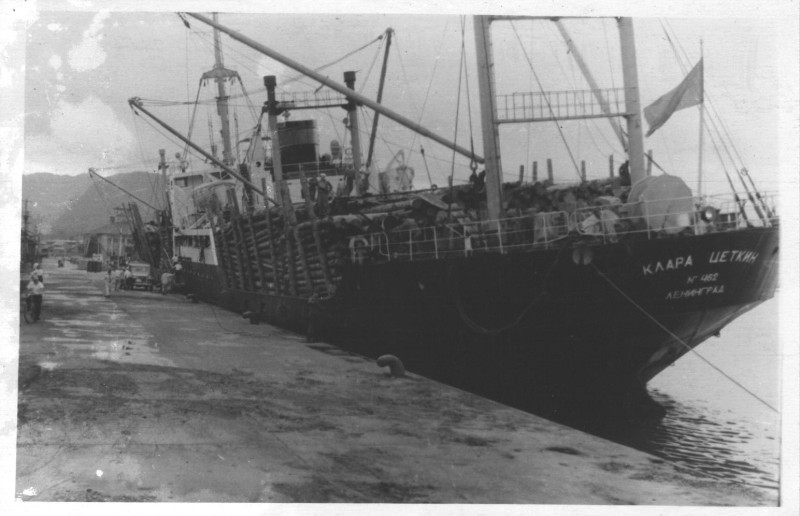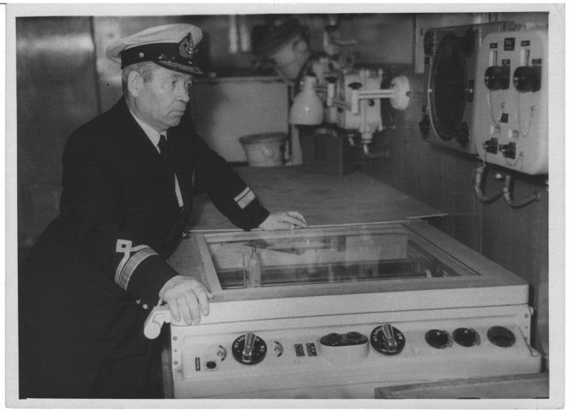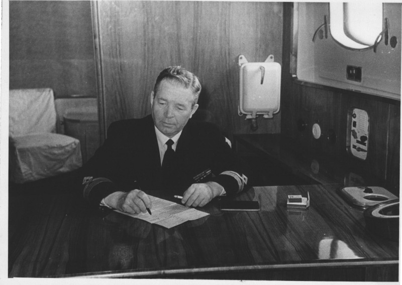 Фото. П/п «Севан» БМП. 1958 р. Занурення пароплава у воду. П/п "Севан" побудований в Турку, Фінляндія у 1945 р. 30.08.1958 р. судно було розчавлено кригою у Карському морі і загинуло.