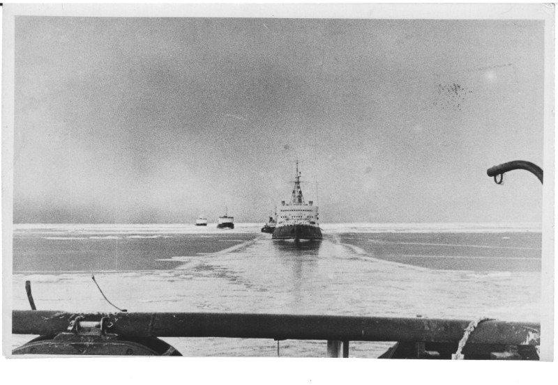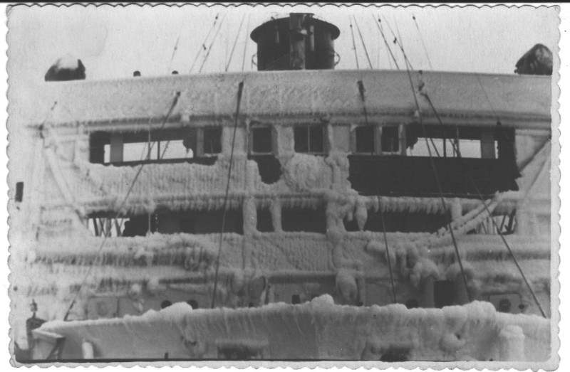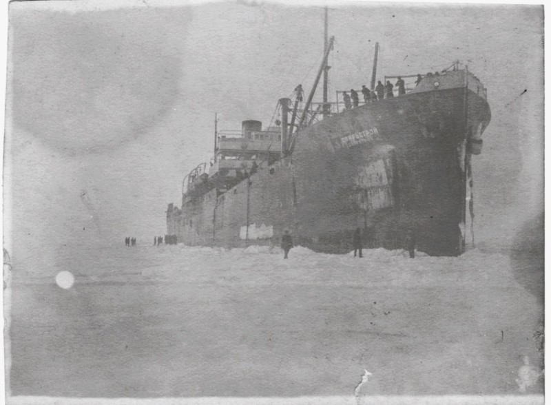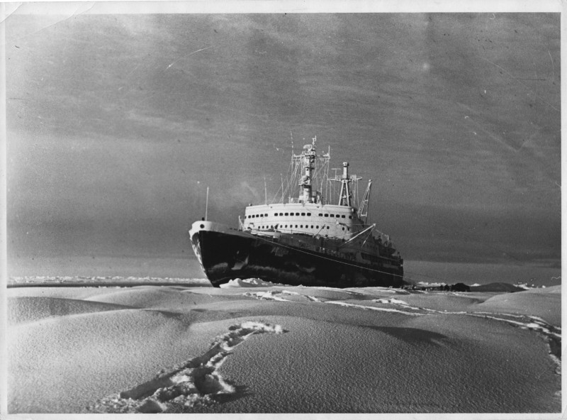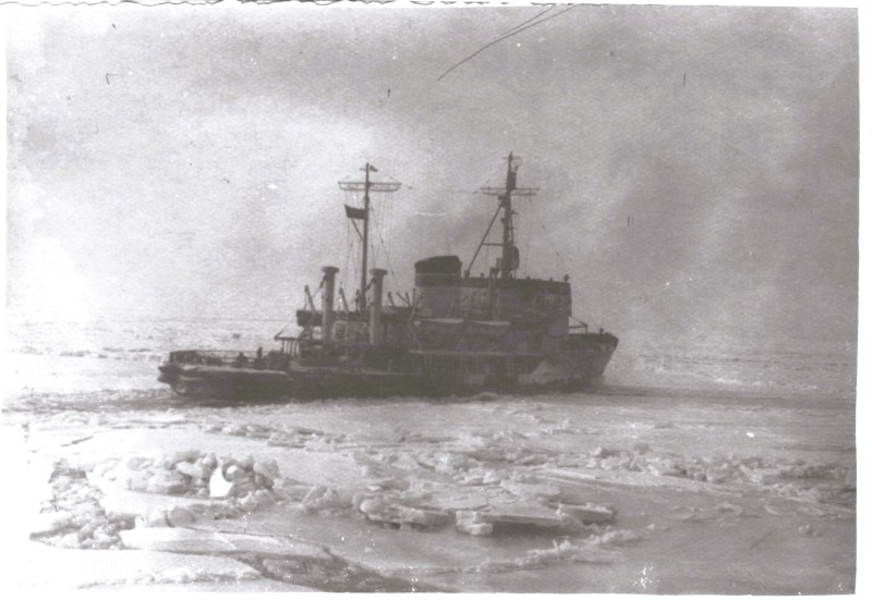 Фото. Пароплав "Севан" серед криги. 1958 р.