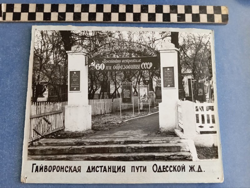 фото, на якому зображено вхід пункт технічного огляду ст.Гайворон колетив комуністичної праці з 1963 року.