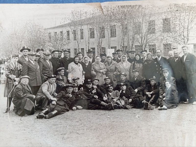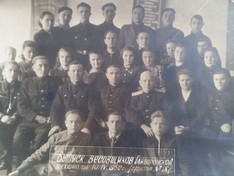 Фото "Пункт техогляду ст.Гайворон. Колектив комунальної праці, 1953 р."