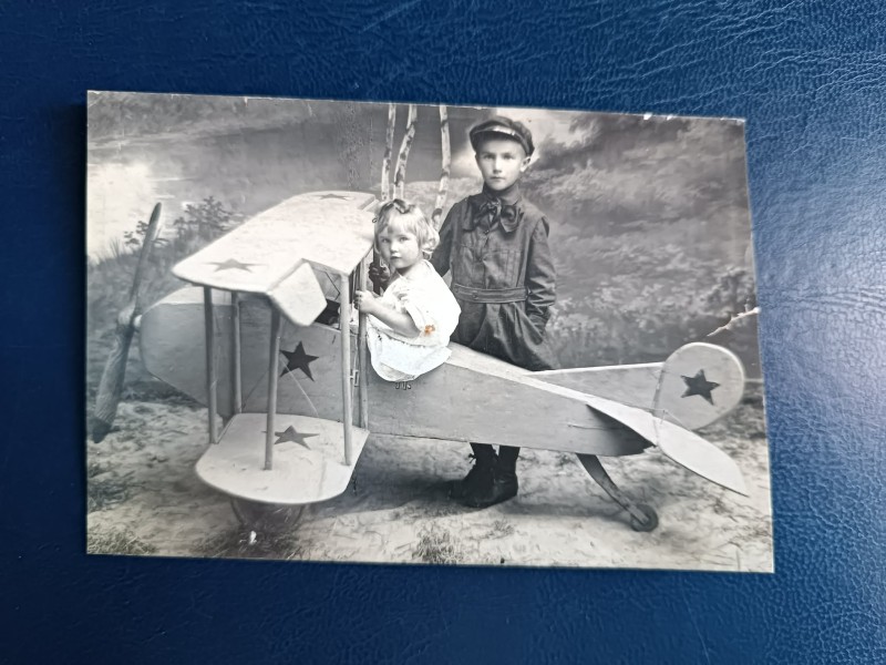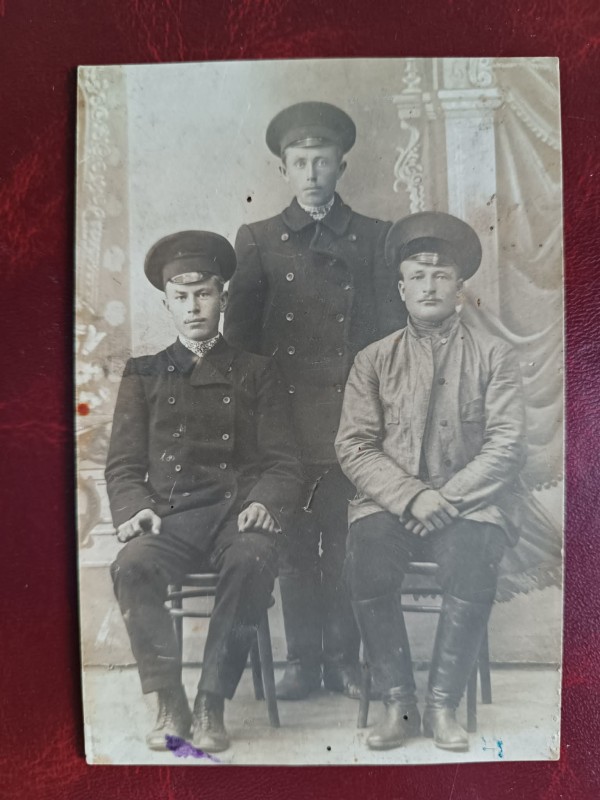 Фото родини Марчук, зображено трьох людей: чоловіка в чоботях із бородою, дружини і дитини.