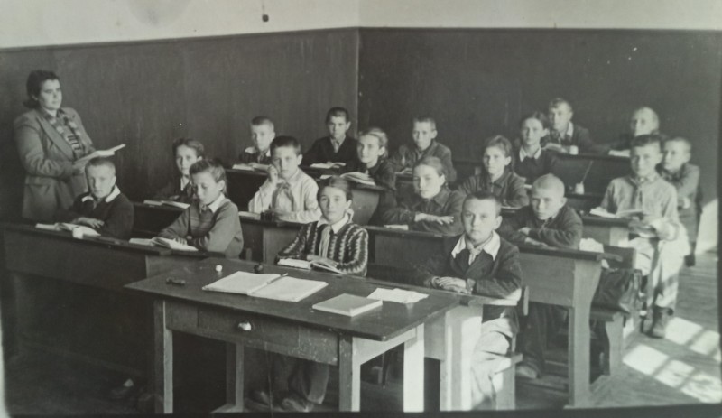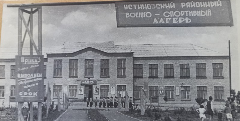 Фото шикування Устинівського районного військово - спортивного табору, який проходив у липні 1970 року на базі Димитровської середньої школи (нині - с.Новоігорівка). Чорно - біле.