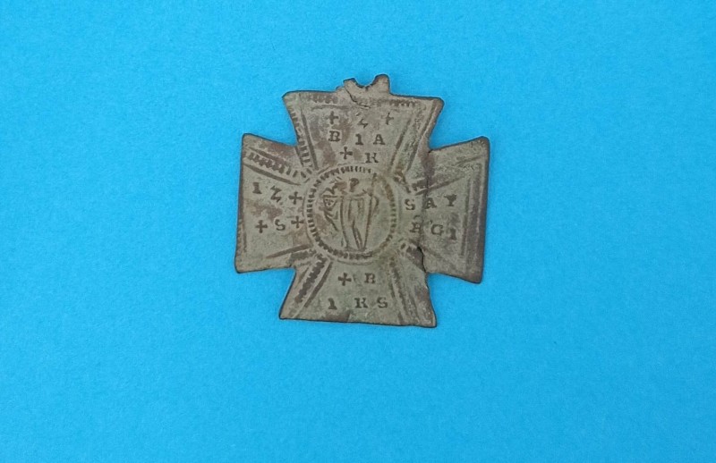 Фрагмент скляного браслету, XII - перша половина XIII ст. Виготовлений шляхом скручування розігрітого скляного джгута, що надає йому форми "гвинта". Має насичений синій (кобальтовий) колір. На поверхні помітні сліди патини. Має дугоподібний вигин, характерний для ручних прикрас. Належить до давньоруського періоду.