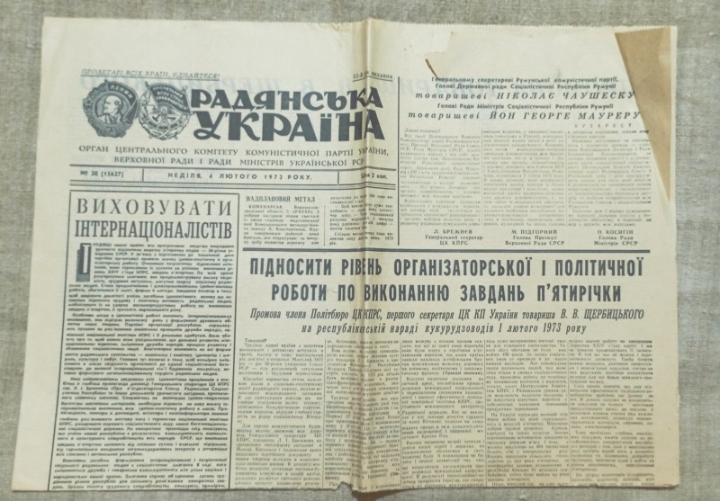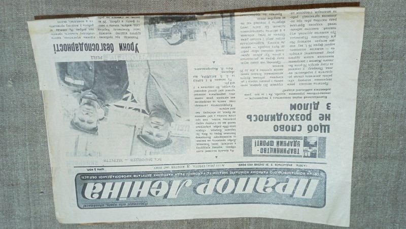 Газета " Прапор Леніна" №135(9030) від 10 листопада 1987року - орган Компаніївського райкому компартії України та районної ради народних депутатів Кіровоградської області. На першій та другій сторінці стаття " Вітчизні - труд натхненний". Газета пожовкла від часу.
