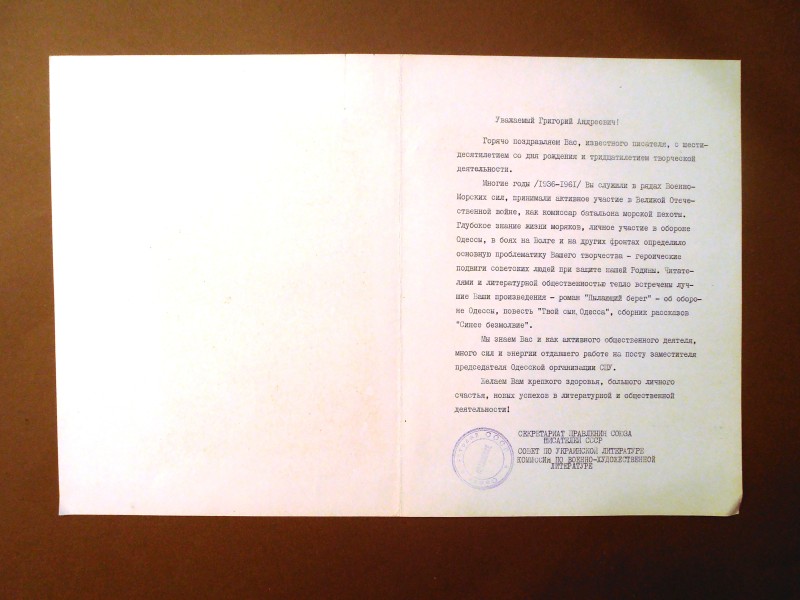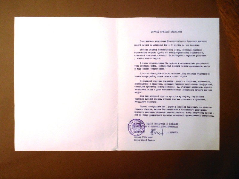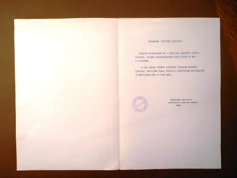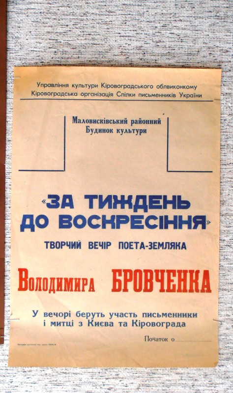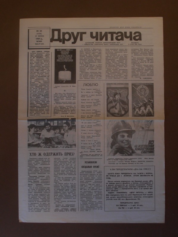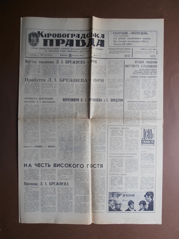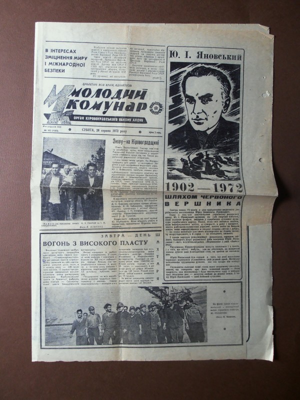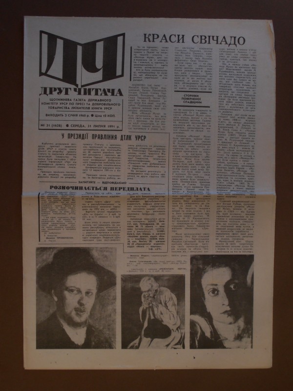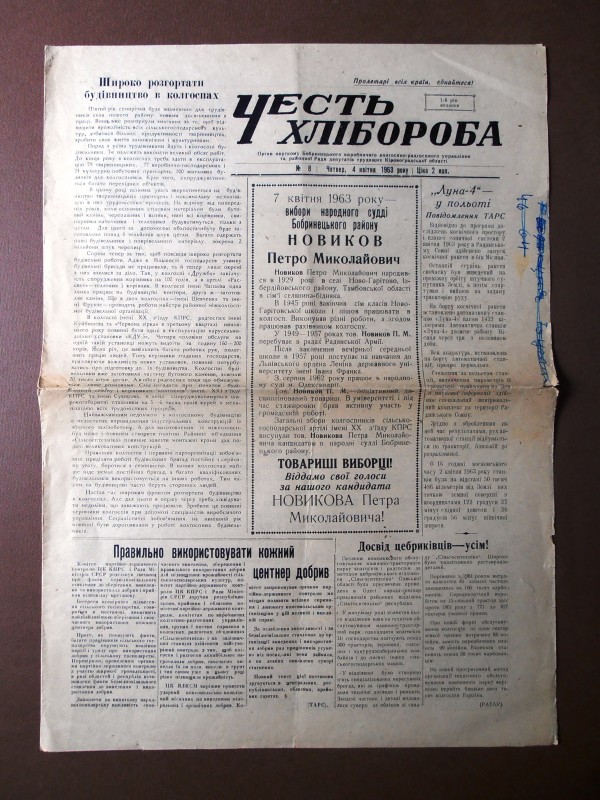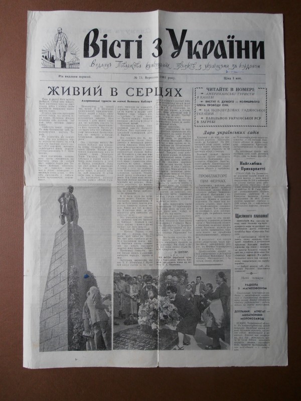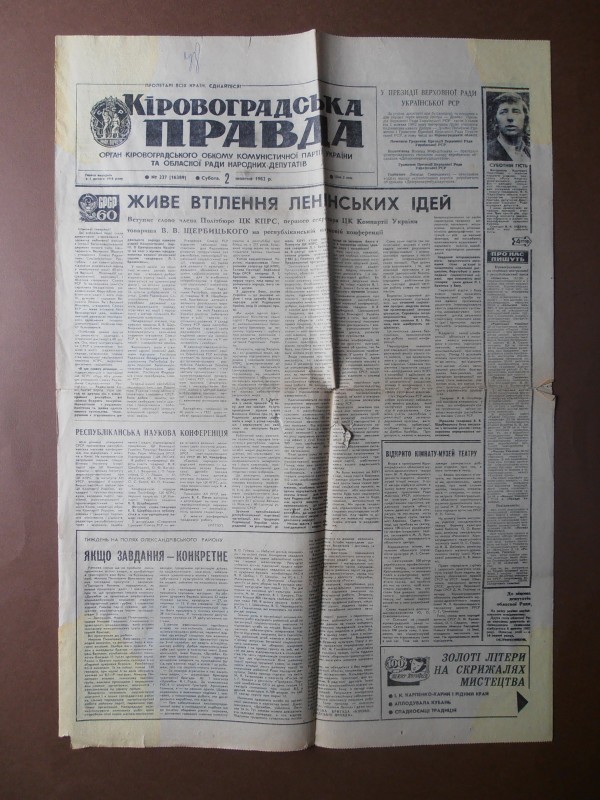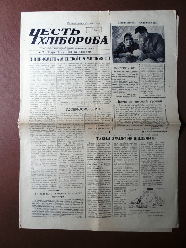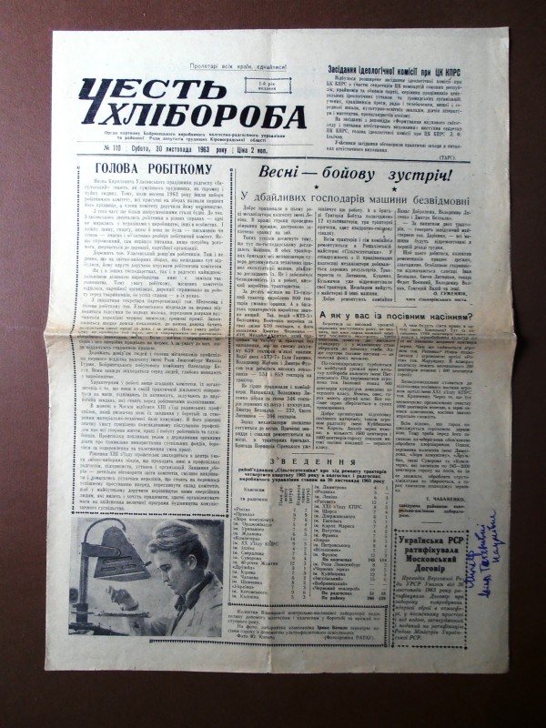Газета "Правда", №1 від 22 квітня 1912 р. Репринтне відтворення до 60-річчя від дня виходу першого номера, 1972 р. Чотирьохшпальтова, друк чорною фарбою, російською мовою. На с.1 розміщено вірш Ю.Придворова "Полна страданий наших чаша". Придворов Юхим Олексійович (псевдонім Дем'ян Бєдний) - (1883, с.Губівка, нині Компаніївського р-ну Кіровоградської обл. - 1945, м.Москва) - поет, байкар.