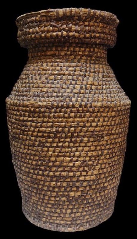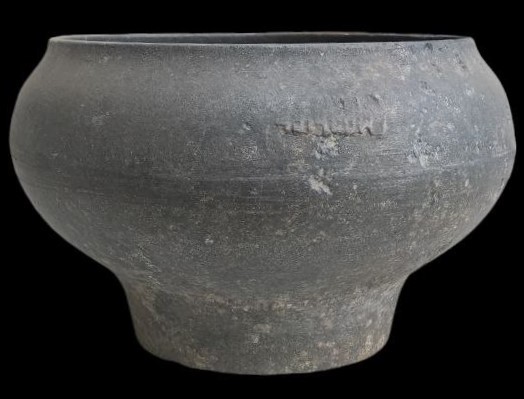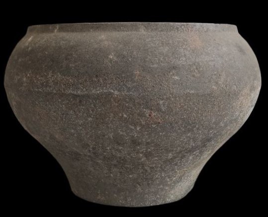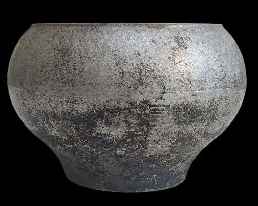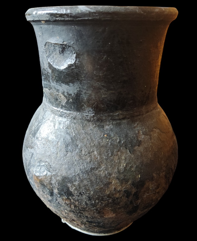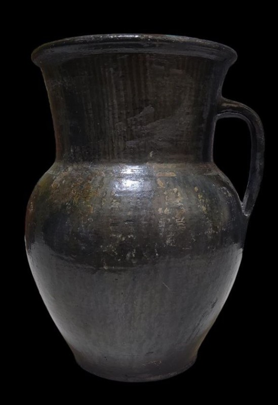Глечик глиняний з вузькою шийкою, кулястої форми. Оздоблений орнаментом з випалених ліній. Має одну річку. Автор невідомий