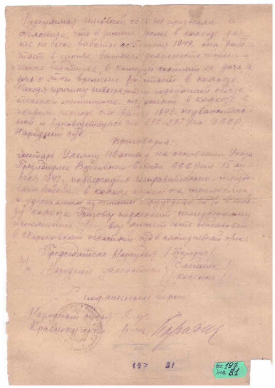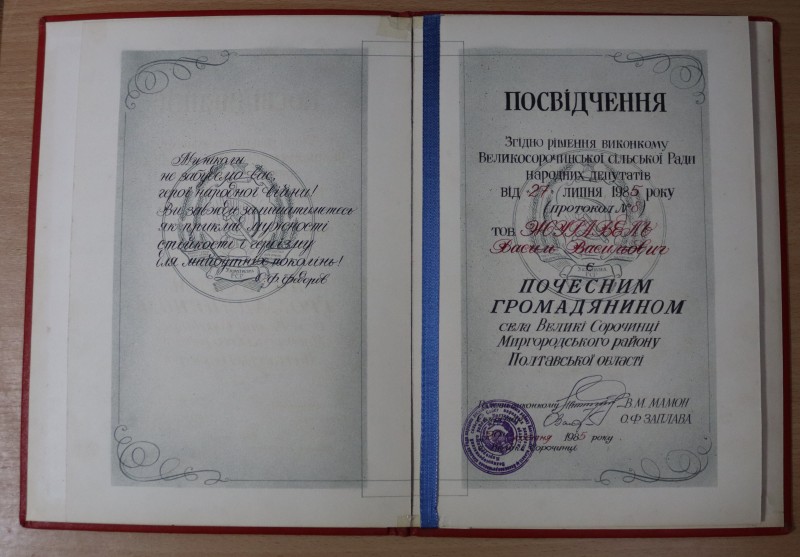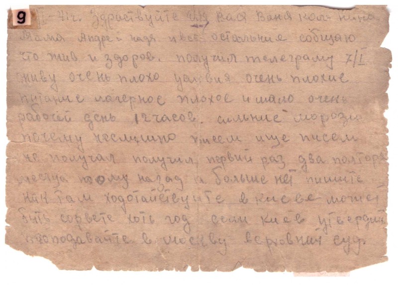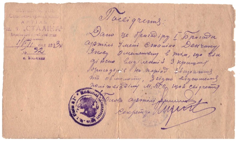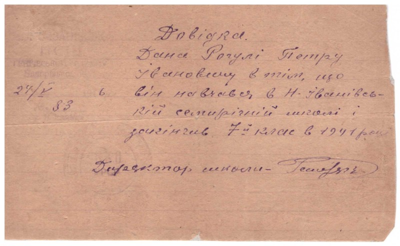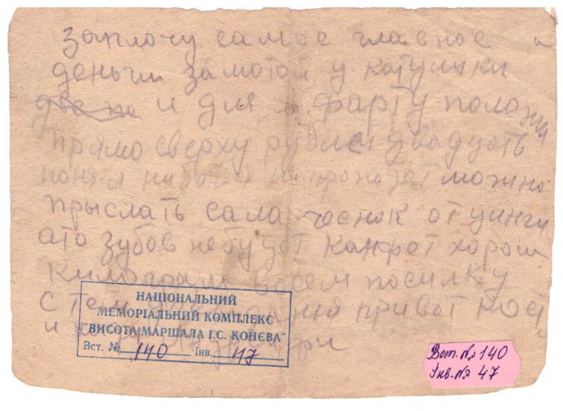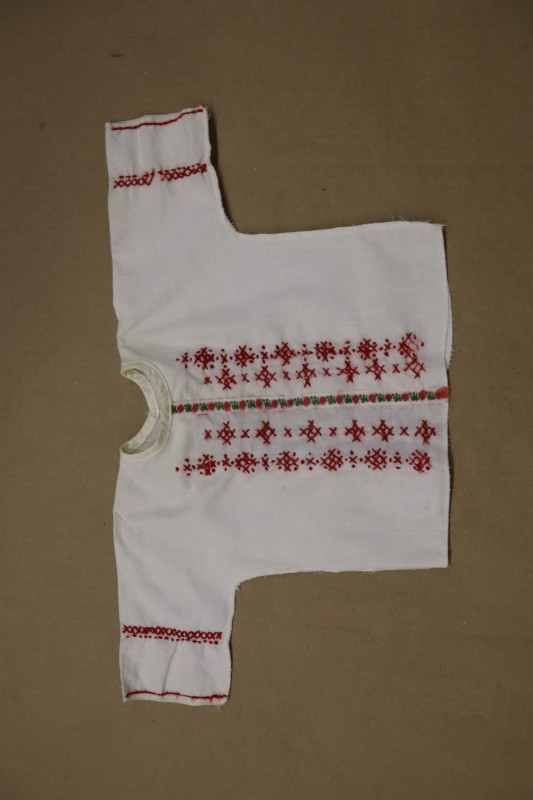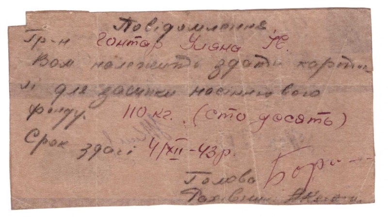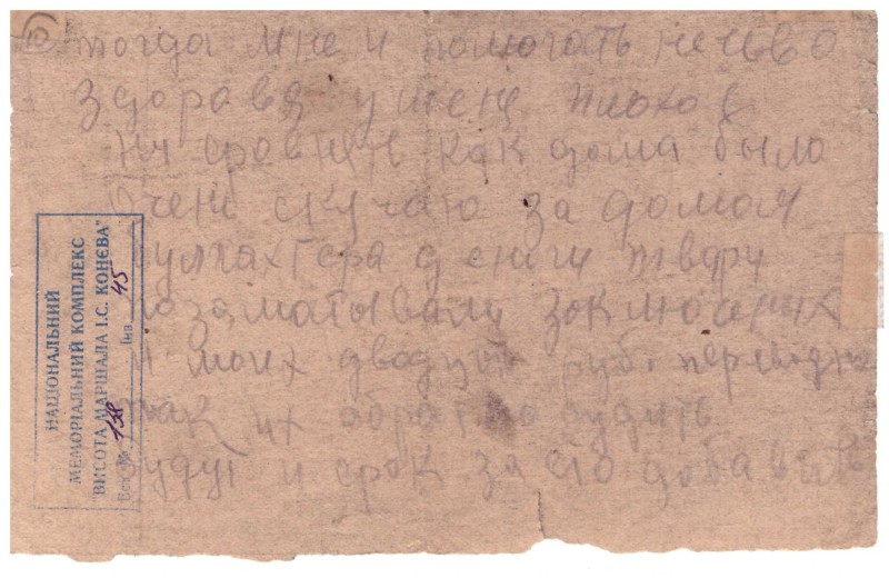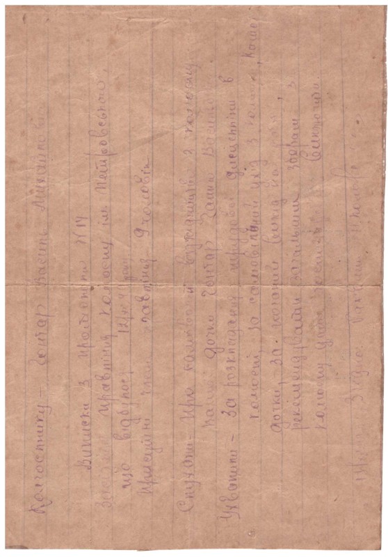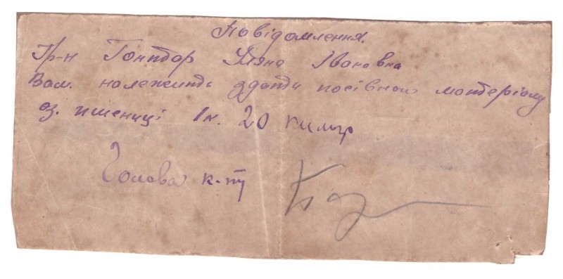 Глек маленький. Горловина у вигляді прямокутного циліндра висотою h – 10 см з наліпленим обідком h – 0,8 см. Від горловини нижня частина конусоподібної випуклої форми на кінці зрізана. Дно d – 8 см. Всередині глек вкритий поливою жовтого кольору. Горловина має надщерблення. Виготовлений глек на гончарному крузі.