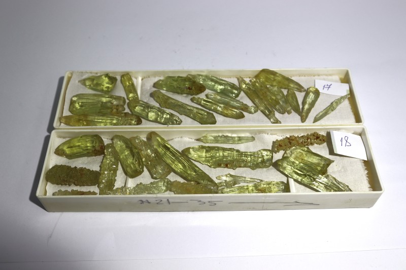Граніт слабо альбітизований. Сектороподібний, в поперечному перетині відрізок керну. В зразку спостерігається зона контакту між сірим середньозернистим овоїд ним альбітизованим гранітом з дрібнозернистим, рівномірно зернистим сірим альбітизованим гранітом. Розмір овоїдів альбіту в середньозернистому граніті досягає 1,2 см, в дрібнозернистому граніті розм. зерен 0,2-0,6 см.