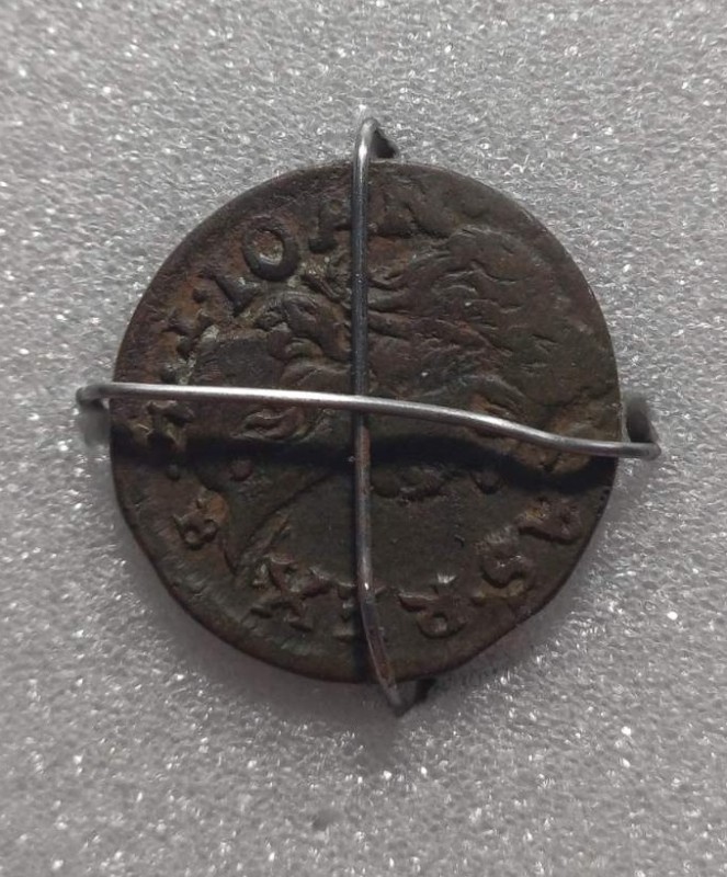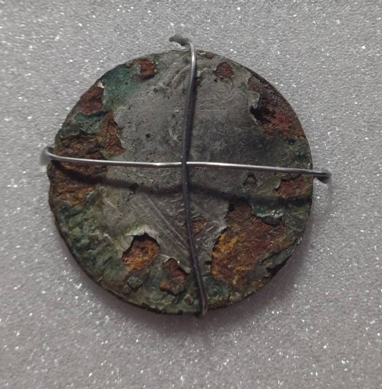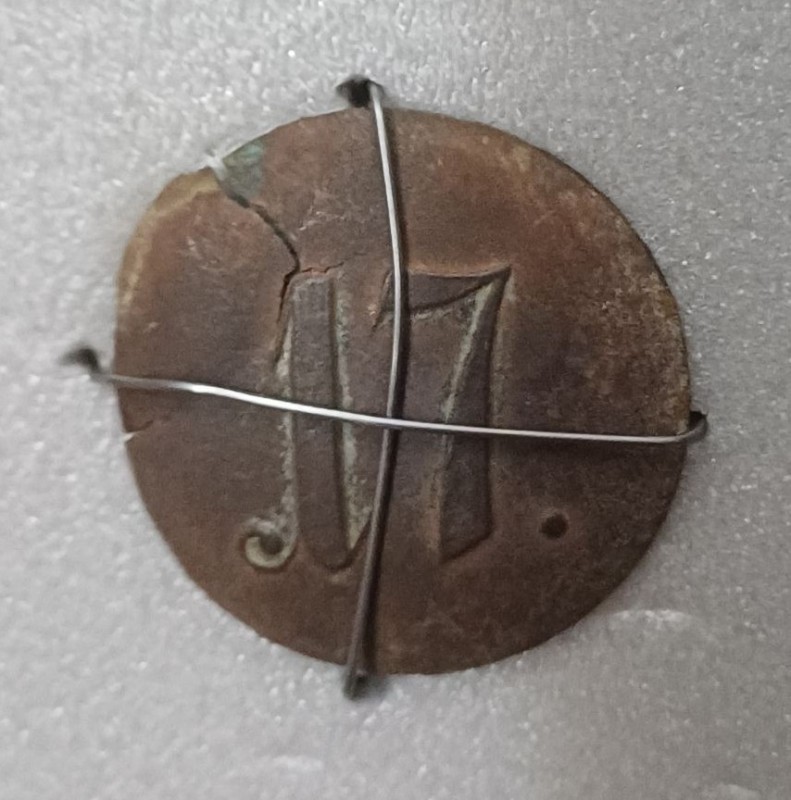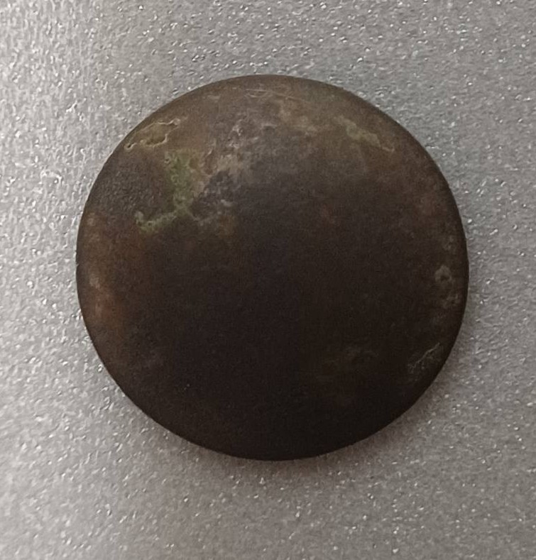 Гудзик солдатський з двухголовим орлом, круглий з рельєфним зображенням двухголового орла з короною. На зворотньому боці напис: Г.В.БОЛХОВИТИНЬ ВЬ МОСКВЬ.