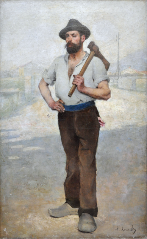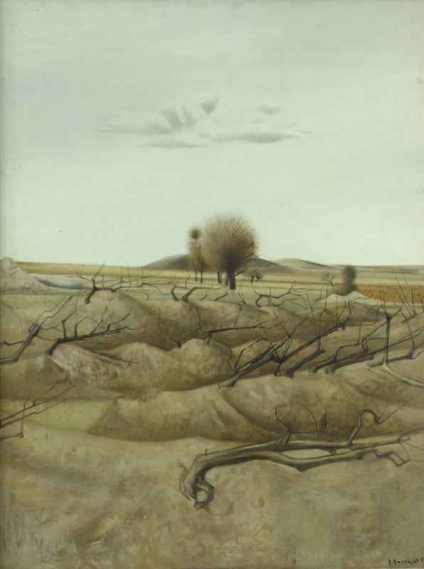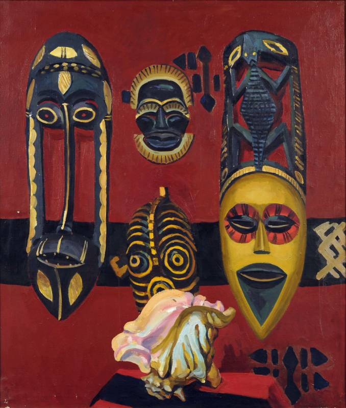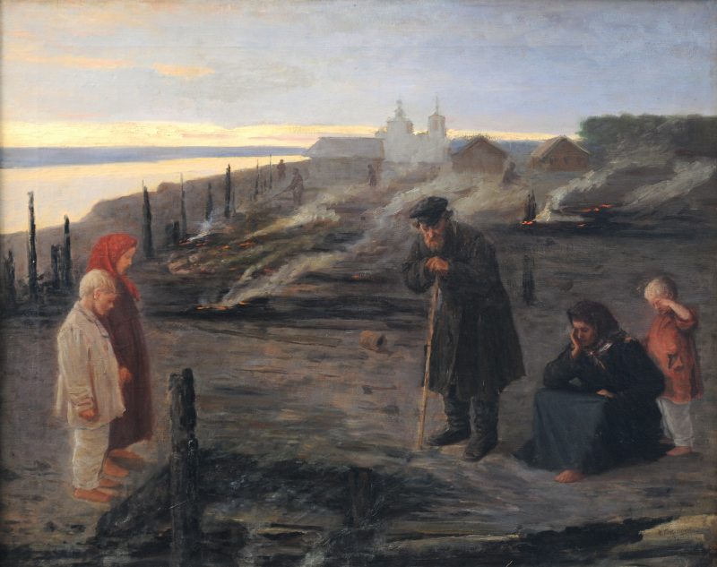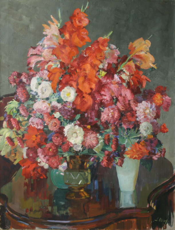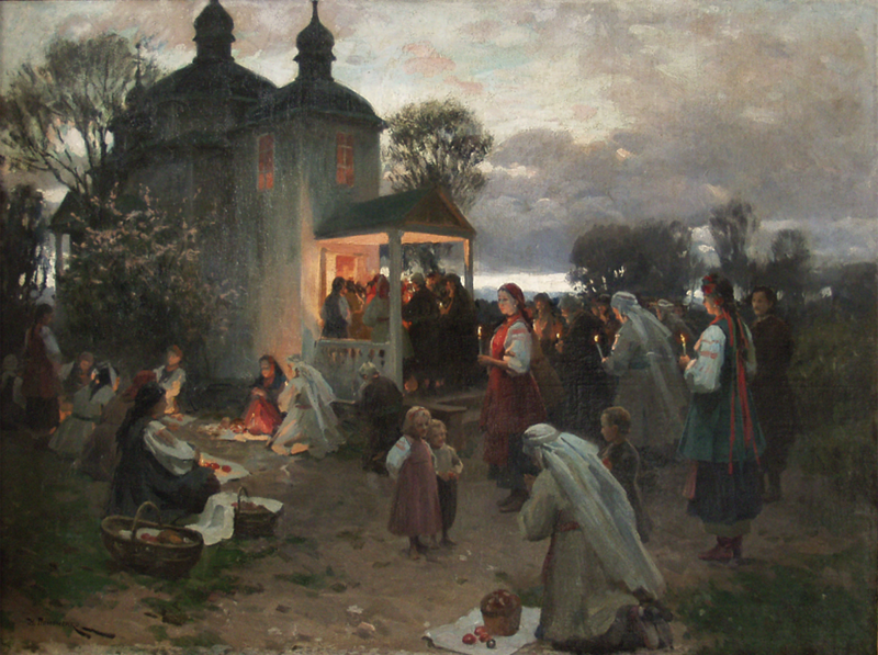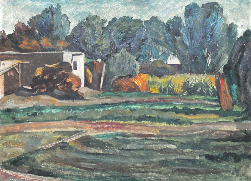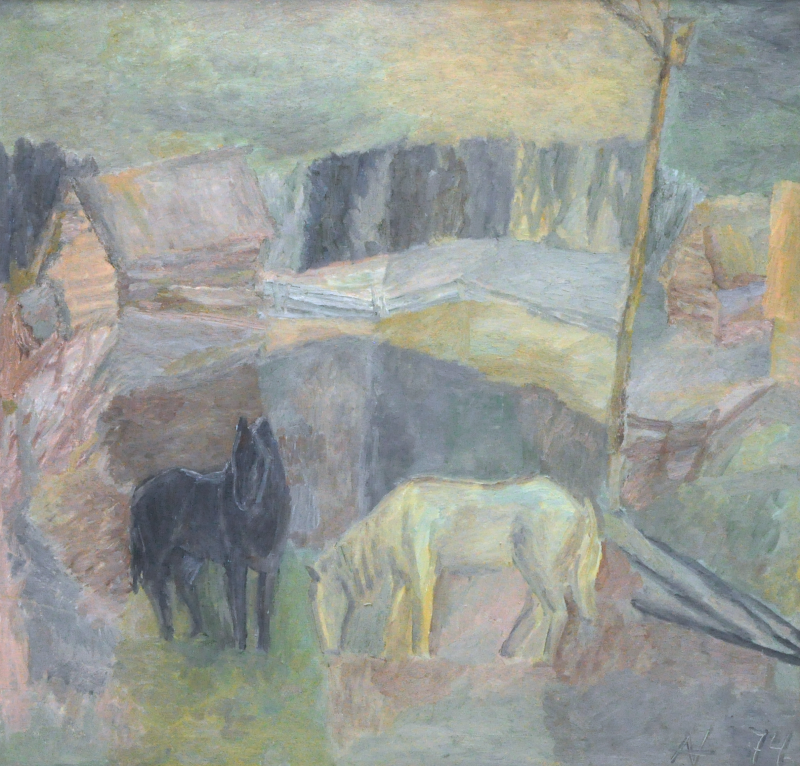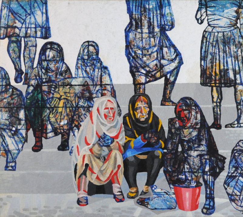 Автор Байрамов Ярли. Площинно-декоративна композиція. На першому плані, посередині – жовто-зелена піч-тандир з червоним круглим отвором, ліворуч правим профілем зображена туркменка, що сидить на колінах. Одягнута у червону сукню, блакитне покривало та блакитний головний убір з червоною пов’язкою. В протягнутих вперед руках жінки круглий золотисто-жовтий хліб. Поруч на блакитно-бузковій тканині два спечених хліба. Праворуч від печі на зеленому та фіолетовому тлі зеленувато-блакитний баранчик, що зображений лівим профілем. На другому плані, в центрі на темно-зеленому тлі – великі квіти. Ліворуч у перспективному скорочені світло-зелена стіна будинку з дверним та віконними отворами різного розміру. Дах будинку білий, плаский, посередині – надбудова. На жовто-охристому фоні третього плану – умовно-декоративне зображення червоним, синім, чорним, зеленим та помаранчевим кольорами стада корів та овець та двох пастухів, що гонять їх. Напрямок руху – вправо. Внизу праворуч авторський підпис зеленою фарбою: «Ярлы 72».