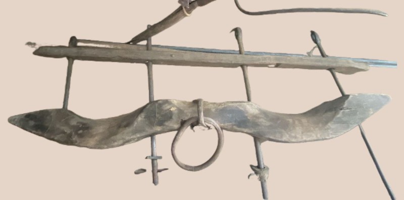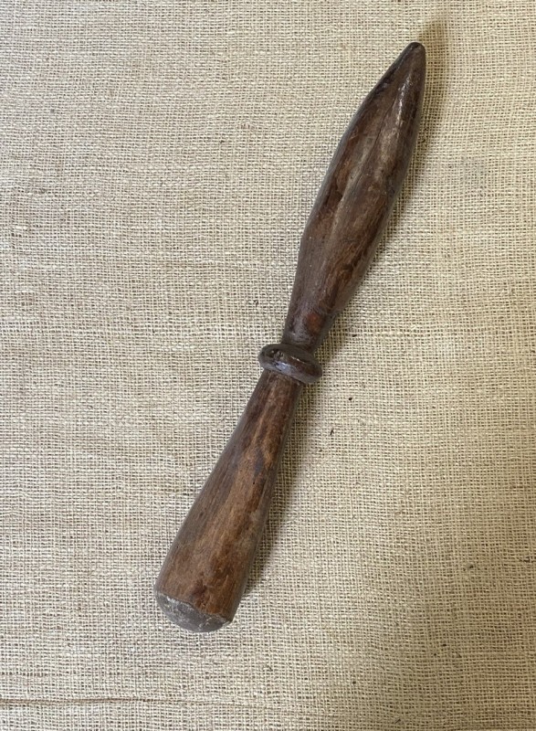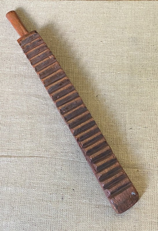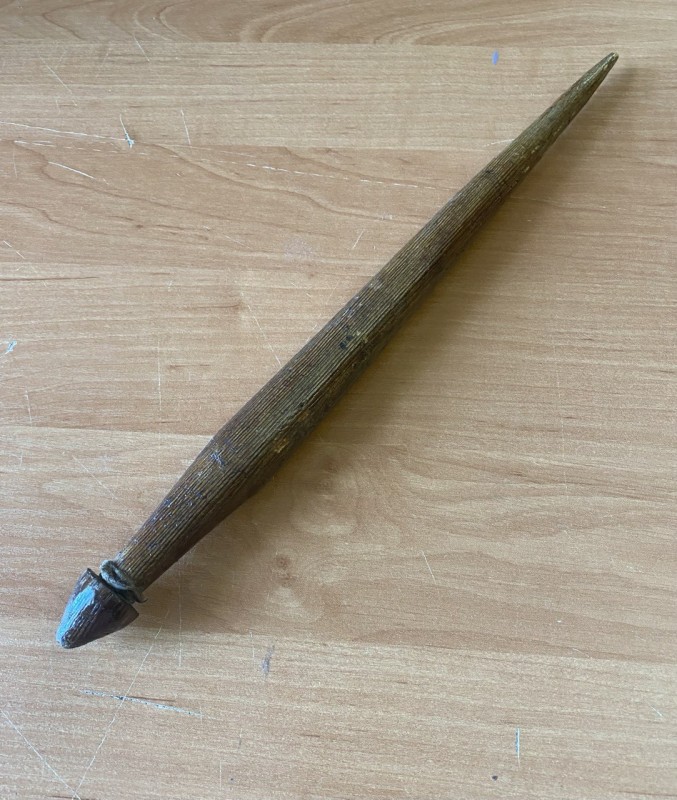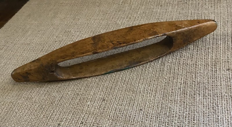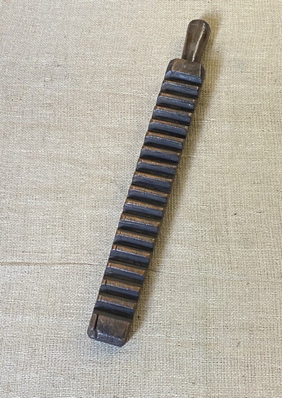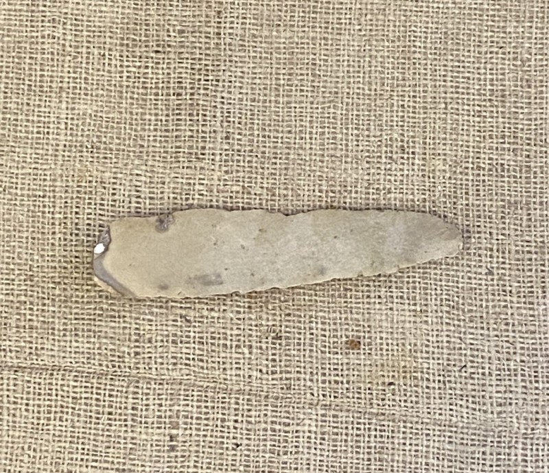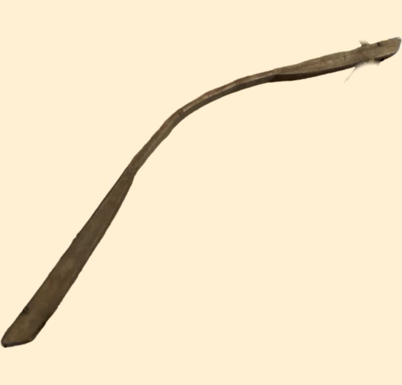 Китовий вус сірого кольору. Внизу частина широка. Верхня частина - вузенька.