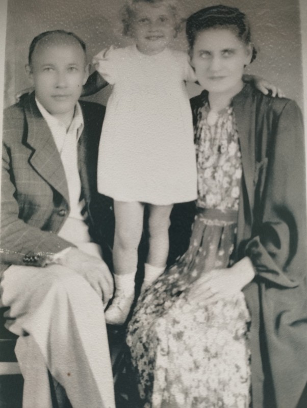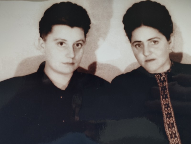Світлина зроблена у Бережанах 1943 р. На світлині зліва направо: Мирослава Костів, Іван Прокопишин.
