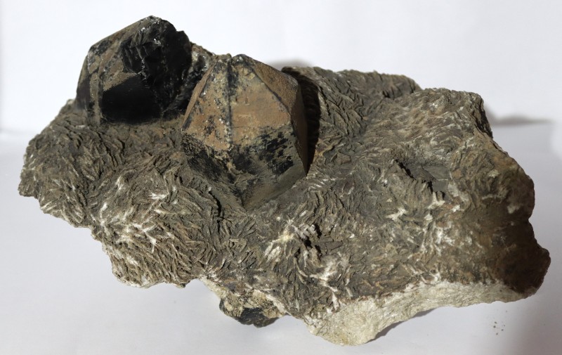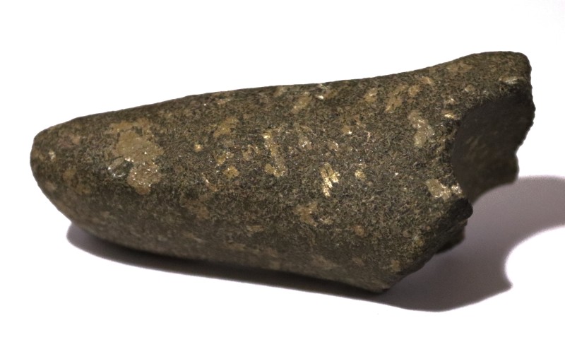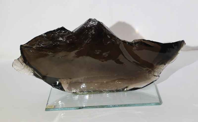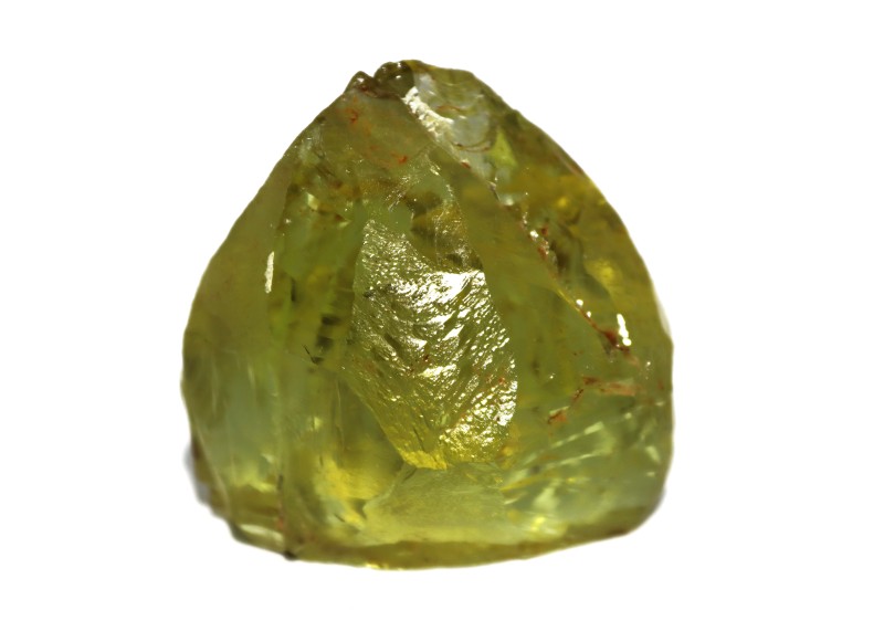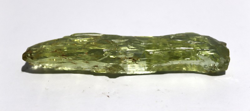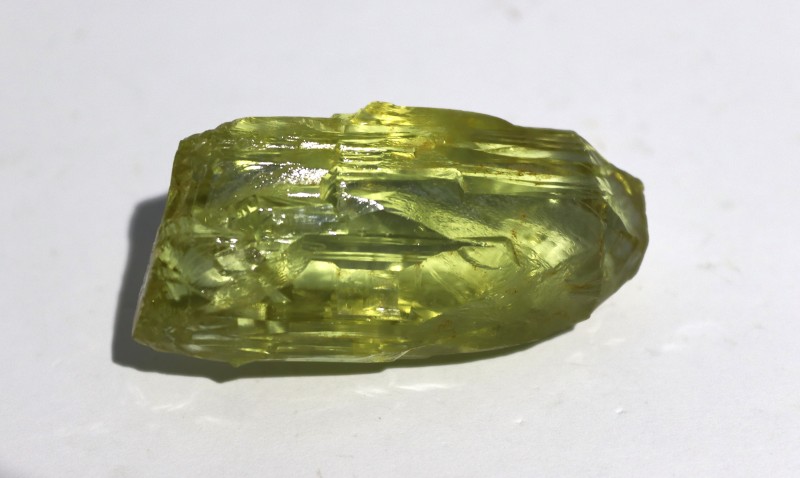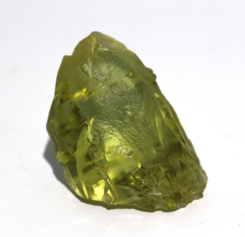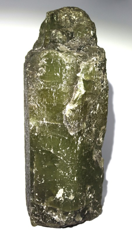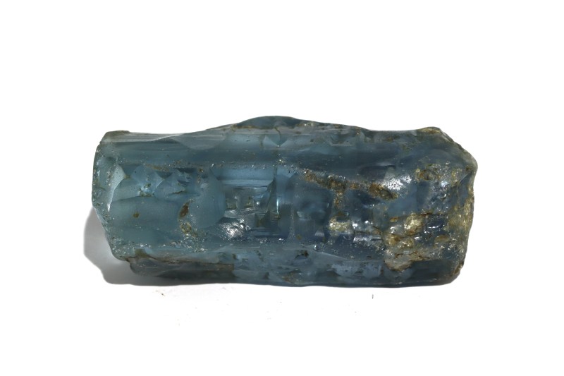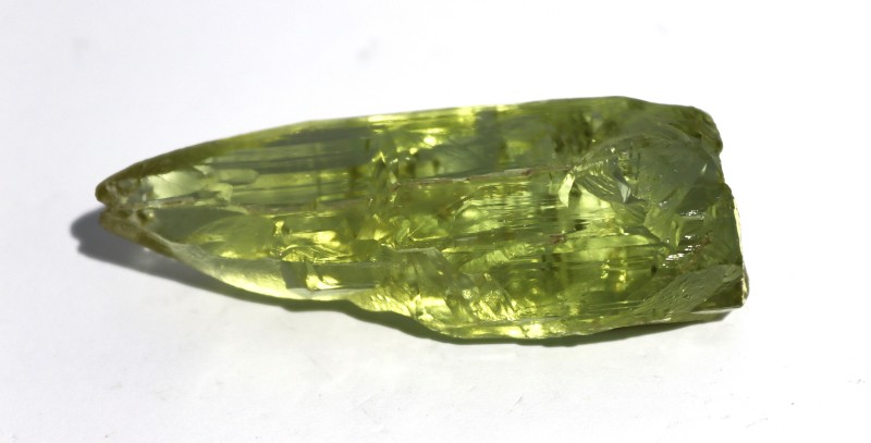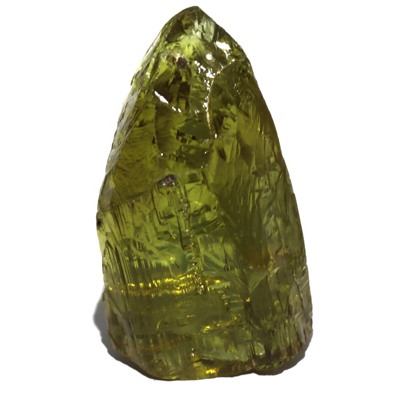 Берил. Кристал берилу триголового вигляду, короткостовпчастого габітусу, середньопризматичний, жовтувато-зеленого кольору, прозорий, обламаний у прикореневій частині. Поверхня сколу нерівна, із численними лійкоподібними заглибинами. У будові кристала беруть участь грані призми, поверхня яких вкрита численними фігурами травлення у вигляді тригранних горбків та прямокутних заглибин. Також спостерігаються підвищення та заглибини, що поступово переходять одне в одне, пом’якшуючи або нівелюючи скульптурні виступи й заглибини. Кристал має оплавлений вигляд (схожий на «обсмоктаний льодяник»). Внутрішня частина кристала пронизана дрібними каналами з газово-рідинними включеннями. Голівка завершується чотирма площинами під кутом приблизно 30°. Голівка розділена на три вершини (площини) з фігурами росту та травлення.