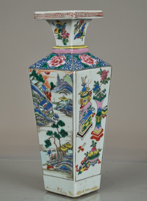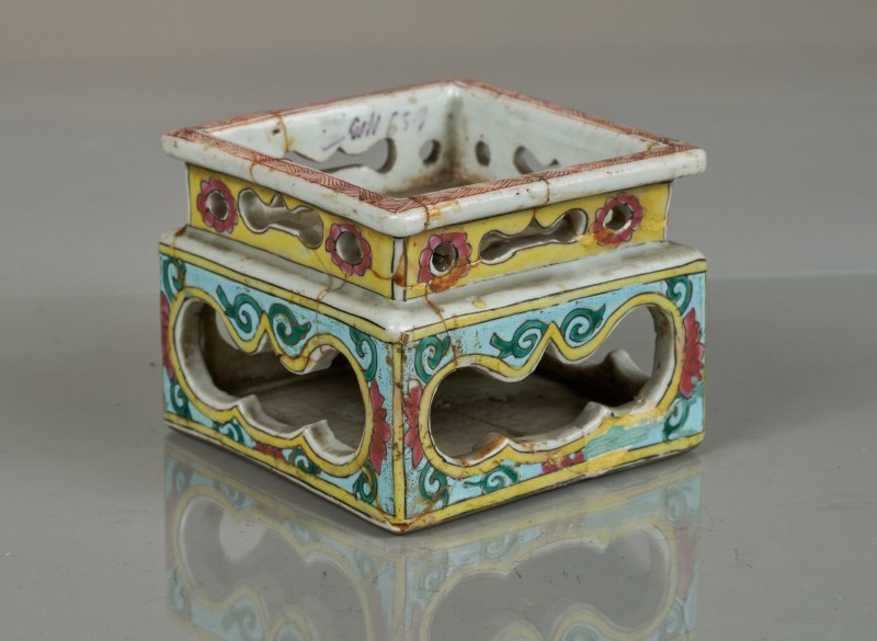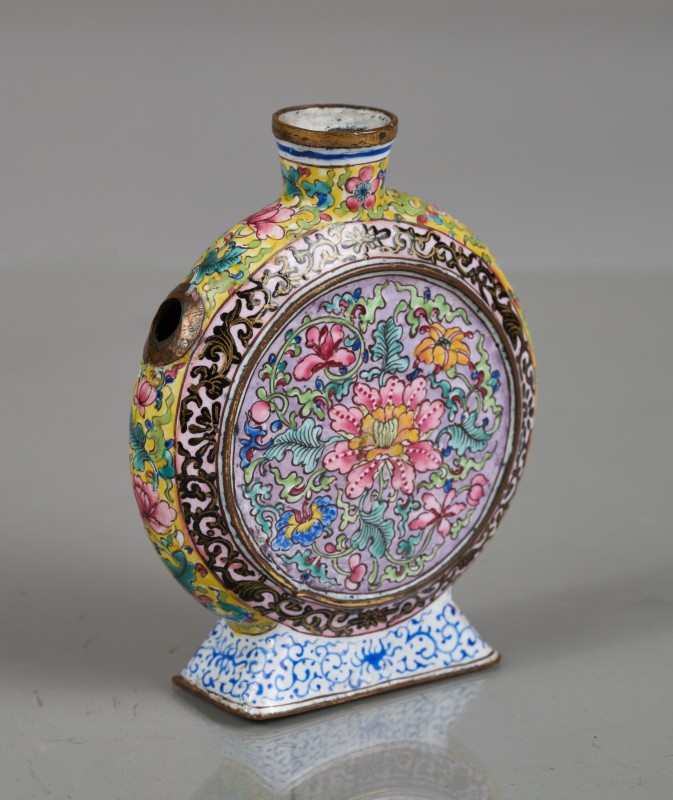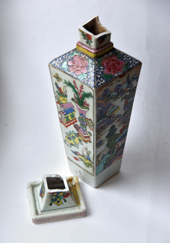Чорнофігурний лекіф з циліндричним тулубом і дещо ввігнутими плічками на дископодібній масивній підставці. Горло високе, вузьке, з конічними вінцями. Ручка плоска, вертикальна. Тулуб вкритий білим облицюванням. Вінця, ручка зовні, низ тулуба та верх підставки вкриті темно-коричневим лаком. На плічках паличний і променевий орнаменти. На тулубі між двома смугами решітчастого орнаменту (пряма сітка) мотив у вигляді плющової гірлянди (листя плюща та ягоди). Під розписом – лінії та смуга лаком. Манера Майстра Відьми (Beldam painter).