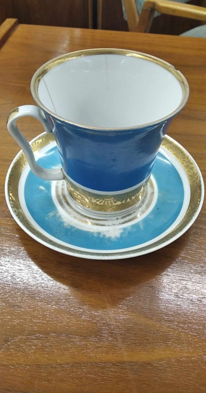 Миска декоративна, круглої форми, синього кольору з рослинним стилізованим орнаментом по колу у вигляді трилисниківжовтого кольору, що повторюються та розділені один від одного рисками. По центру крупна крапка. Покрита поливою. Подарунок письменнику М.П.Стельмаху. Автор невідомий.