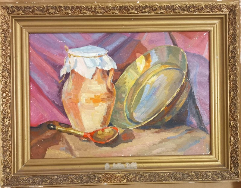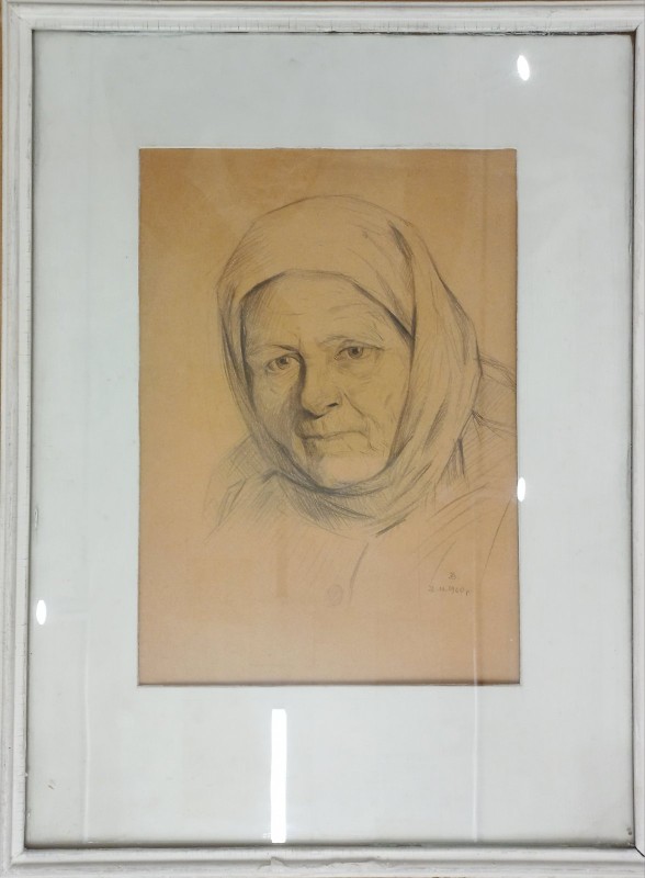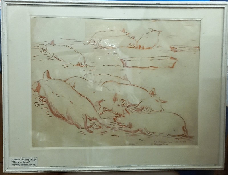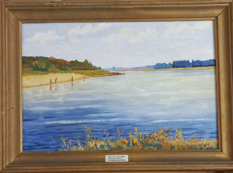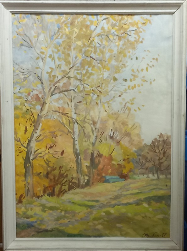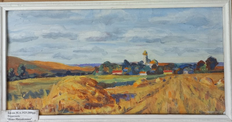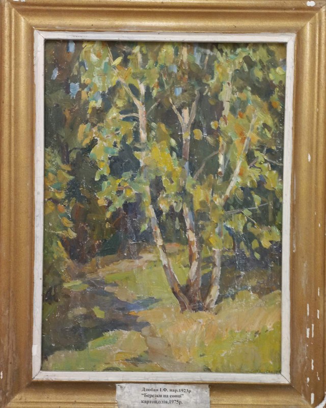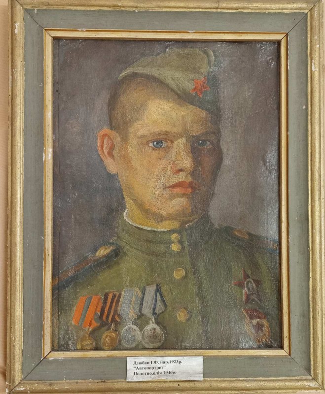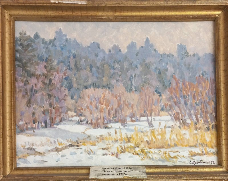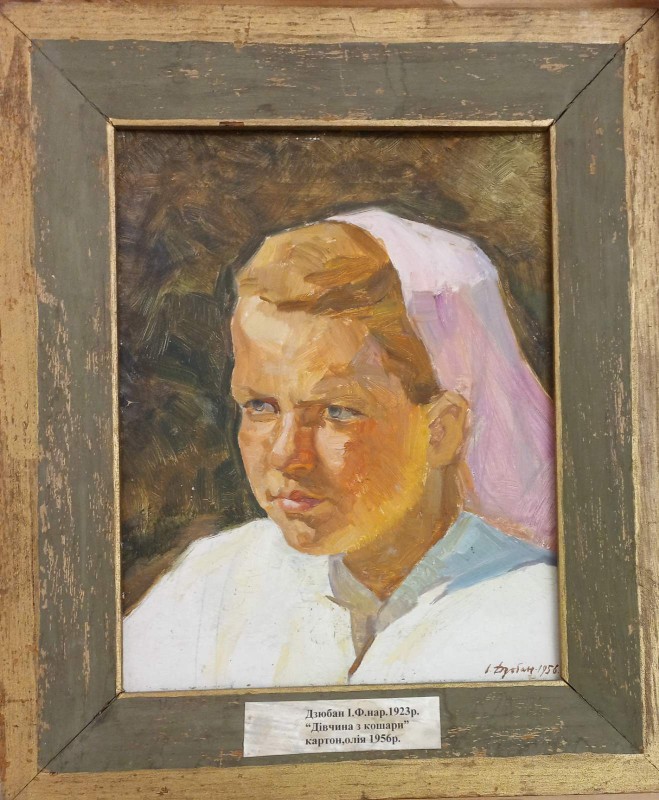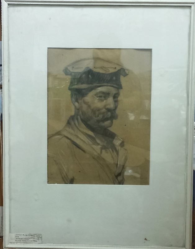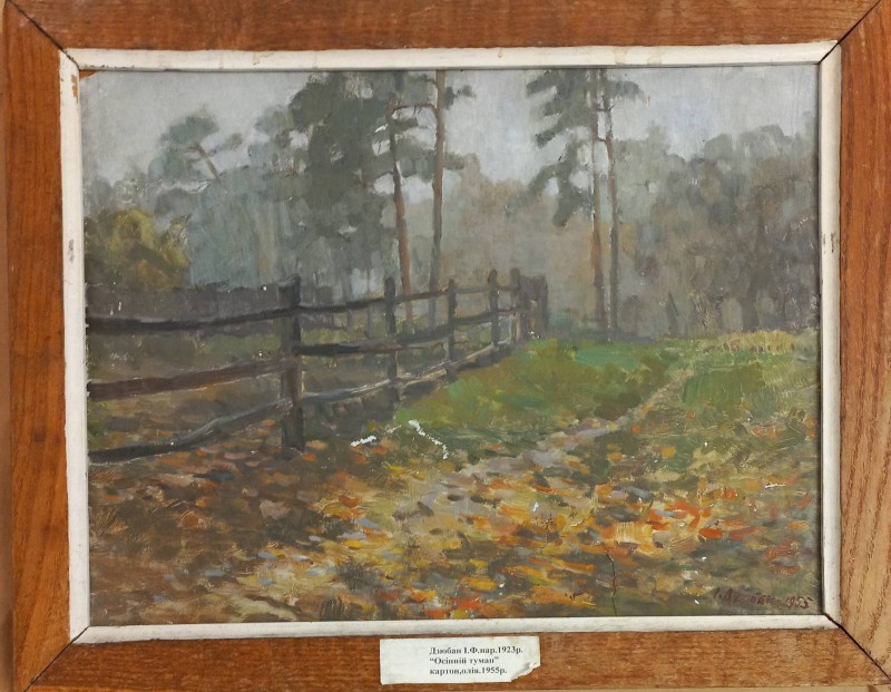 На полотні олією зображений літній чоловік на полі, який сидить біля снопу, 1923-2009р., 1961 рік
