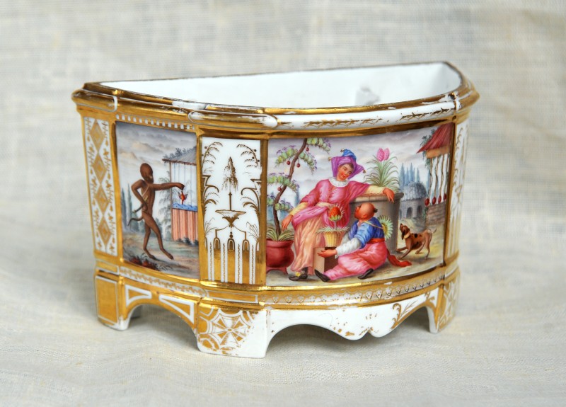 Зображення морського пейзажу, оповитого туманом, з човнами і кораблями. Ліворуч висока кам’яна набережна з групою людей, праворуч великий корабель, за яким видно круглу вежу з будинком. У центрі біля причалу човен з рибалками. На кам'яному причалі ліворуч стоять двоє чоловіків, один з яких в чалмі курить люльку з довгим мундштуком. Неподалік рибалка з вудкою і дві жінки біля кошика з рибою. Під зображенням написи, ліворуч: J. Vernet Pinxit. Праворуч: J. Aliamet dirrexit. У центрі герб і назва: Tems de brouillard . Нижче присвята. Нижче ліворуч видавнича адреса. Гравюра створена Ір-Марі Ле Гуазом (1742-1816) за оригіналом Клода-Жозефа Верне (1714-1789)