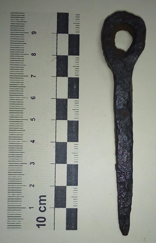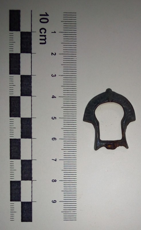 Наконечник стріли тип 34 (за Мєдвєдєвим А. Ф.) — черешковий, килеподібний, із розширенням у нижній частині пера, з упором, розширеним донизу. Сторони прямі. Черешок округлого перерізу.