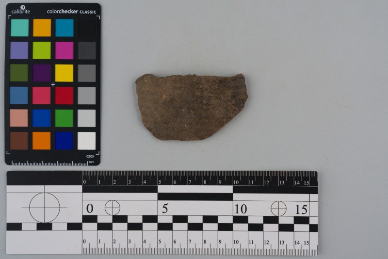 Ґонт, фрагмент, коричневого кольору, наявний паз для стикування гонтів між собою, краї пошкоджені.