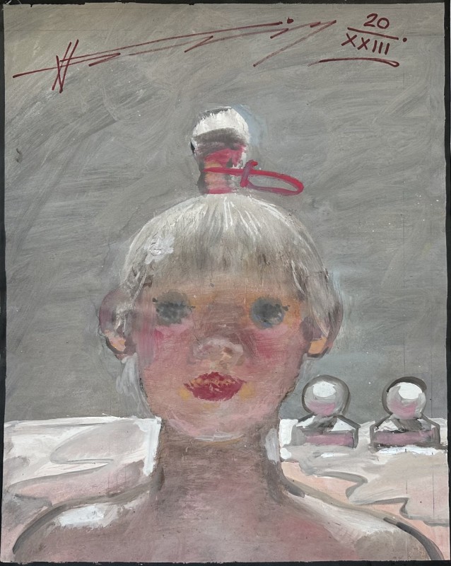 Портрет Н.А.Васильєвої. Етюд до картини «Передові люди автозаводу ім. І.В.Сталіна». 1949. Полотно, олія. 80х71. В грудні 1948 року Олександр Осмьоркін, перебуваючи в стані важкої хвороби після звинувачення у формалізмі, звільнення з роботи, відсторонення від педагогічної діяльності, заборони участі у виставках, отримує від Дирекції художніх виставок і панорам Комітету у справах мистецтв при Раді Міністрів СРСР замовлення на створення картини «Передові люди автозаводу ім. І.В.Сталіна» для Всесоюзної виставки 1949 року. Художник працював цілий рік, написав ескіз до картини, портретні та композиційні етюди. Створена картина «Передові люди автозаводу ім. І.В.Сталіна» (1949. Полотно, олія. 125х175) була відхилена художньою радою, Дирекція художніх виставок і панорам звинуватила Олександра Осмьоркіна у відсутності в картині ідейного змісту та подала позовну заяву до суду. У 1952 році судову справу було закрито за відсутністю складу злочину. Етюд до картини передала до фондів музею вдова художника Надія Осмьоркіна у 1995 році.