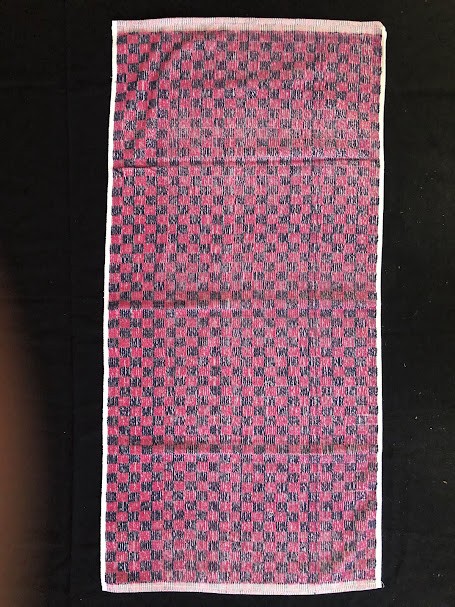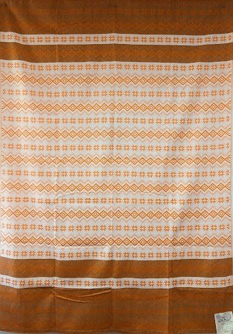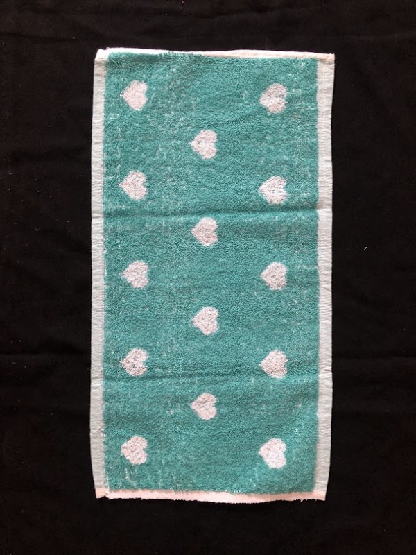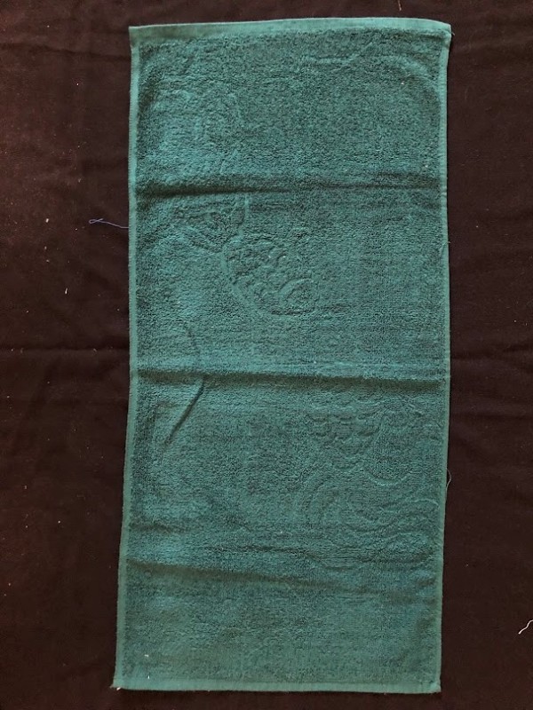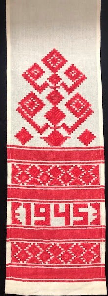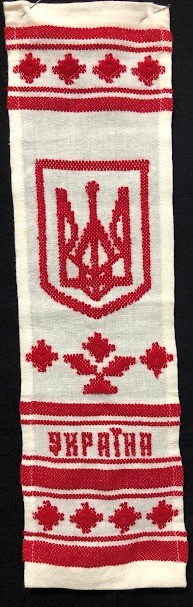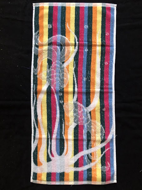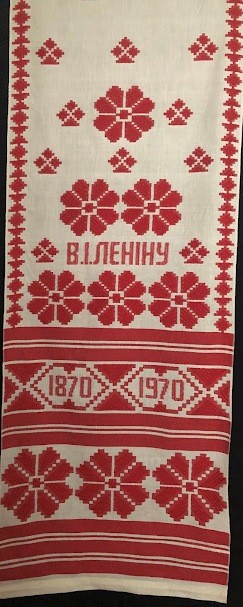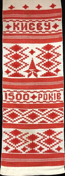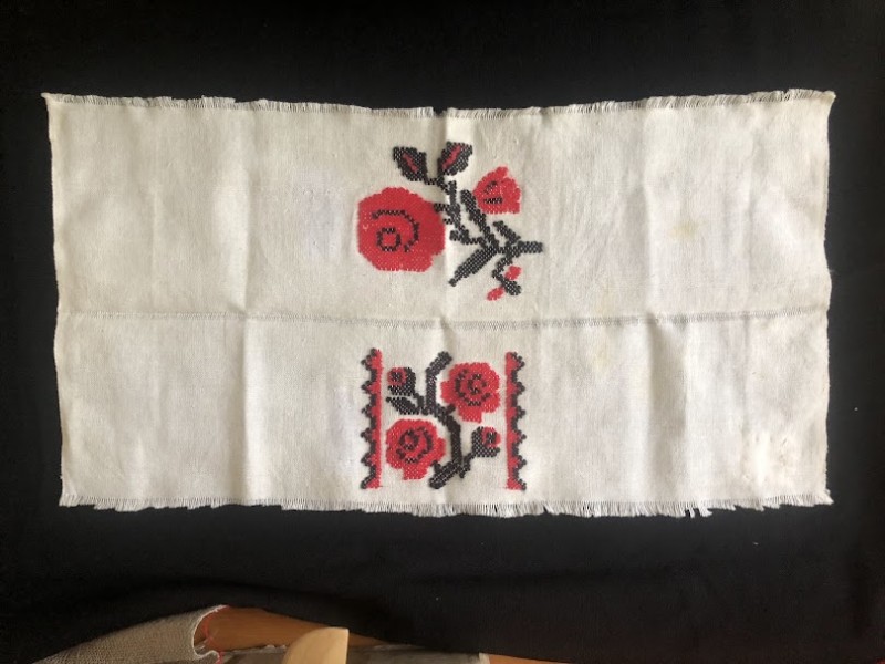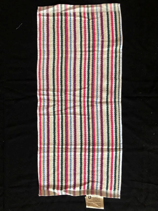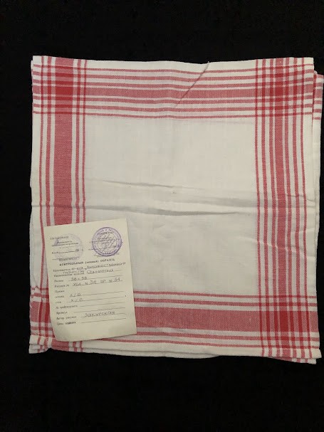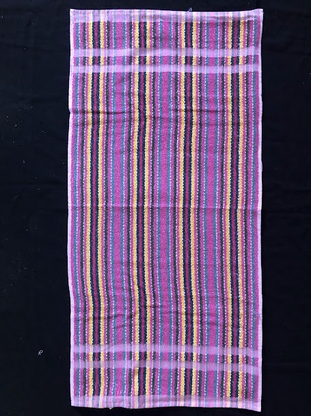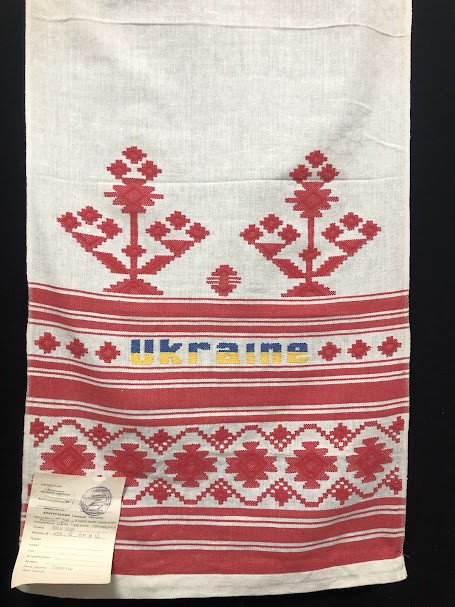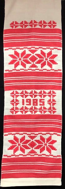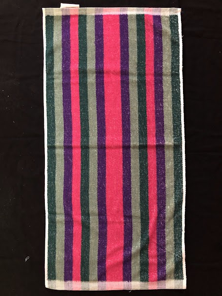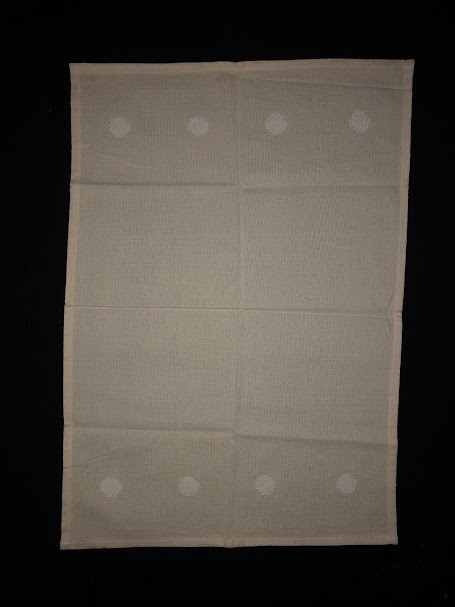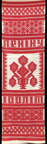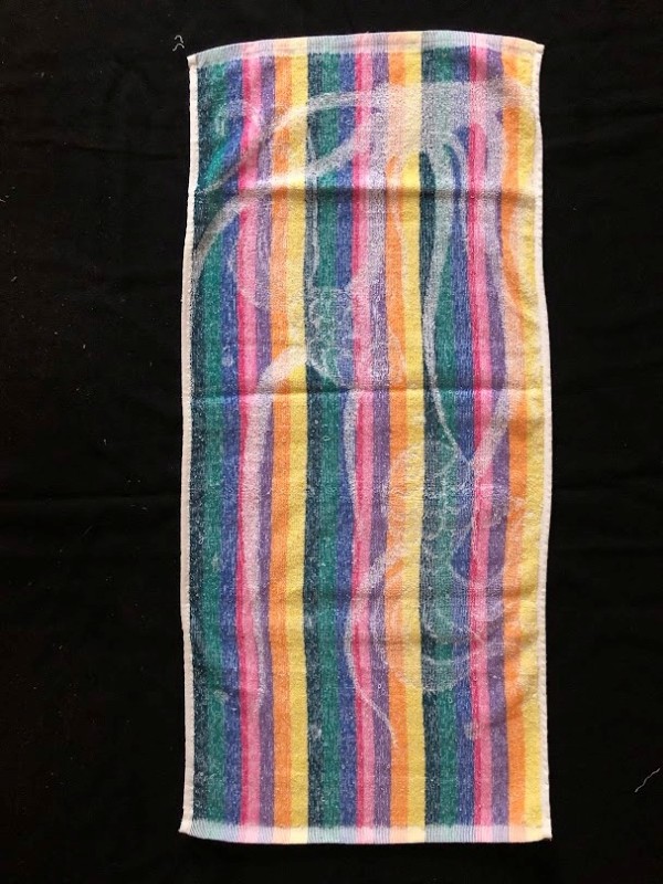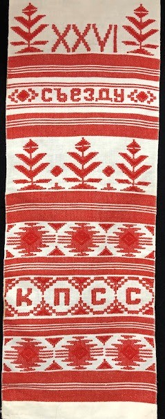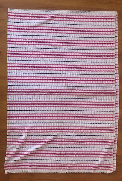 Рушник махровий. Виготовлено наприкінці ХХ століття на кролевецькій фабриці художнього ткацтва. Напівмеханічне ткацтво - жаккардова махра. Полотно виробу з білої та рожевої нитки. Орнамент квітковий двосторонній, утворений переплетенням ниток двох кольорів. Підрублено на швейній машинці з чотирьох сторін.